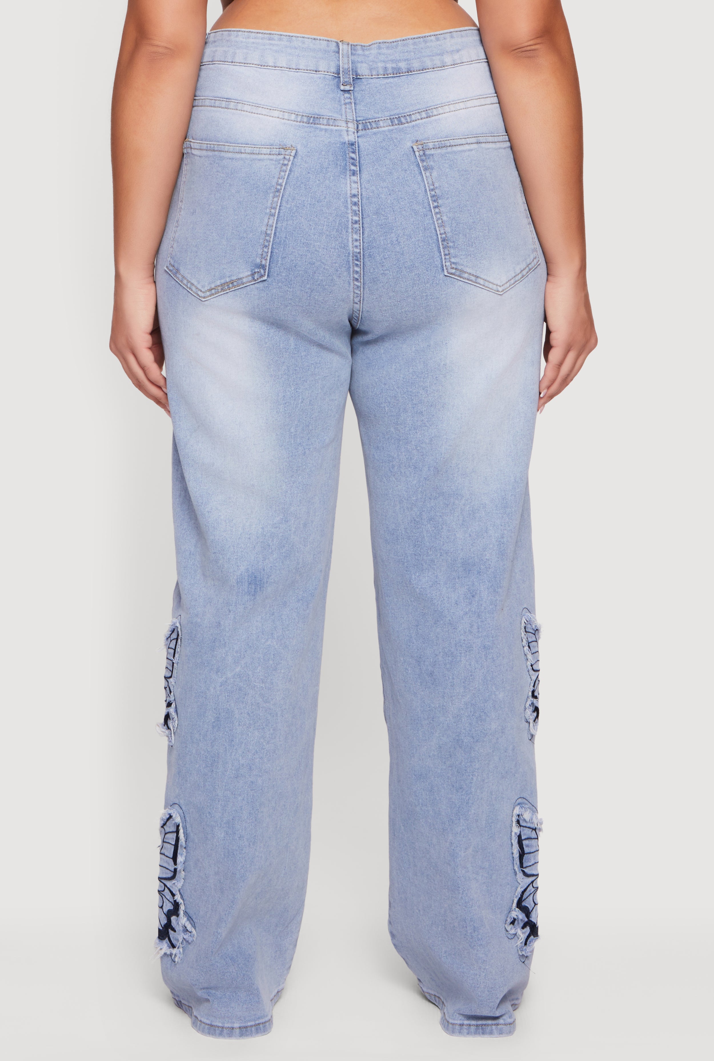 Step out in style with these Plus Size High Waisted Embroidered Butterfly Jeans designed to bring a fresh vibe to your casual wardrobe. Featuring a flattering high waist and a relaxed, wide-leg fit, these denim jeans blend comfort and trend effortlessly. The delicate butterfly embroidery and frayed detail add a playful touch that makes these jeans a standout piece for everyday streetwear looks. Perfect for those who want to embrace bold fashion without sacrificing comfort.
