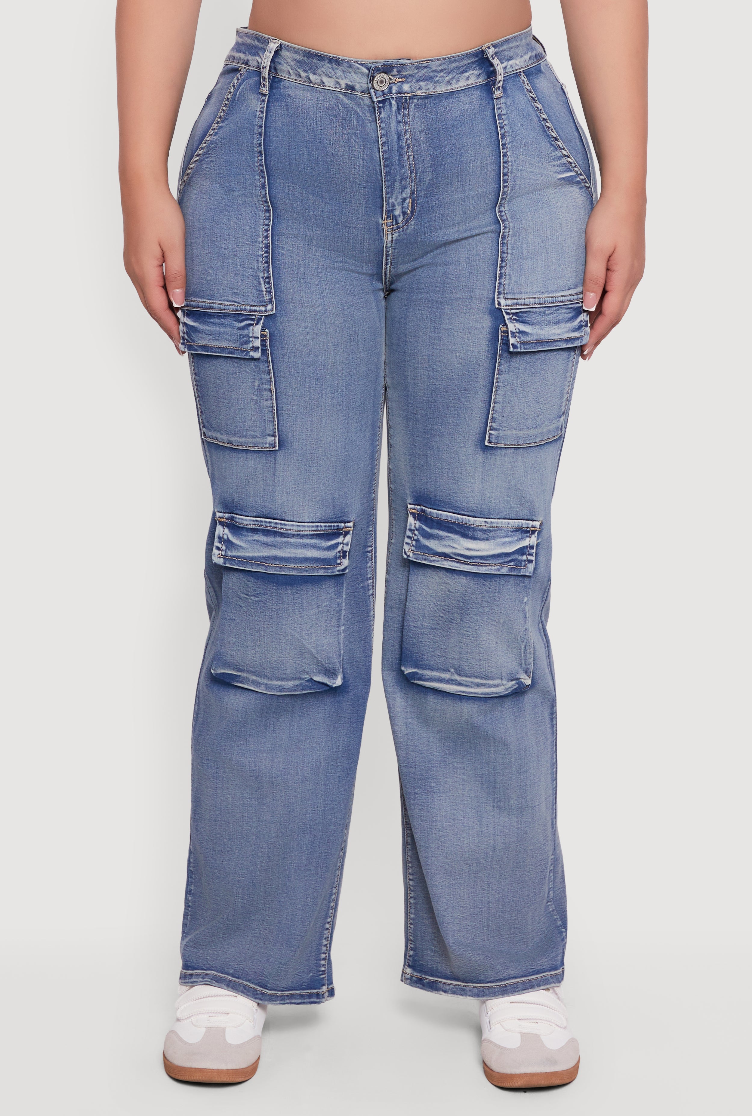 Step up your casual game with these Plus Size VIP Mineral Wash Straight Leg Cargo Jeans. Designed to flatter your curves with a high-waisted, classic fit, these jeans combine comfort and style effortlessly. The straight-leg cut offers a timeless silhouette, while the acid wash adds a cool, vintage vibe. Practical cargo pockets bring utility without sacrificing fashion, making these jeans your new go-to for everyday looks that stand out.