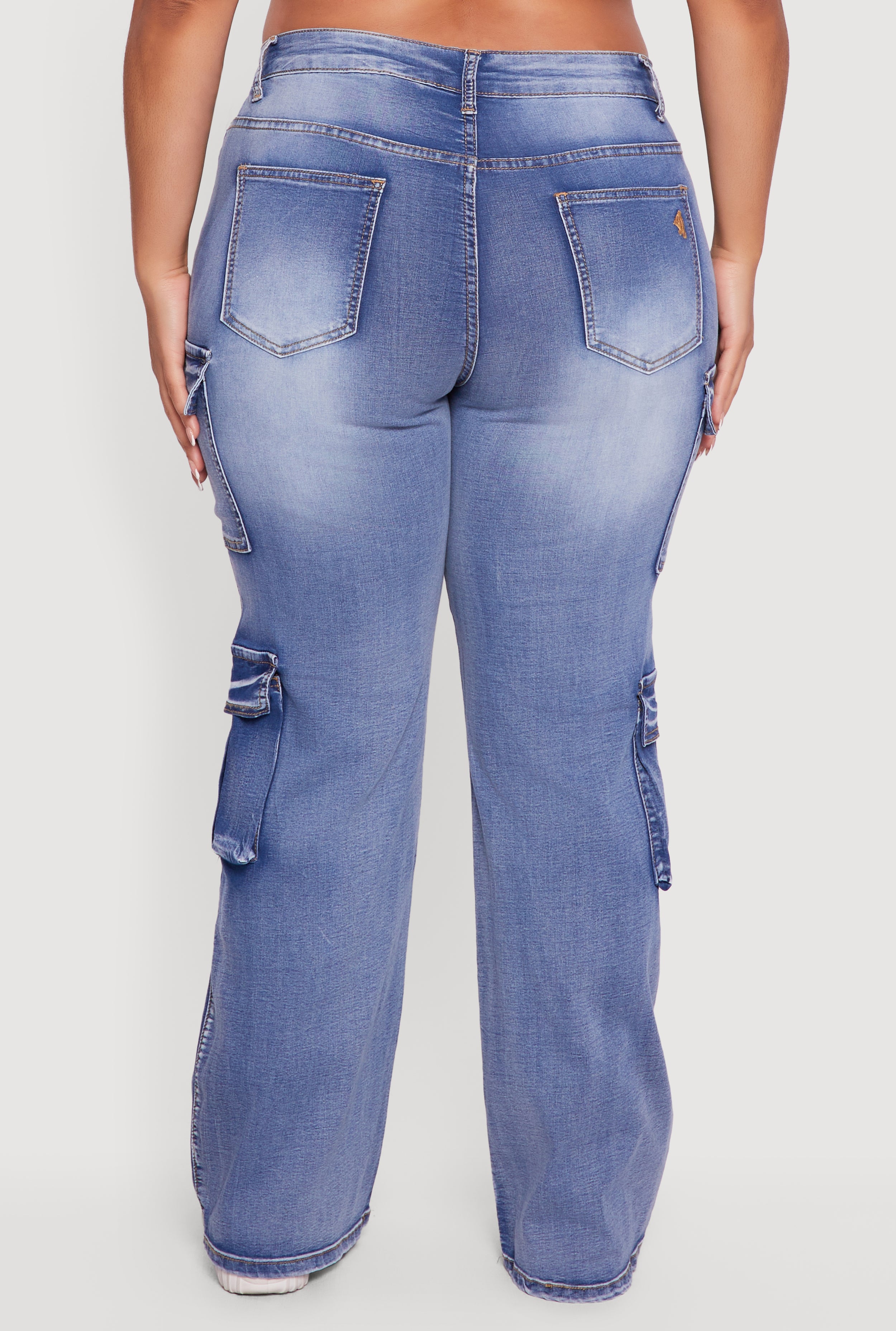 Elevate your casual wardrobe with these Plus Size VIP Mineral Wash Whiskered Cargo Jeans. Designed with a flattering mid-rise and classic straight leg fit, these jeans blend comfort and style effortlessly. The mineral wash pattern gives them a trendy worn-in vibe, while the whiskered detailing adds a touch of edge. Perfect for everyday wear, these denim cargo jeans feature stretch fabric and handy cargo pockets that combine fashion with function. Whether you're running errands or hanging out with friends, these jeans are your new go-to for laid-back cool.