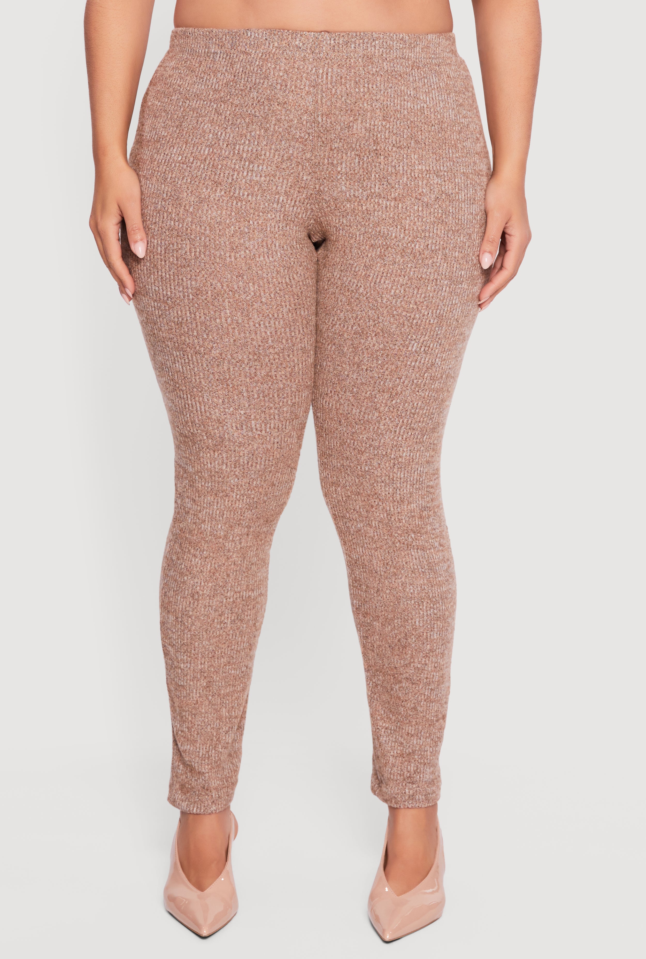 Step into cozy confidence with these Plus Size High Waisted Brushed Ribbed Knit Leggings. Designed to hug your curves with a flattering skinny fit, these leggings feature a high waist that smooths and supports your silhouette. The brushed ribbed knit fabric feels soft against your skin while adding subtle texture for a stylish edge. Perfect for casual days when you want to stay comfortable without sacrificing style, these leggings pull on easily and hit right at the ankle for a sleek look that pairs effortlessly with your favorite tops and sneakers.