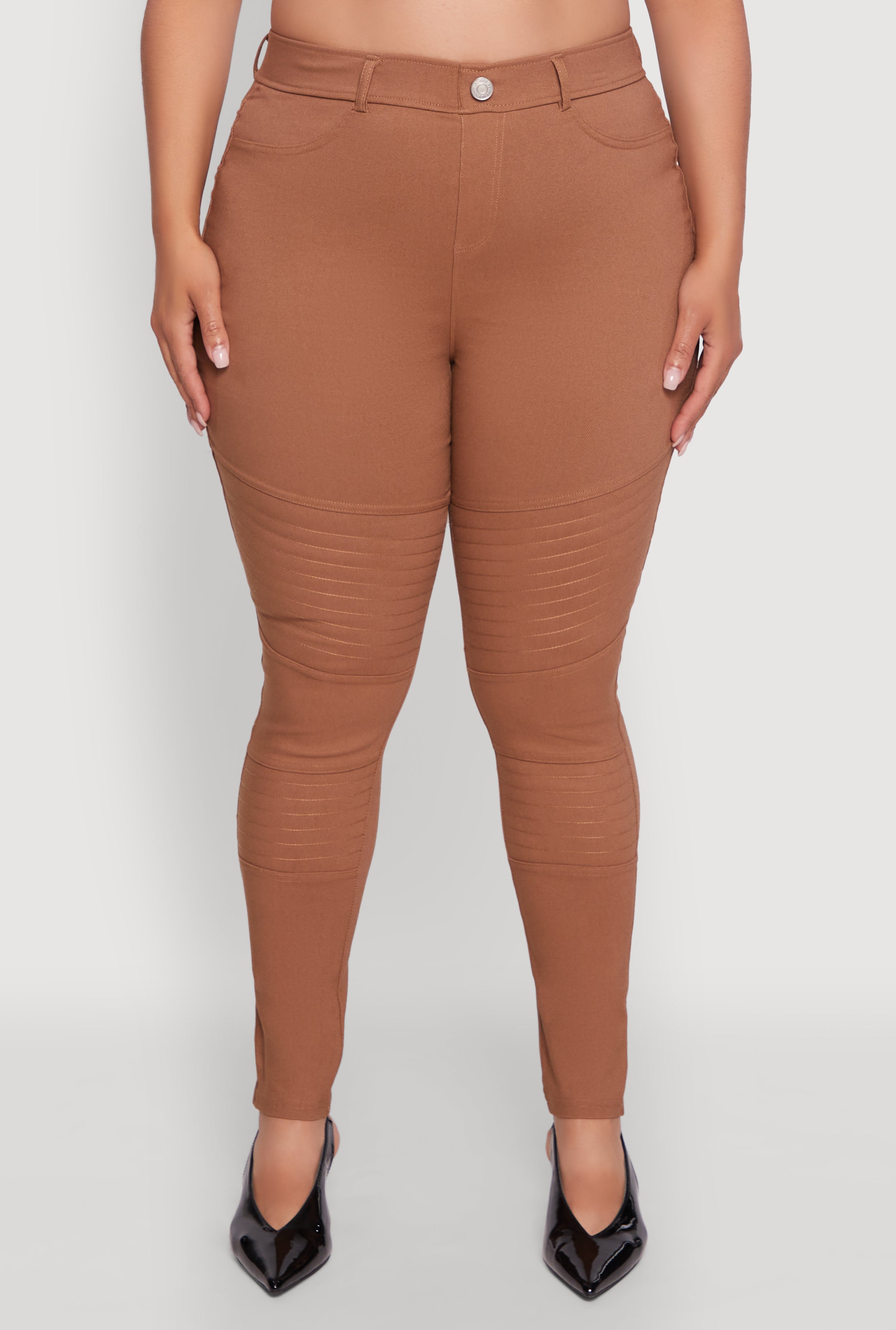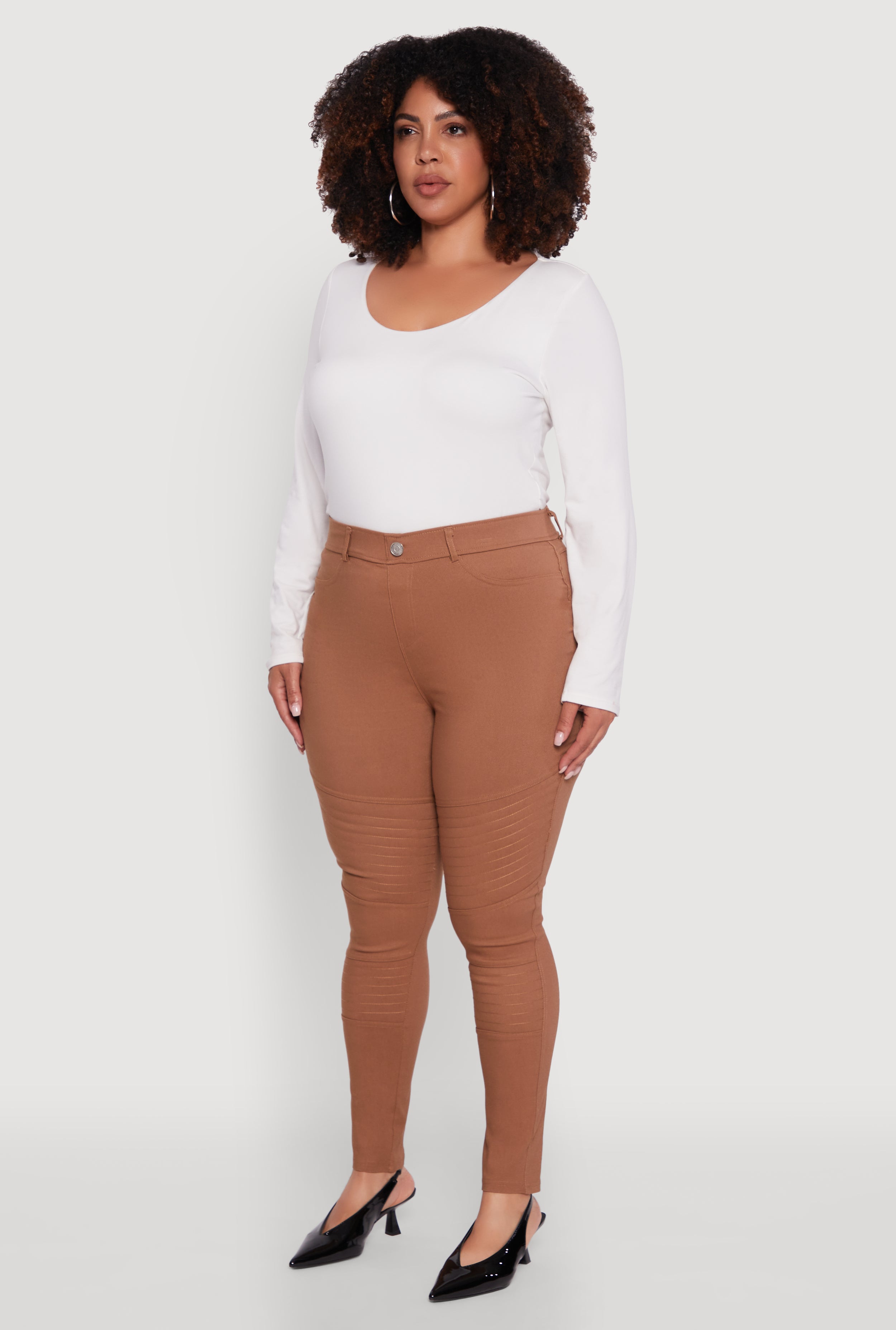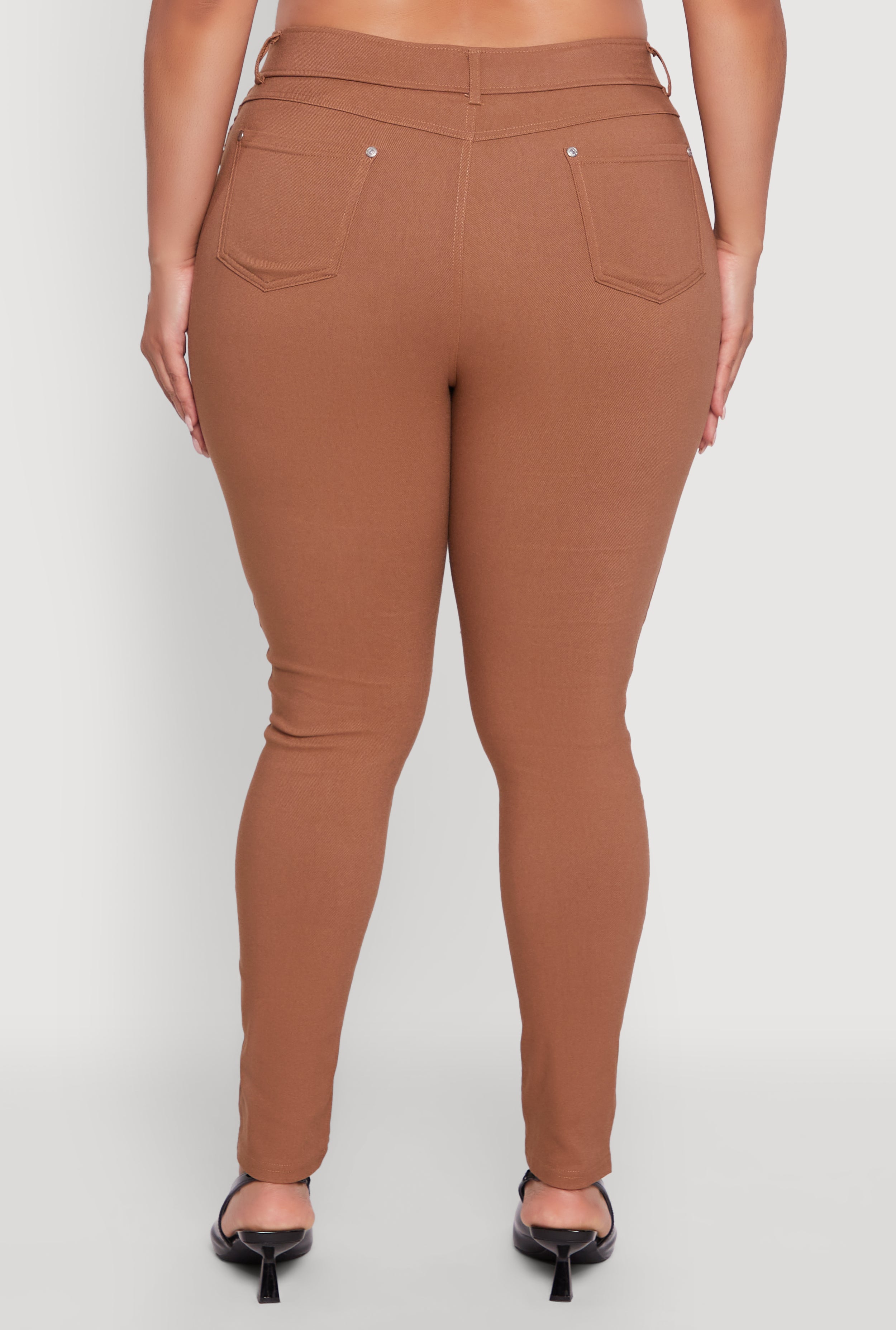 Step into confidence with these Plus Size High Waisted Hyper Stretch Dress Pants featuring chic faux buttons. Designed to hug your curves and lift your look, these skinny-leg ankle pants blend comfort and style effortlessly. Whether you're heading to the office or out for casual vibes, their solid color and sleek fit make them your new go-to for easy, flattering fashion.