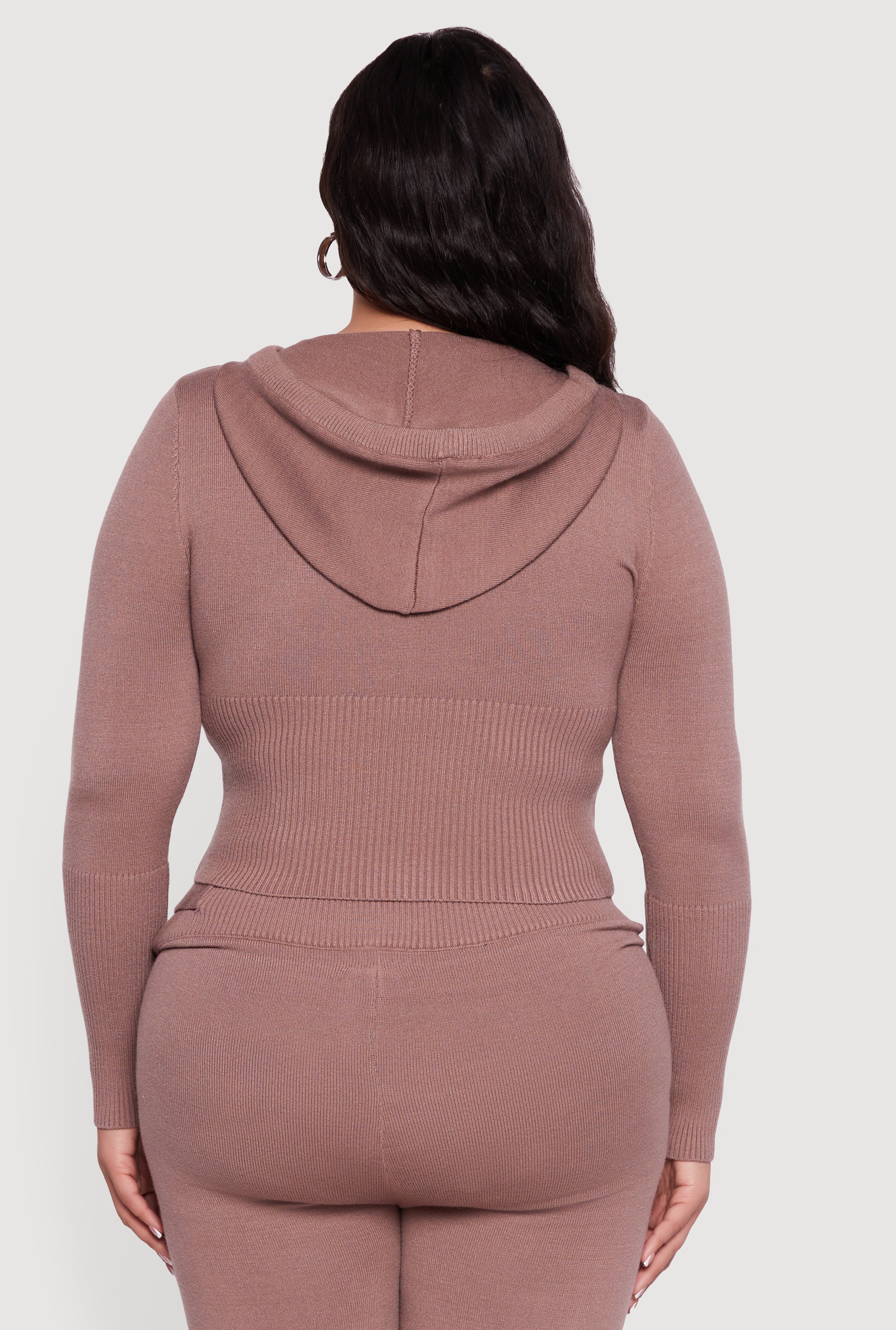 Plus Size Rib Knit Cropped Zip Front Hoodie