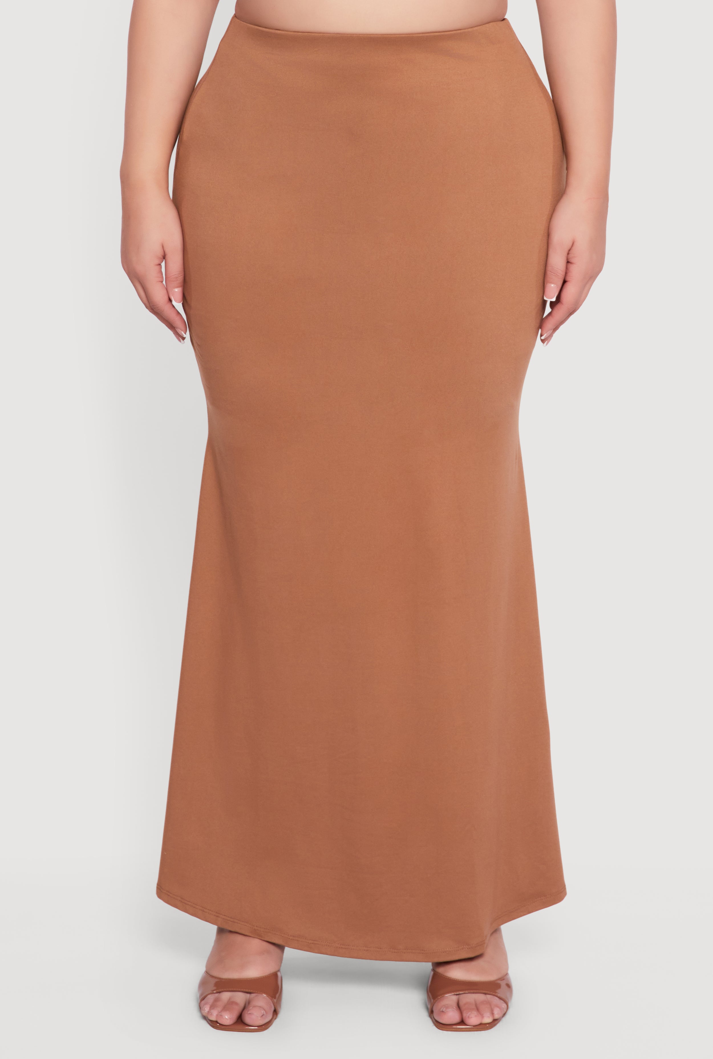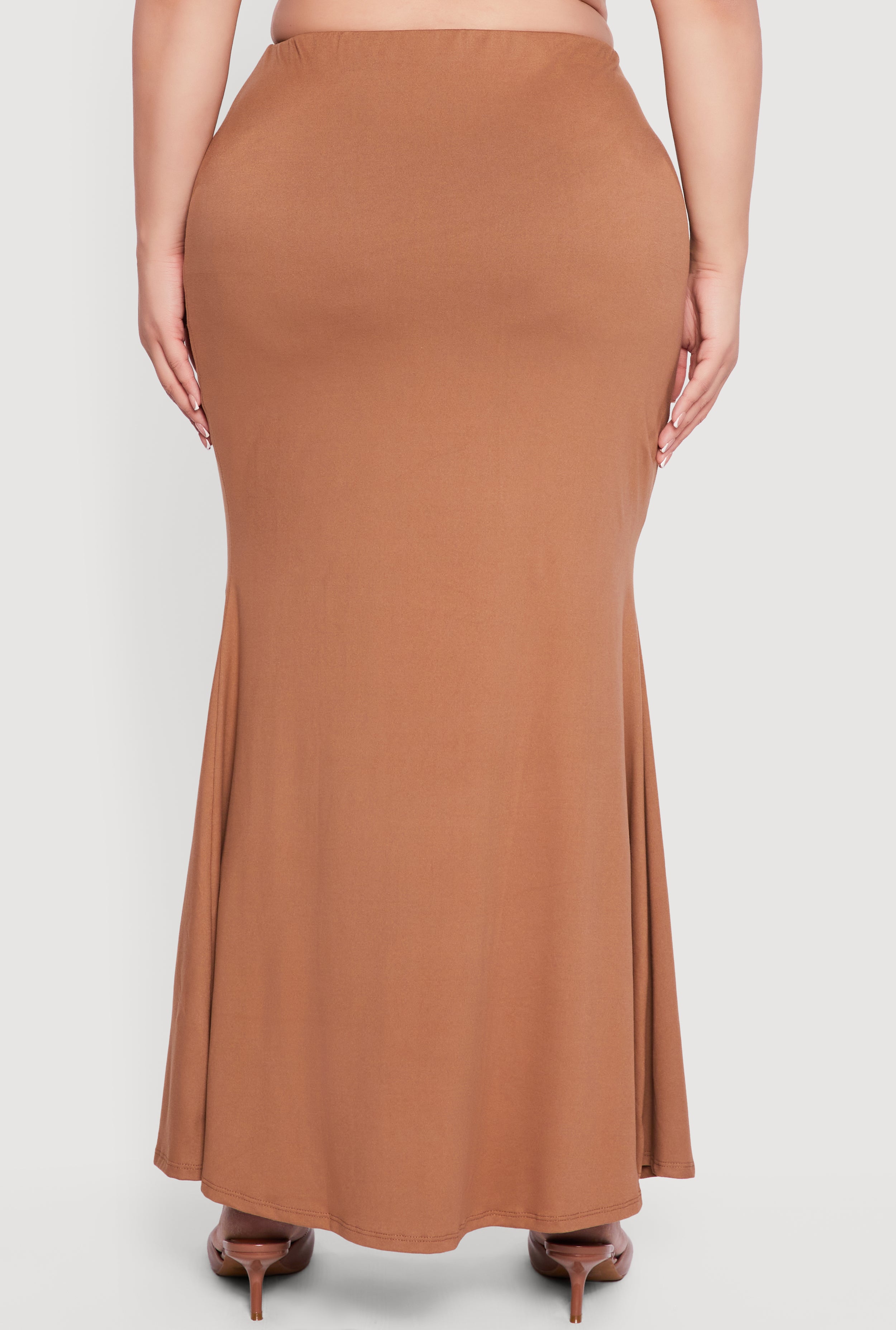 Step out in style with this Plus Size Soft Knit High Waisted Maxi Mermaid Skirt designed to hug your curves and flow with every move. Crafted from ultra-soft knit fabric, this skirt offers all-day comfort without sacrificing fashion. The high waist flatters your silhouette while the maxi length adds an elegant touch perfect for nights out or parties. Its solid color makes it easy to pair with your favorite tops and accessories for a look that’s effortlessly chic and ready to turn heads.