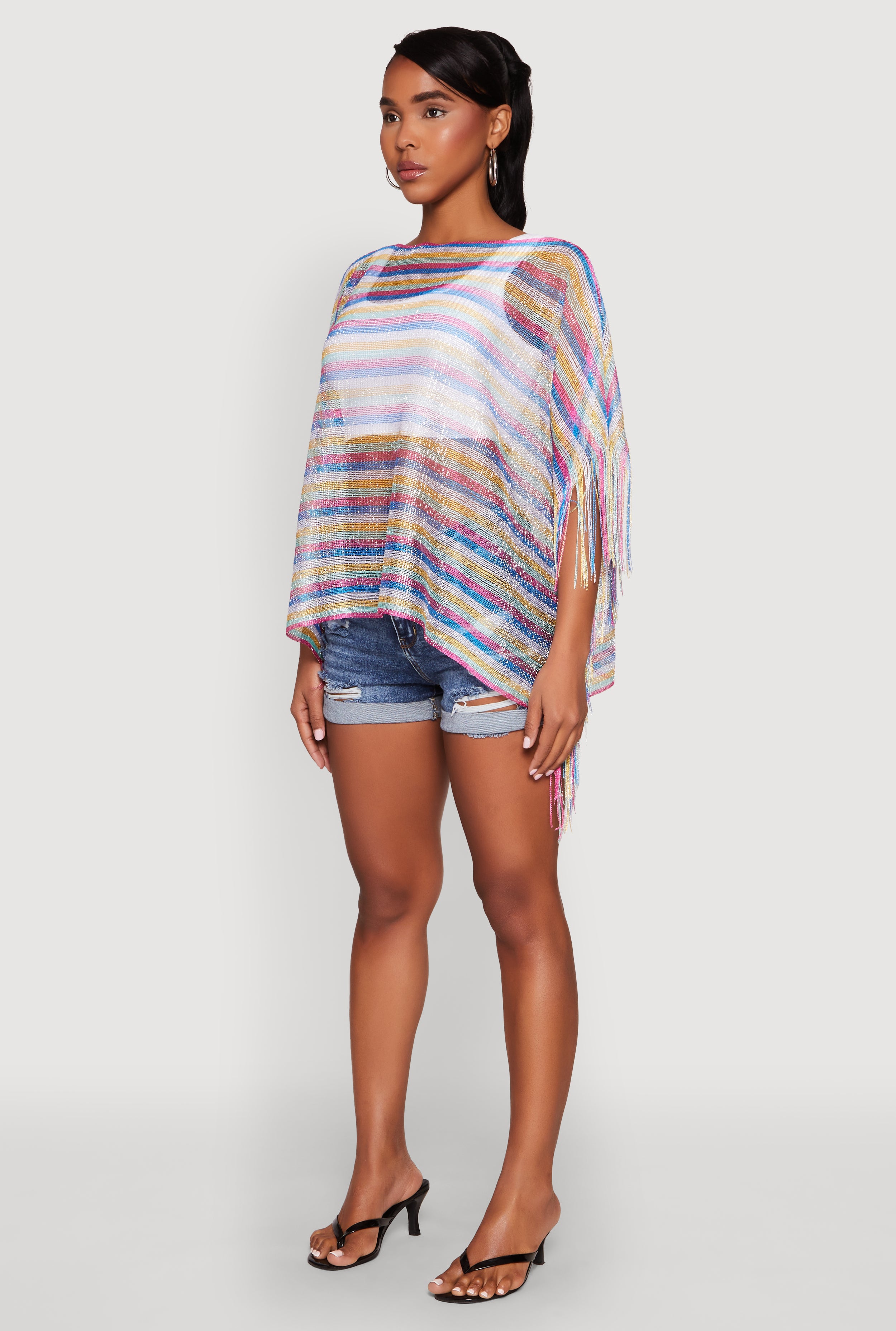 Get ready to turn heads at the pool or beach with our stylish Striped Swim Cover Up. Perfect for lounging or strolling along the boardwalk, this cover up combines comfort with a trendy look that flatters every body. Its versatile one-size-fits-XS-3X design makes it easy to slip on and feel fabulous. Whether you're soaking up the sun or grabbing a quick snack, this cover up is your new go-to for effortless chic.
