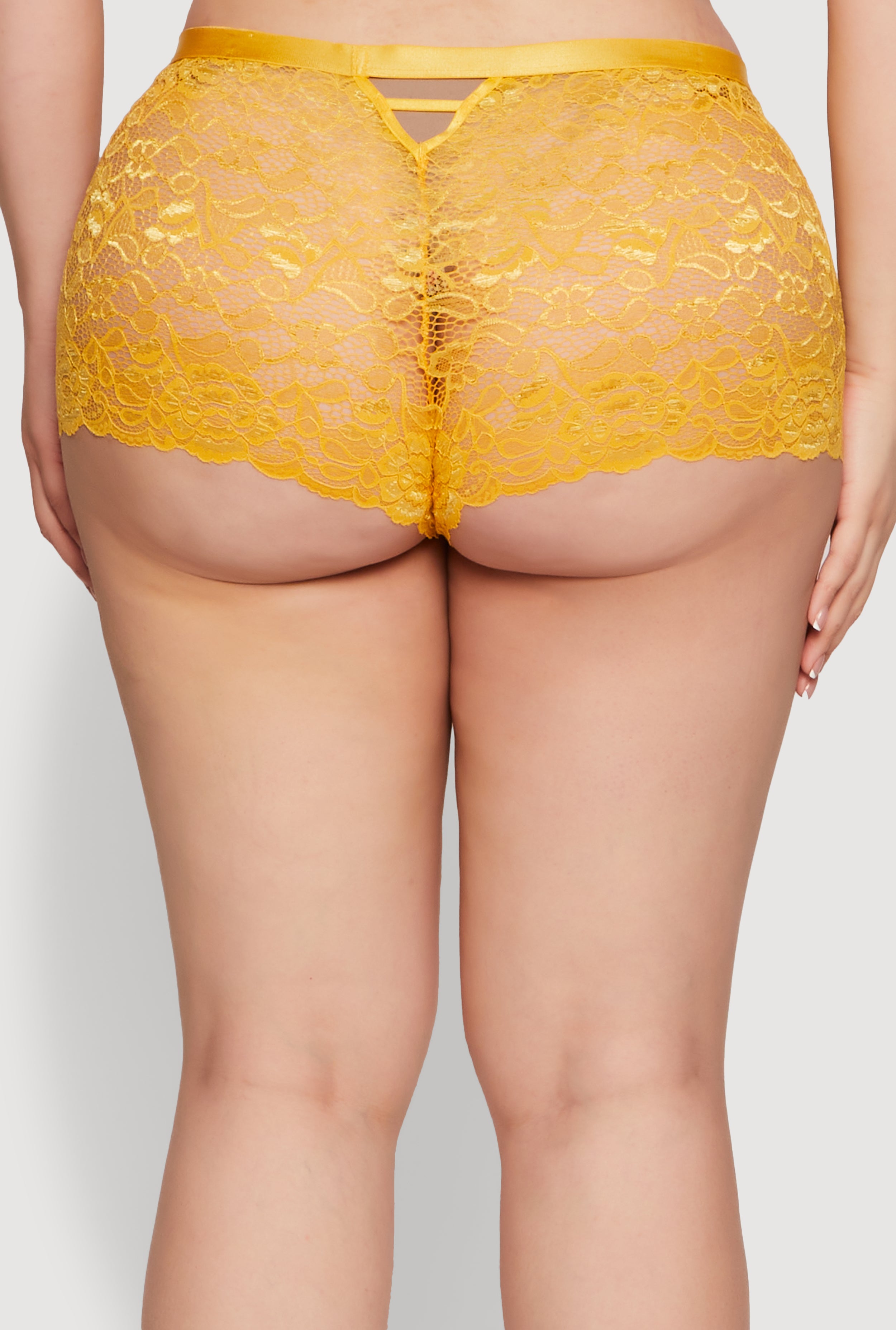 Plus Size Caged V Back Scalloped Lace Boyshort Panty