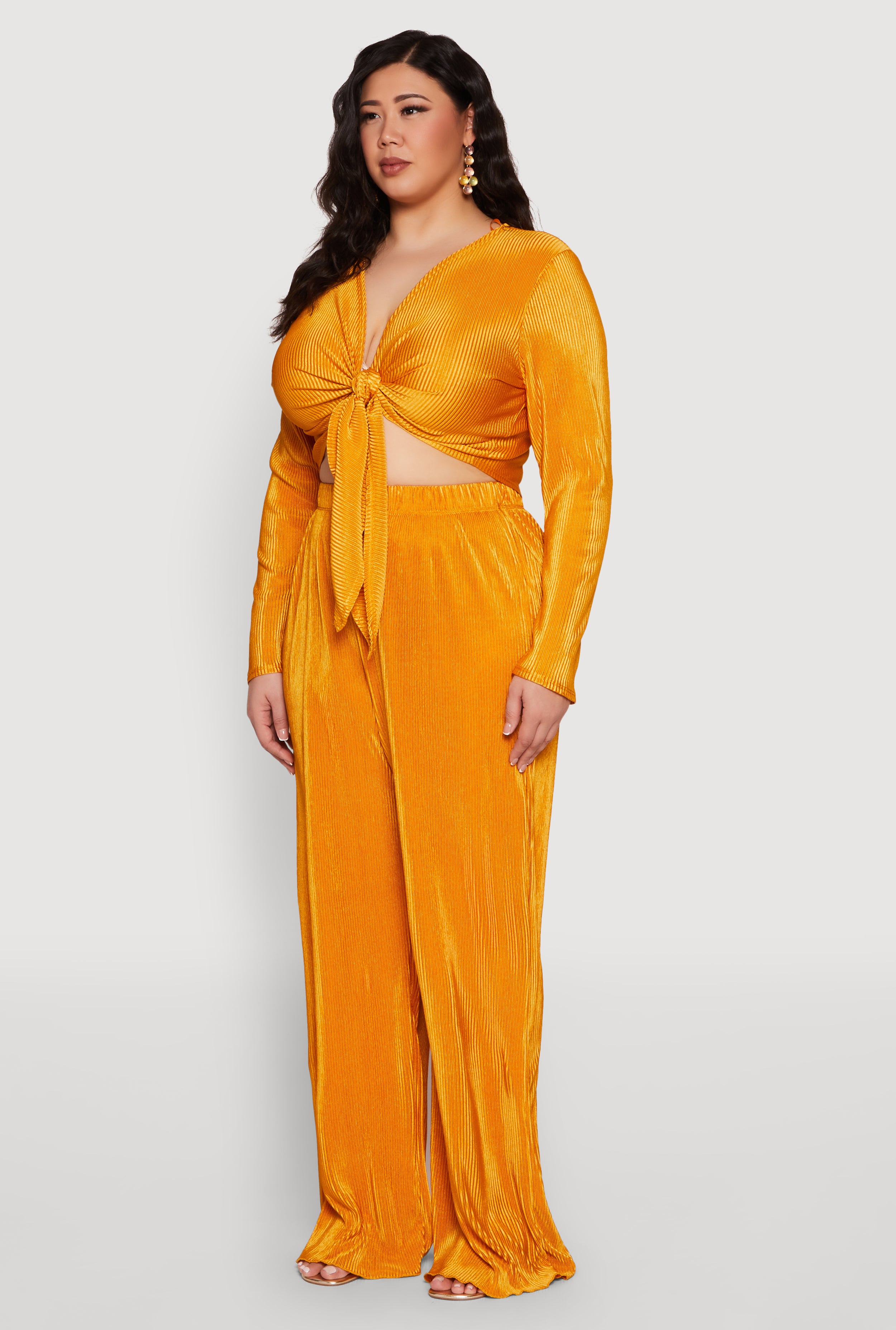 Plus Size Plisse Tie Front Crop Top