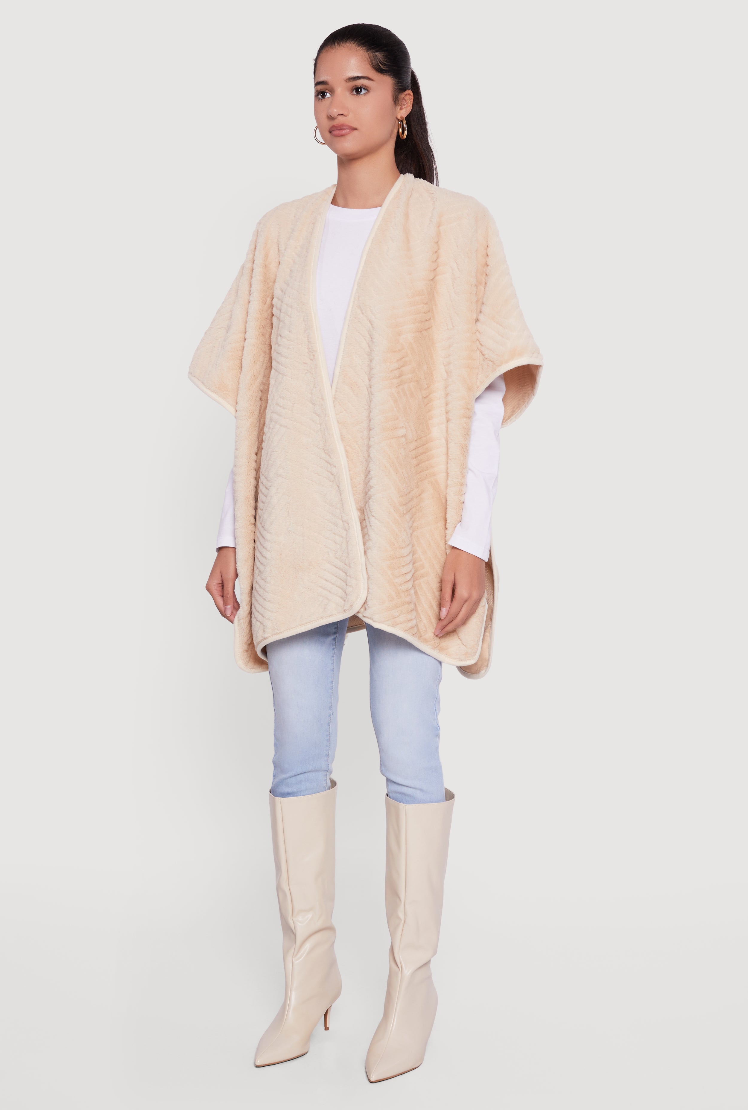 Faux Fur Open Front Poncho