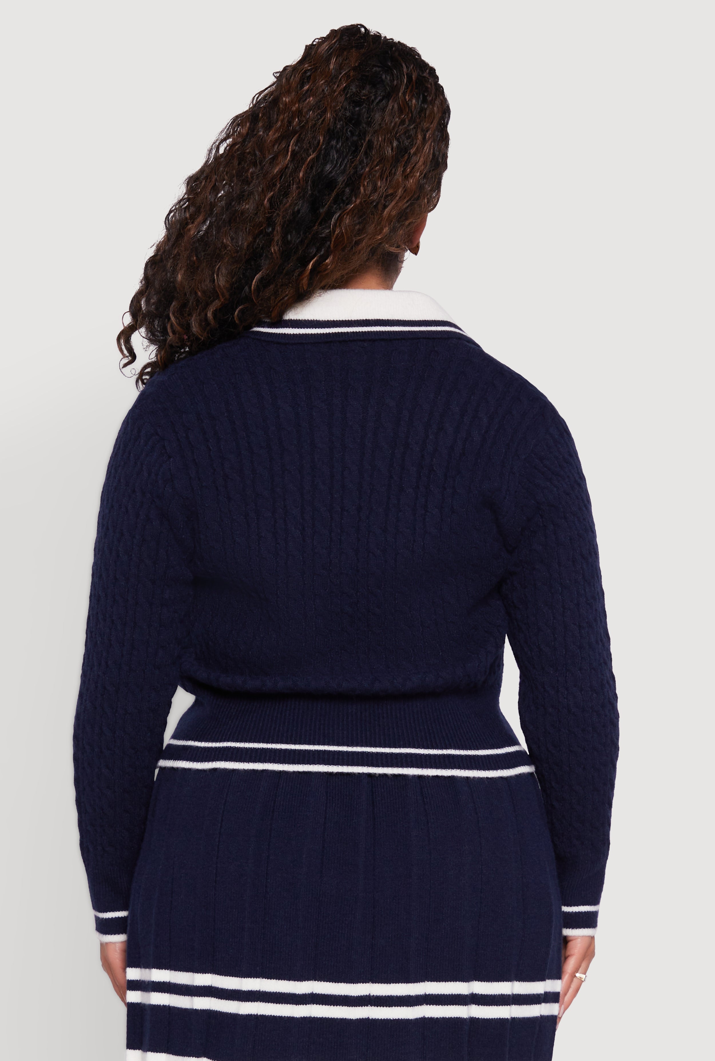 Step up your cozy game with this Plus Size Bear Patch Graphic Varsity Stripe Cardigan. With its classic fit and timeless silhouette, this cardigan blends sporty vibes and casual comfort effortlessly. Featuring a button front and a cute bear patch, it’s perfect for layering on those chill days when you want to feel comfy but still look put together. Whether you’re heading out for a casual hangout or just lounging at home, this cable knit cardigan adds a playful touch to your everyday style.