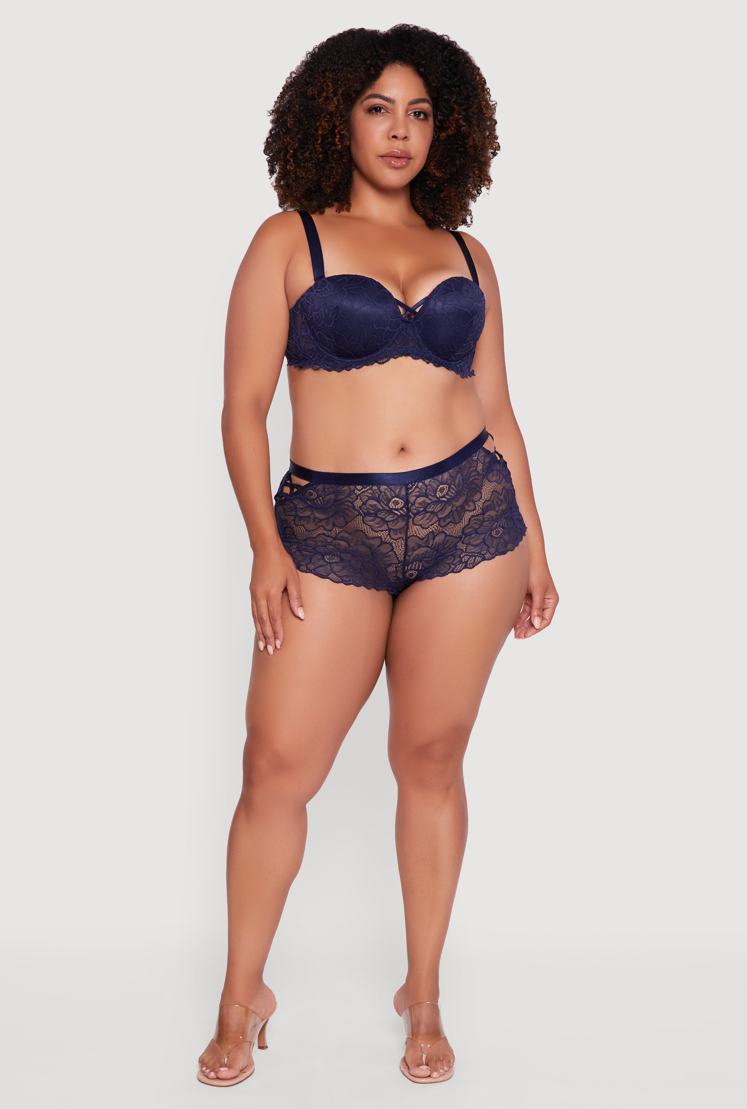 Feel confident and flirty in this Plus Size Caged Scalloped Lace Balconette Bra that perfectly blends support and style. The delicate lace with trendy caging adds a touch of edge while the convertible design lets you switch to strapless for all your outfit needs. Whether you're rocking a favorite top or going strapless for a night out, this bra has got your back with comfort and a flawless fit.