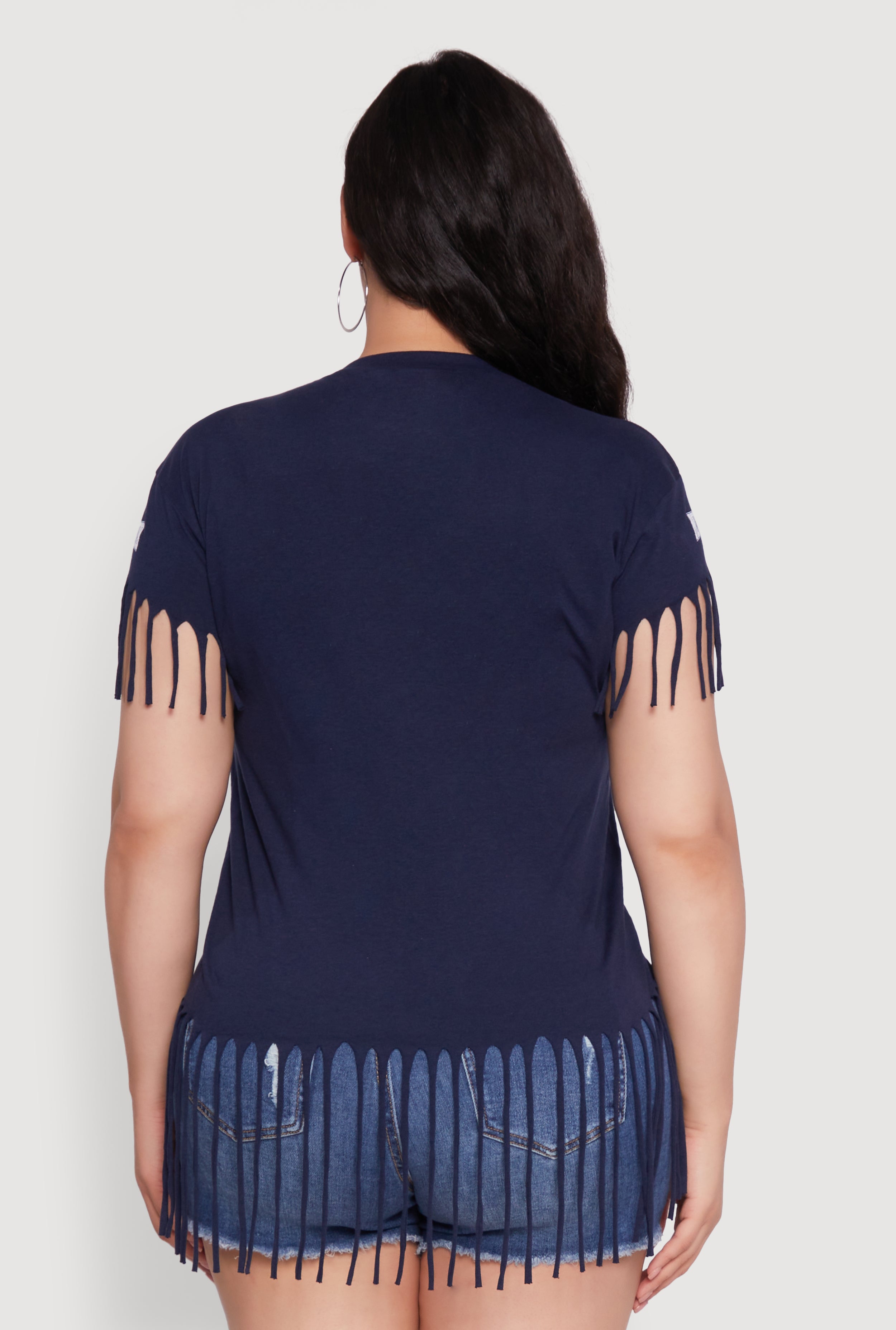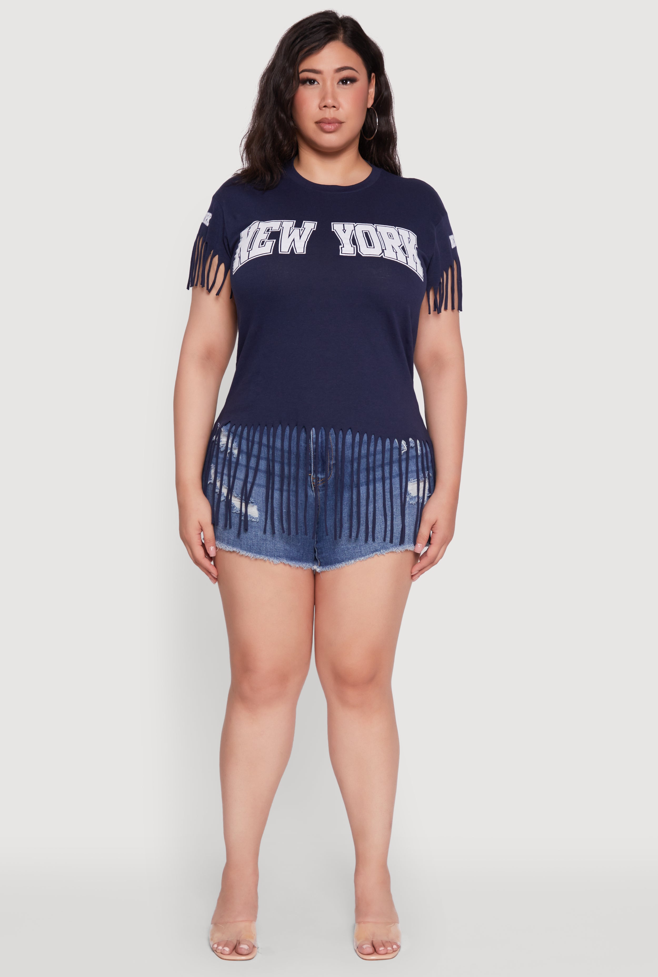 Step out in style with the Plus Size New York Graphic Fringe Hem Tee, your new go-to for casual cool vibes. This tee brings the iconic energy of New York right into your wardrobe with a bold graphic print that says city chic. The playful fringe hem adds a fun twist that moves with you, making every step feel like a mini celebration. Designed with a comfy crew neck and easy short sleeves, it’s perfect for those laid-back days when you want to look effortlessly put together without trying too hard.