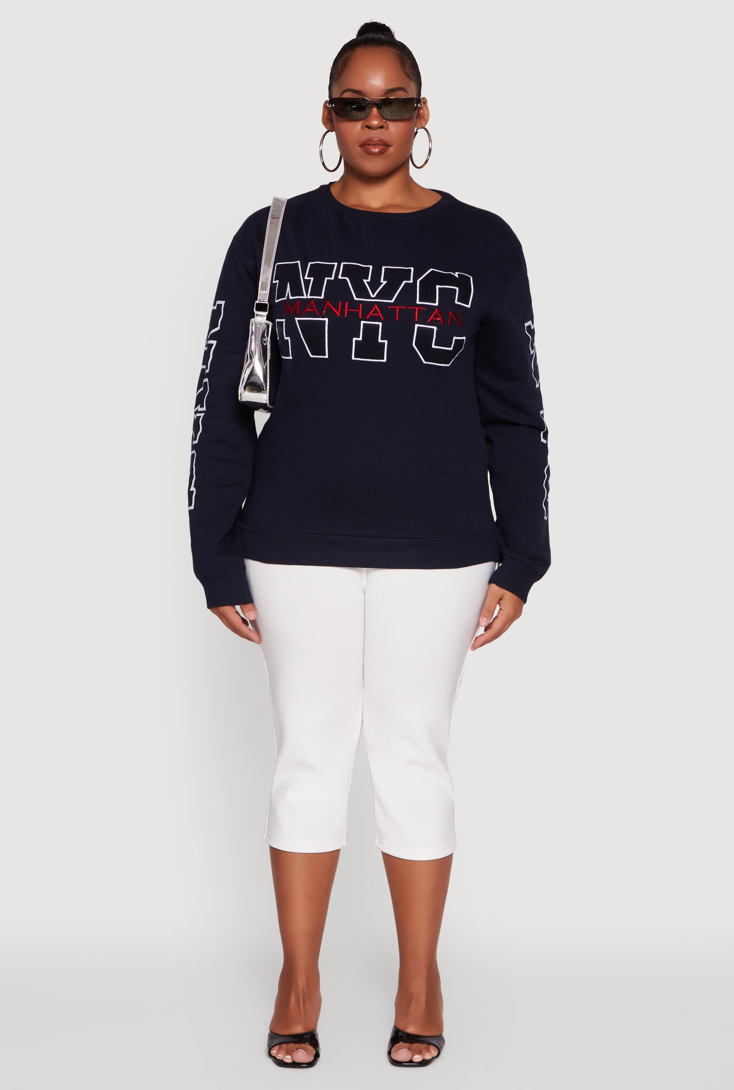 Plus Size NYC Manhattan Embroidered Graphic Sweatshirt