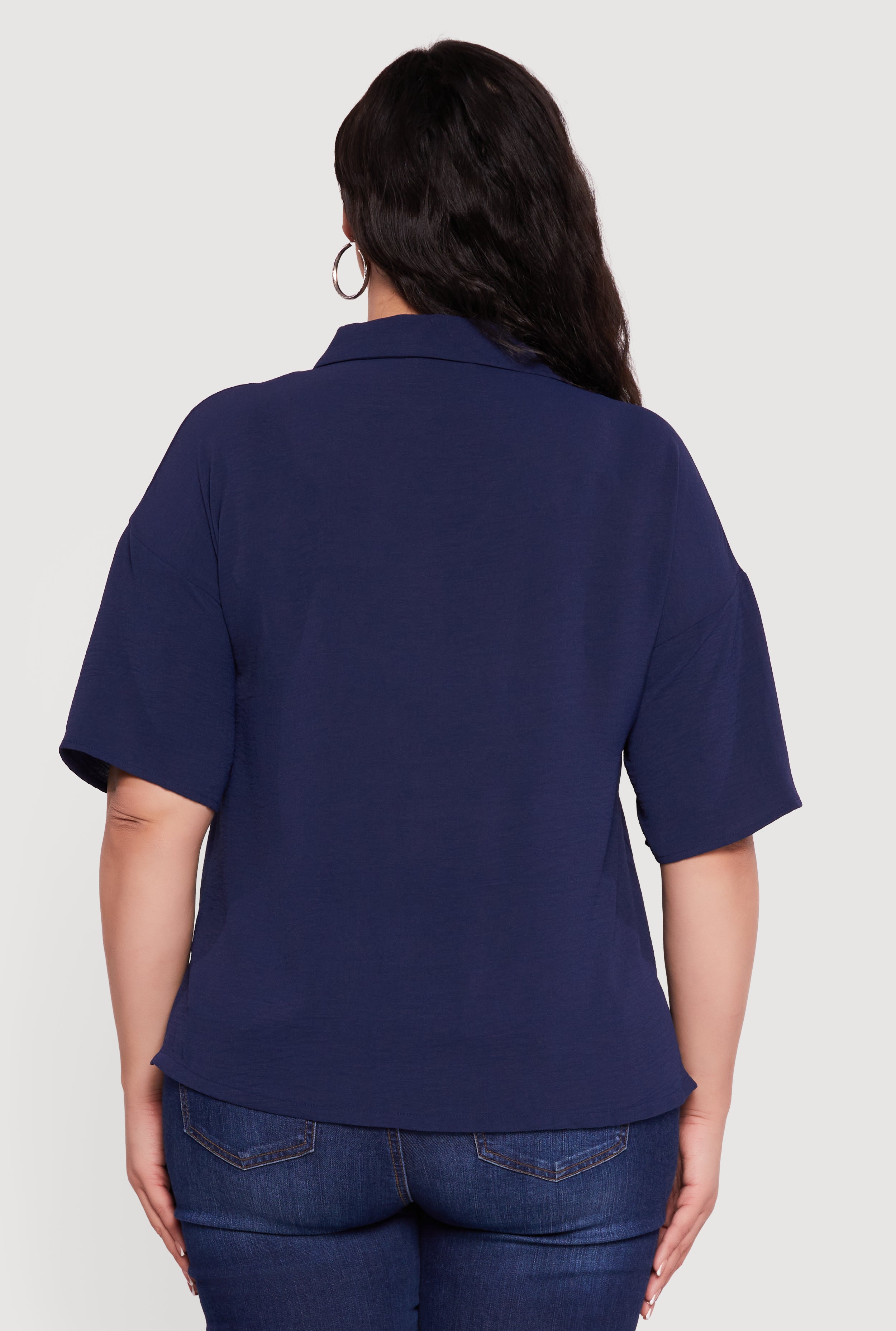 Step up your style game with this Plus Size Puff Sleeve Collared Blouse designed to bring effortless chic to your everyday look. Featuring a classic fit and delicate puff sleeves, this blouse blends timeless elegance with a playful twist. Made from soft crepe knit fabric, it drapes beautifully while keeping you comfortable all day long. Perfect for casual hangouts or office vibes, the side slits add a subtle flair that moves with you. Elevate your wardrobe essentials with this versatile piece that’s as stylish as it is comfy.