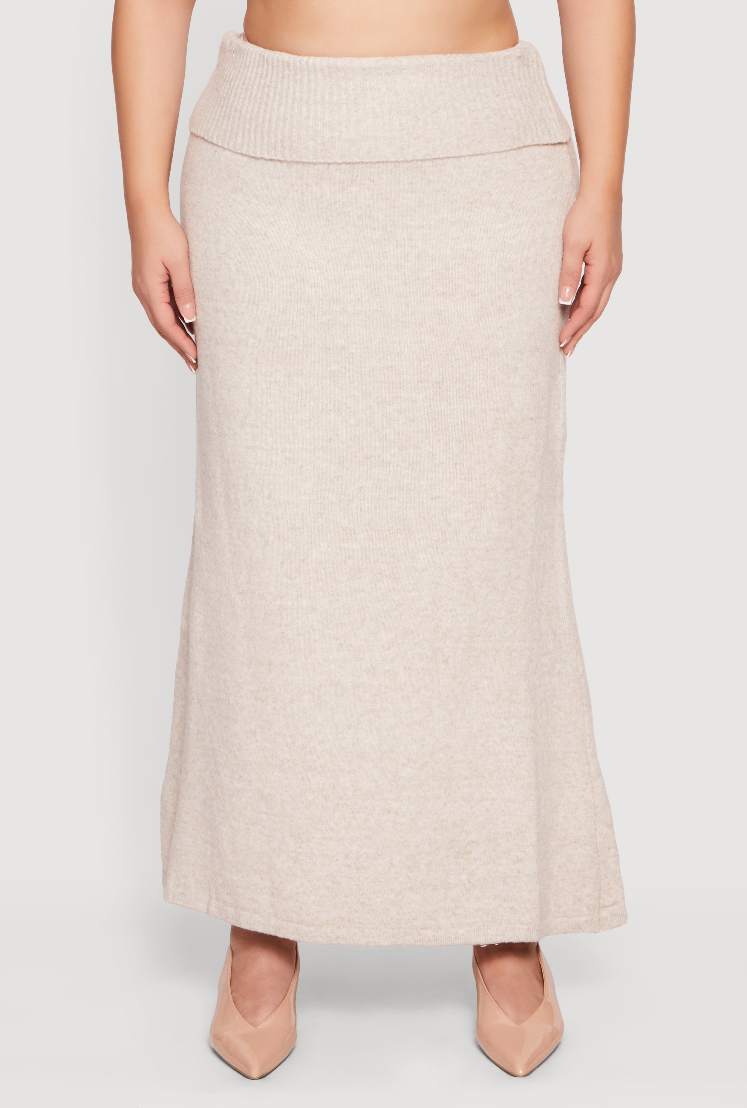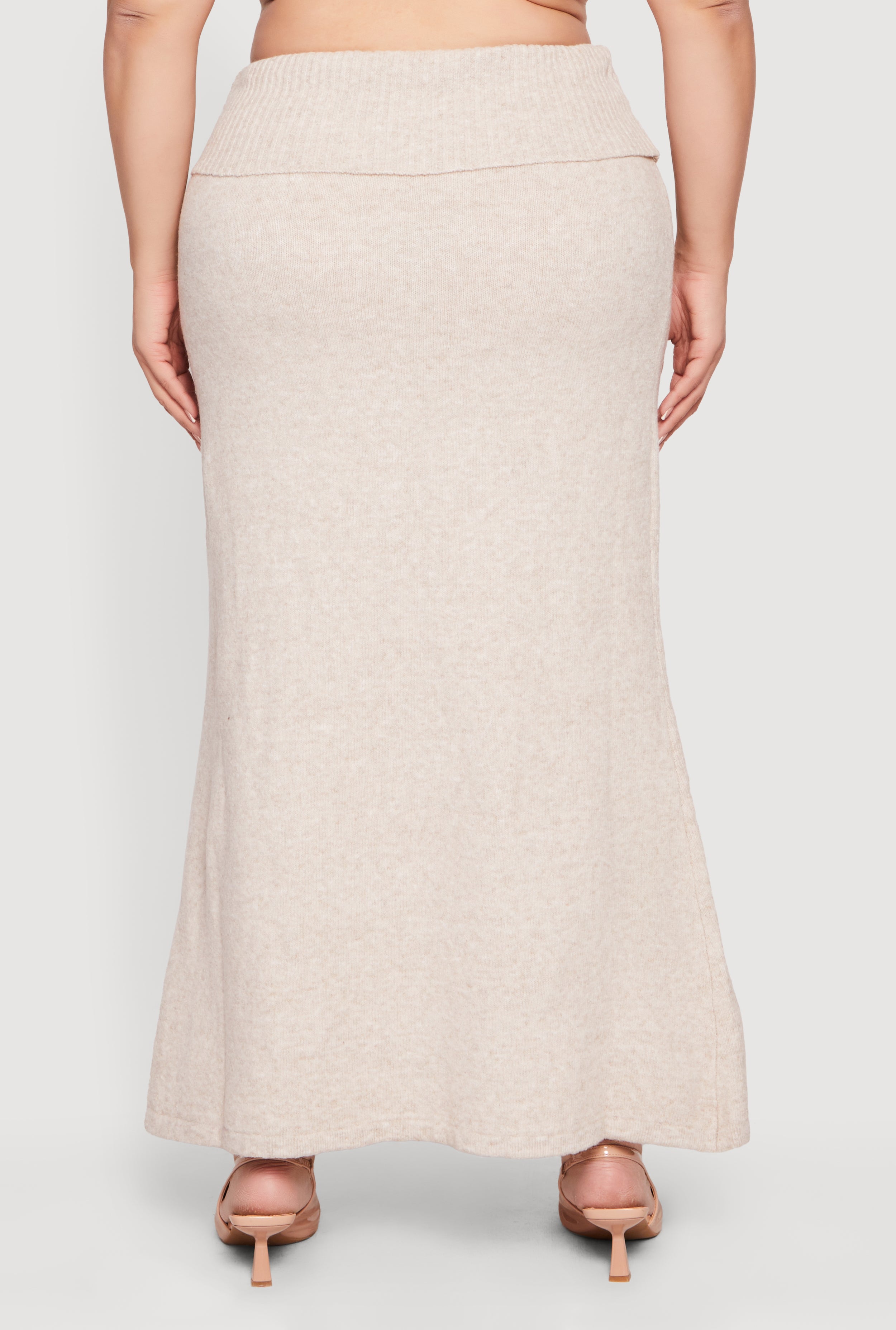 Step out in style and comfort with the Plus Size Almost Famous Ribbed Knit Fold Over Maxi Skirt. This high waisted beauty hugs your curves in all the right places while offering a laid-back vibe perfect for casual days. The ribbed knit fabric adds texture and stretch, making it a go-to piece for effortless cool. Whether you're running errands or meeting friends for coffee, this maxi skirt folds over at the waist for a flattering fit that moves with you.