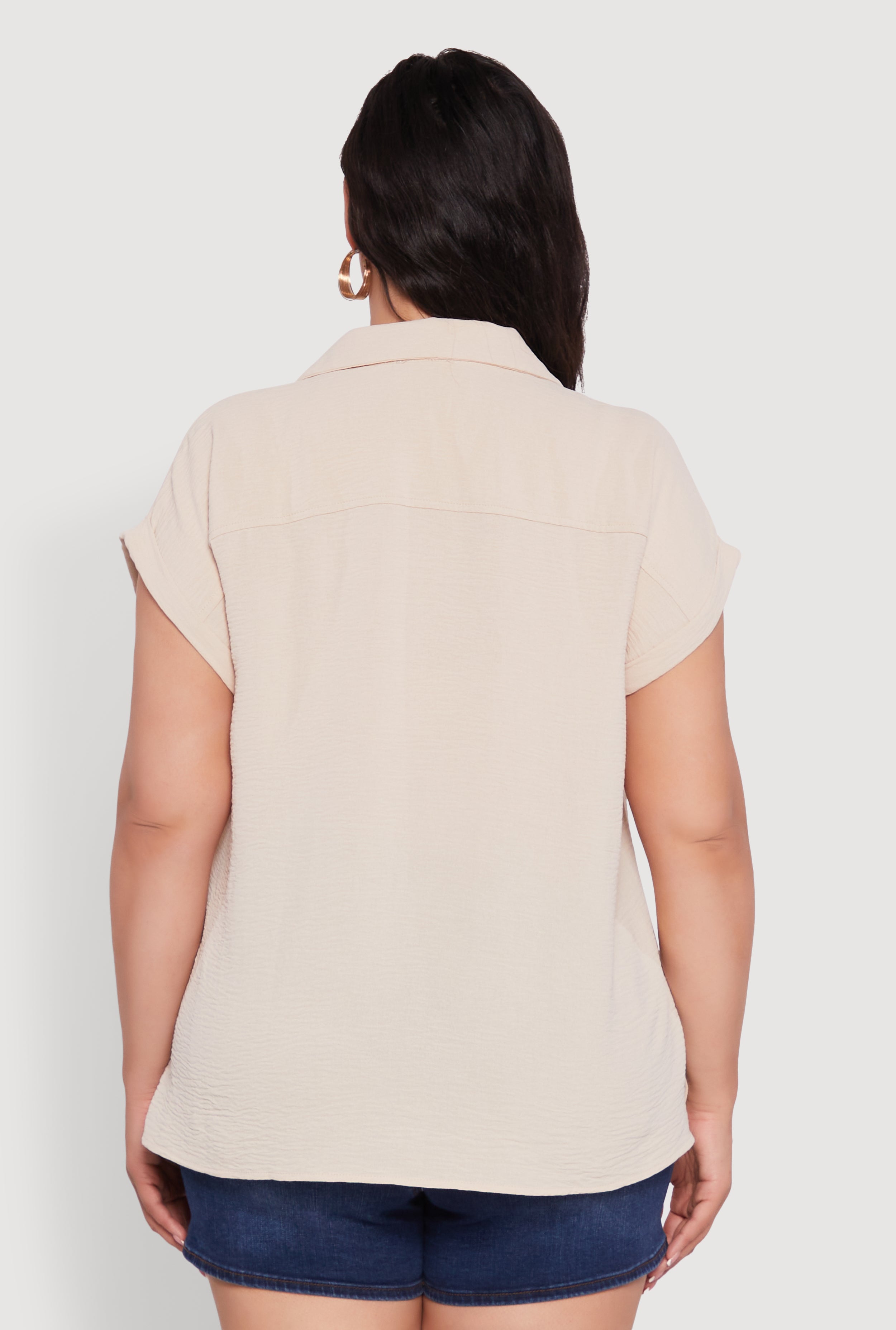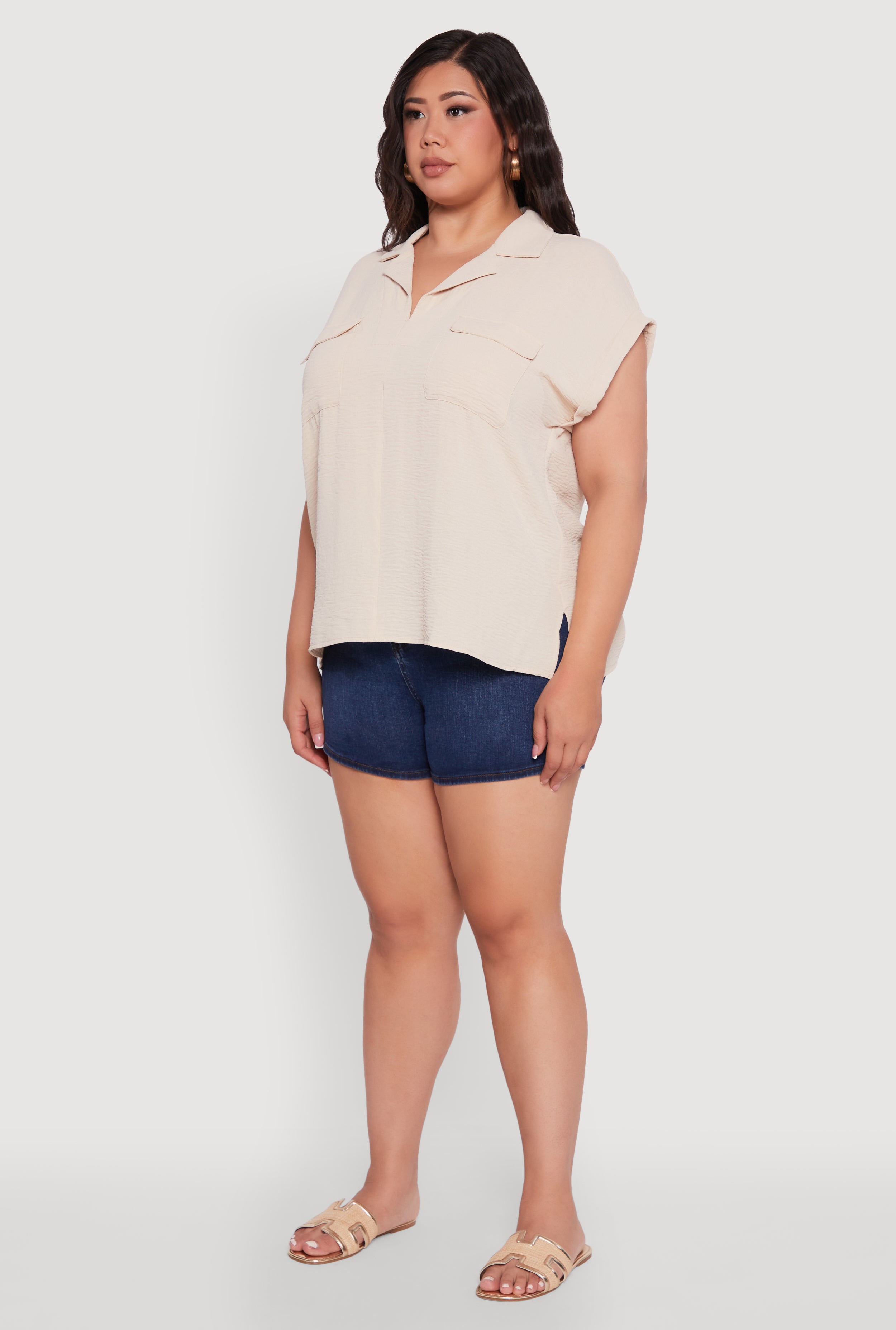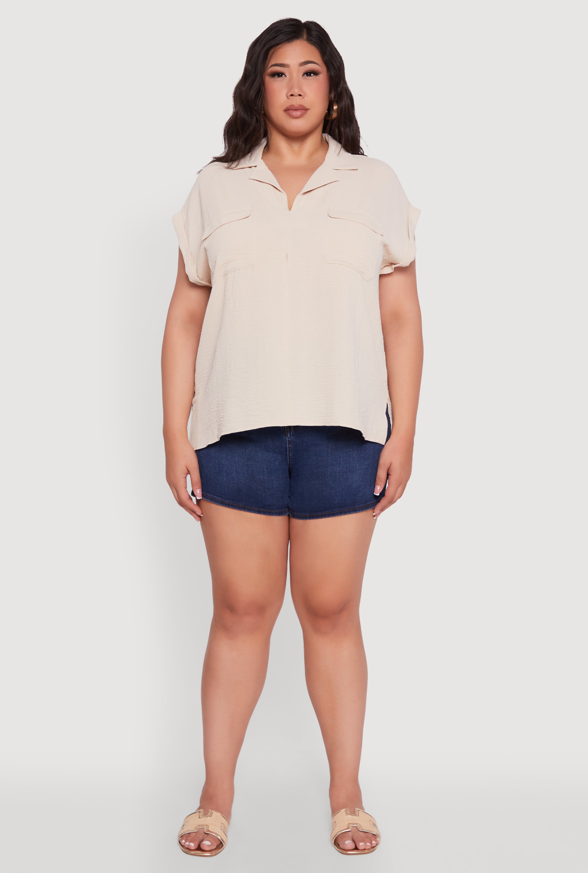 Step up your style game with this Plus Size Collared Crepe Knit Blouse featuring handy flap pockets. Designed for those who love a relaxed fit that moves with you, this blouse is your new go-to for casual days and office vibes alike. The soft crepe knit fabric feels as good as it looks, while the classic collar adds a touch of polished charm. Whether you’re heading to work or off on a vacation adventure, this blouse keeps you comfortable and effortlessly chic.