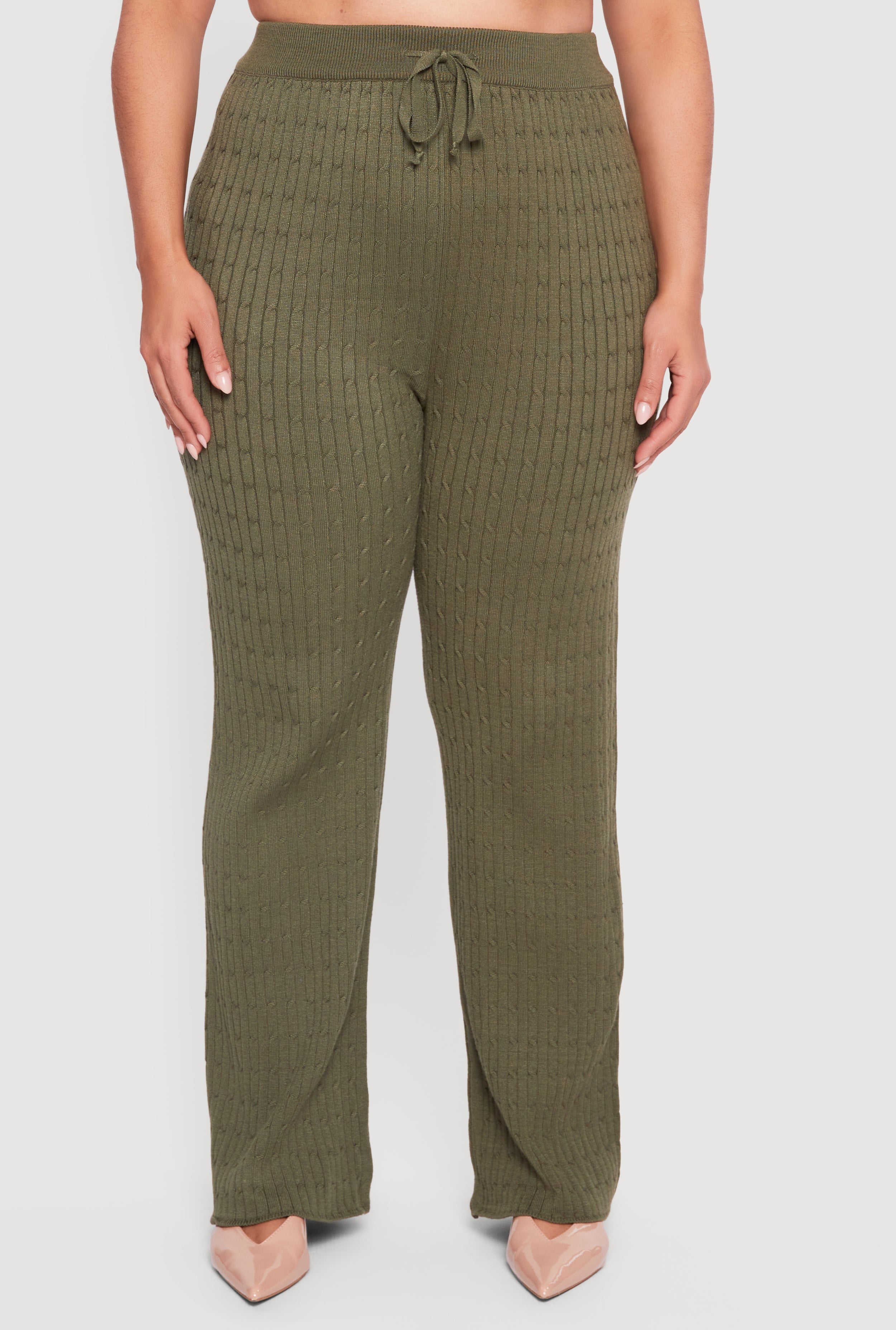 Plus Size Cable Knit Drawstring Waist Pull On Pants