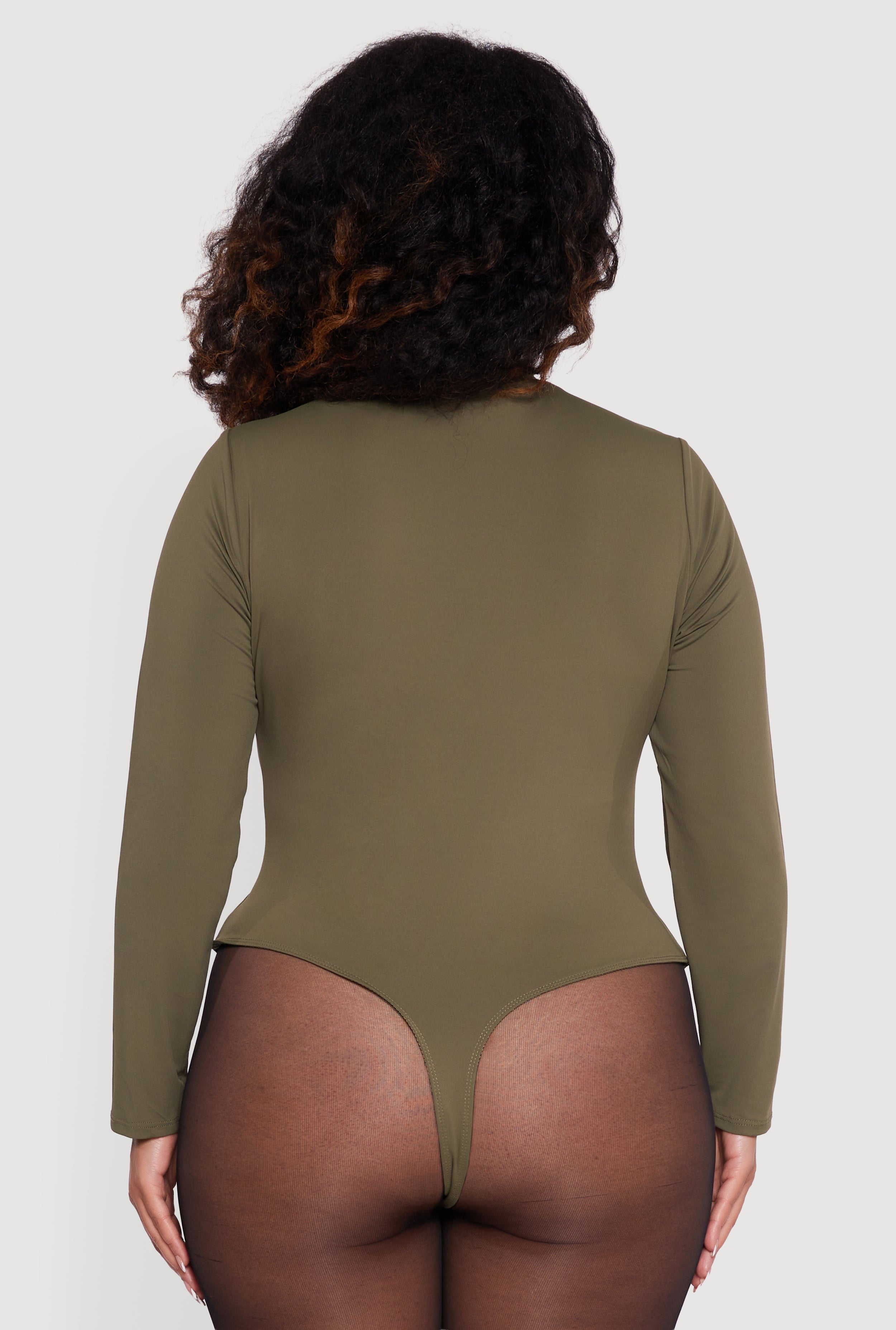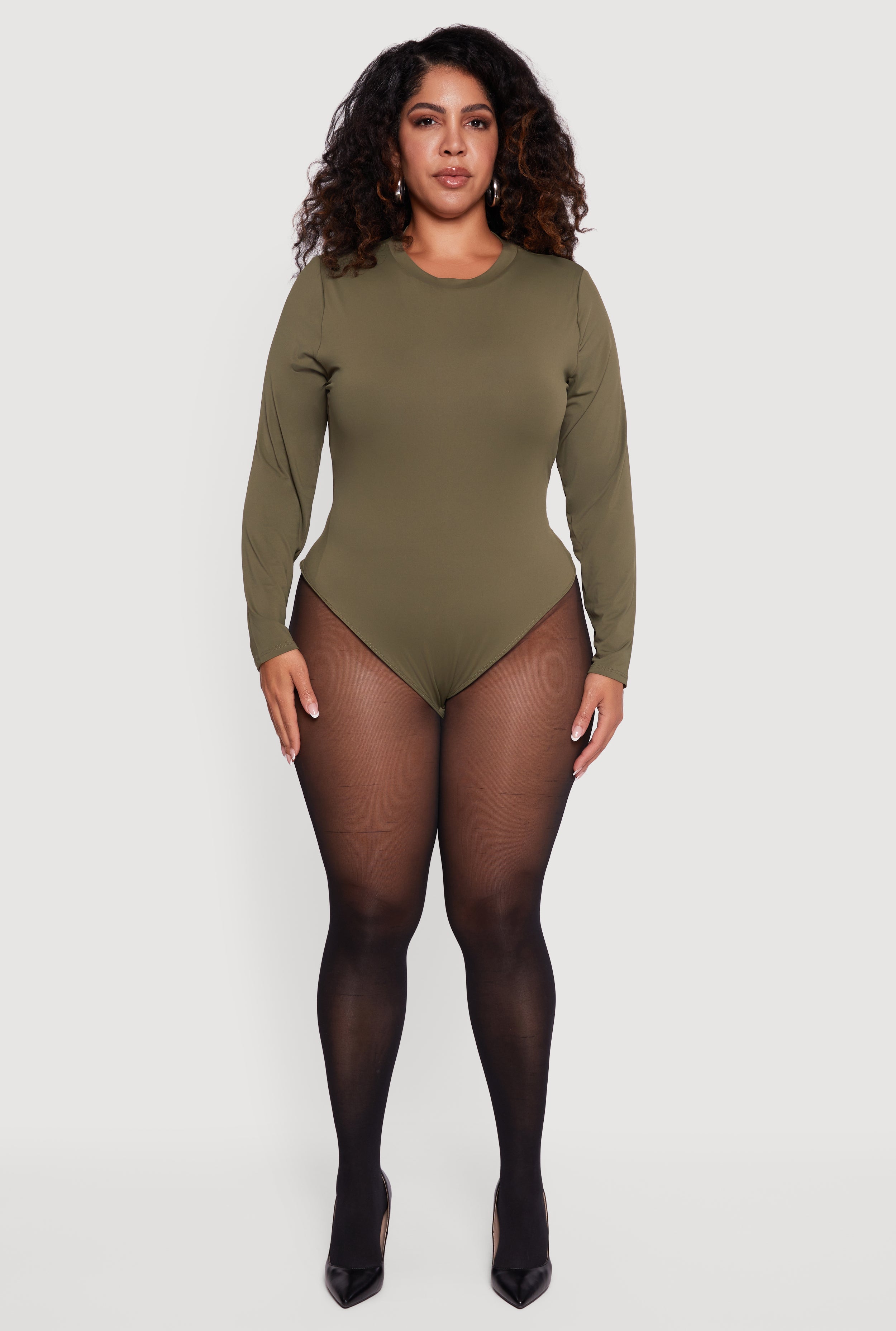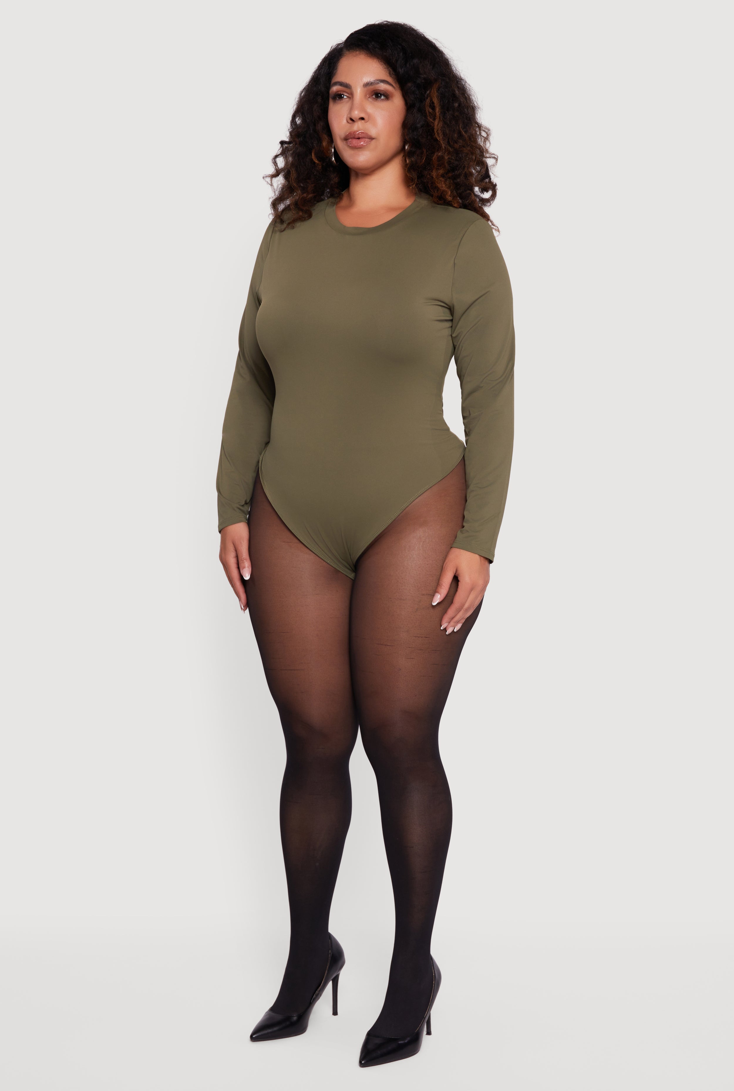 Plus Size Double Layer Long Sleeve Crew Neck Bodysuit