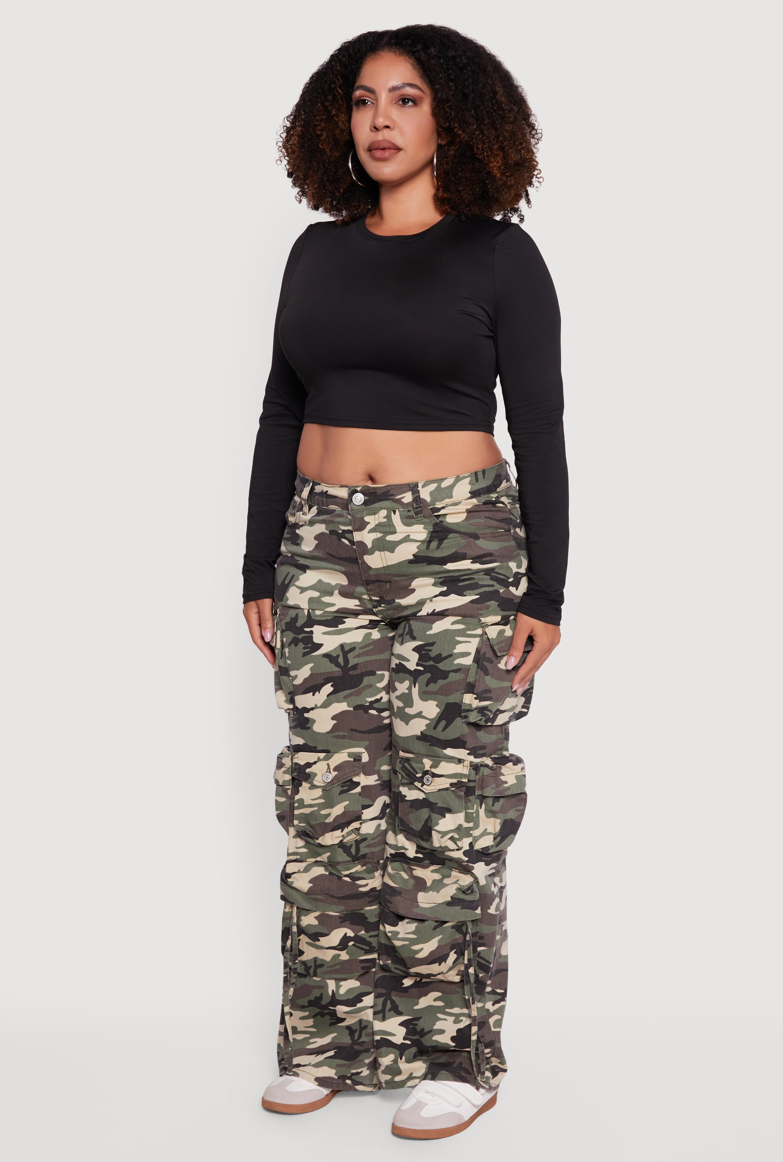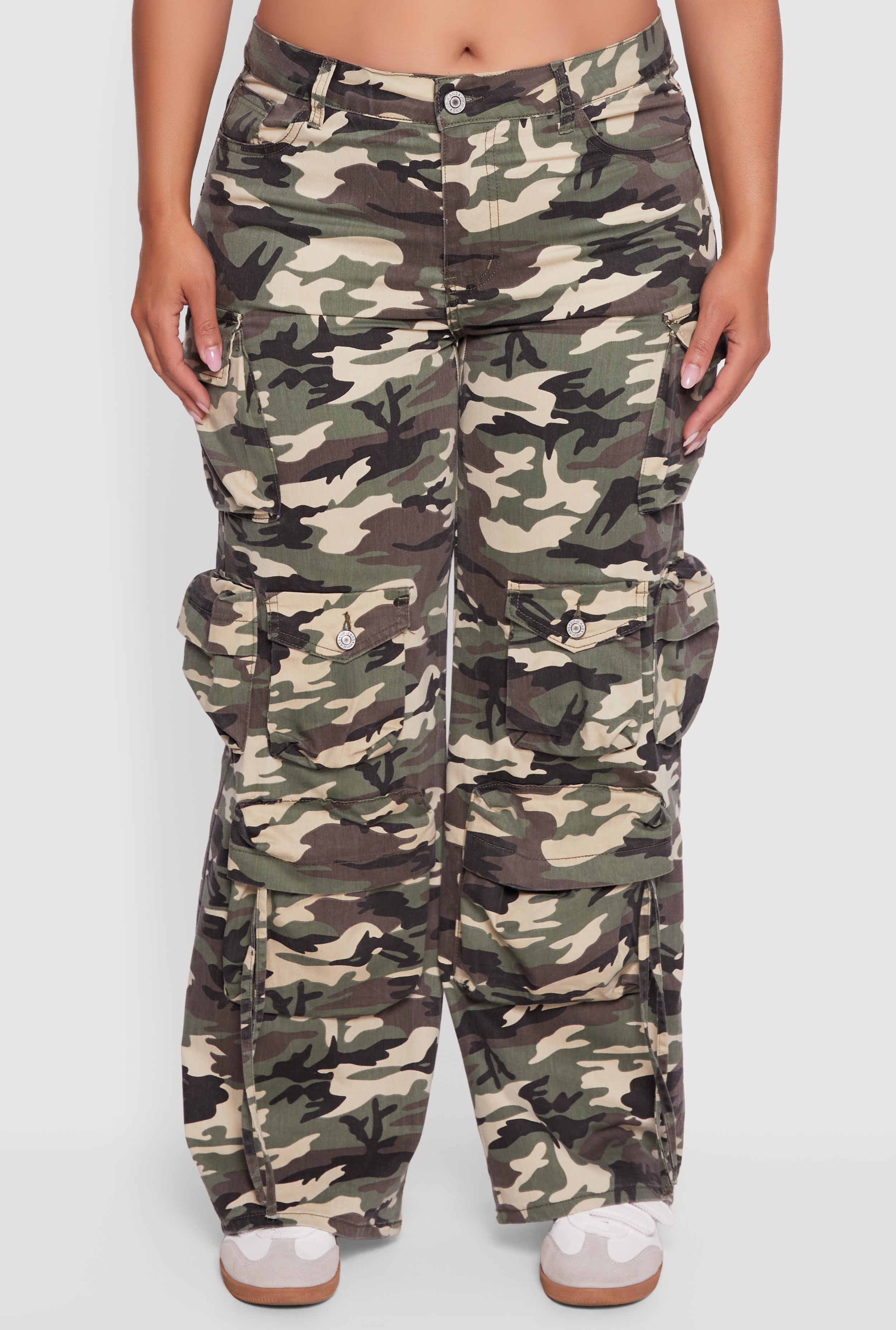 Step up your style game with these Plus Size High Waisted Wide Leg Camouflage Cargo Pants. Designed for comfort and confidence, these pants feature a trendy wide-leg cut and a flattering high waist that hugs your curves in all the right places. Perfect for casual days or a night out, the bold camouflage pattern adds an edgy streetwear vibe that’s totally on-trend. Whether you’re running errands or hitting the town, these cargo pants combine style and functionality with a relaxed fit that moves with you.