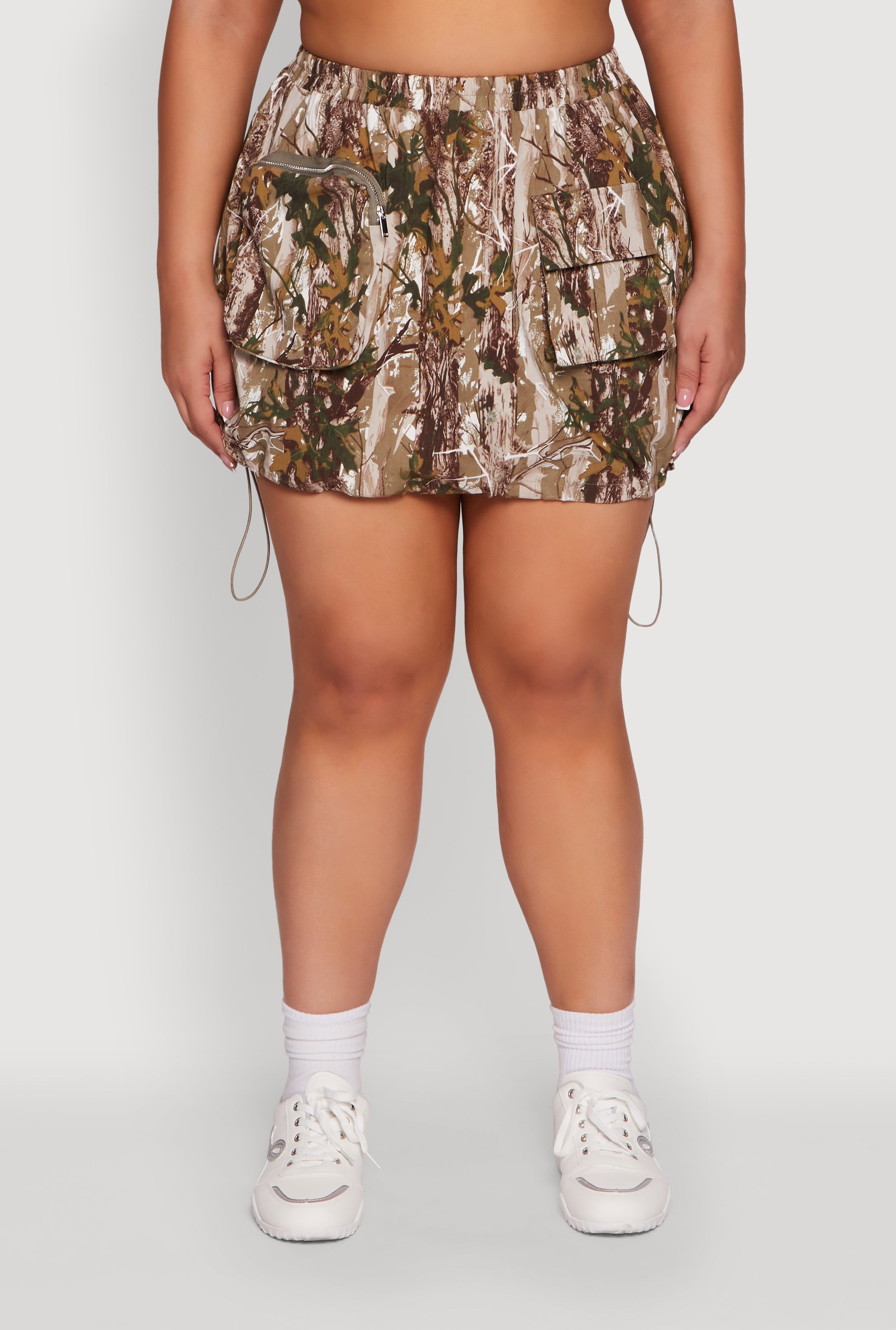 Plus Size Hunter Camo Drawstring Hem Cargo Mini Skirt
