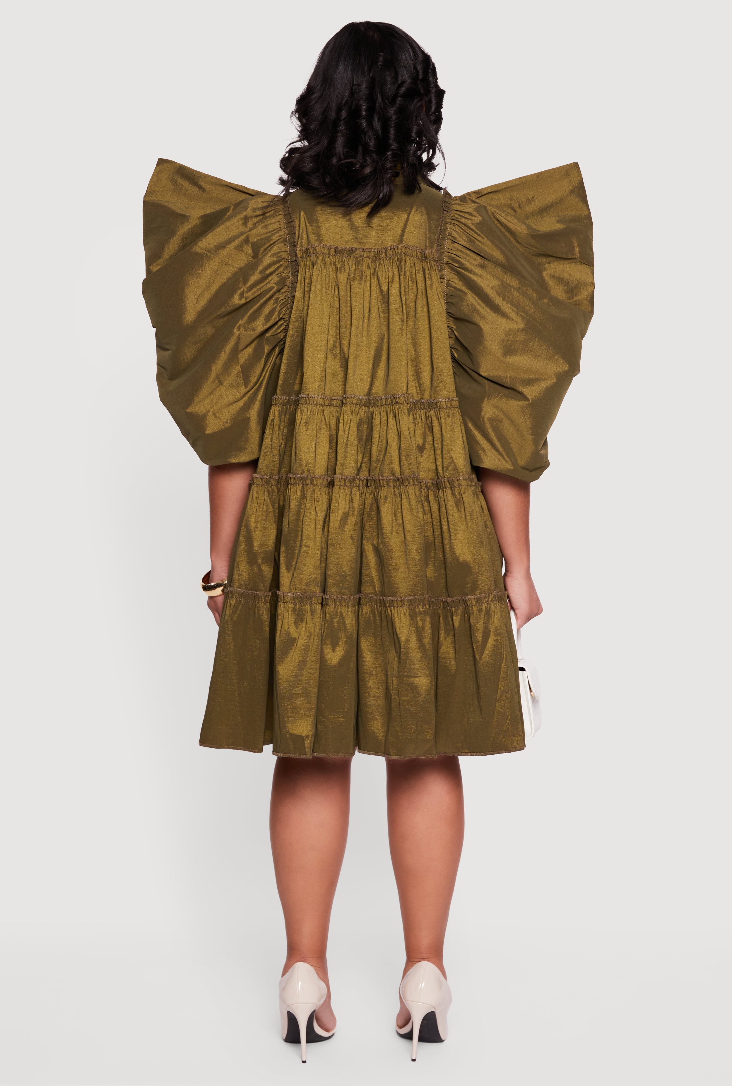 Plus Size Puff Sleeve Ruffle Tiered Button Front Shirt Dress