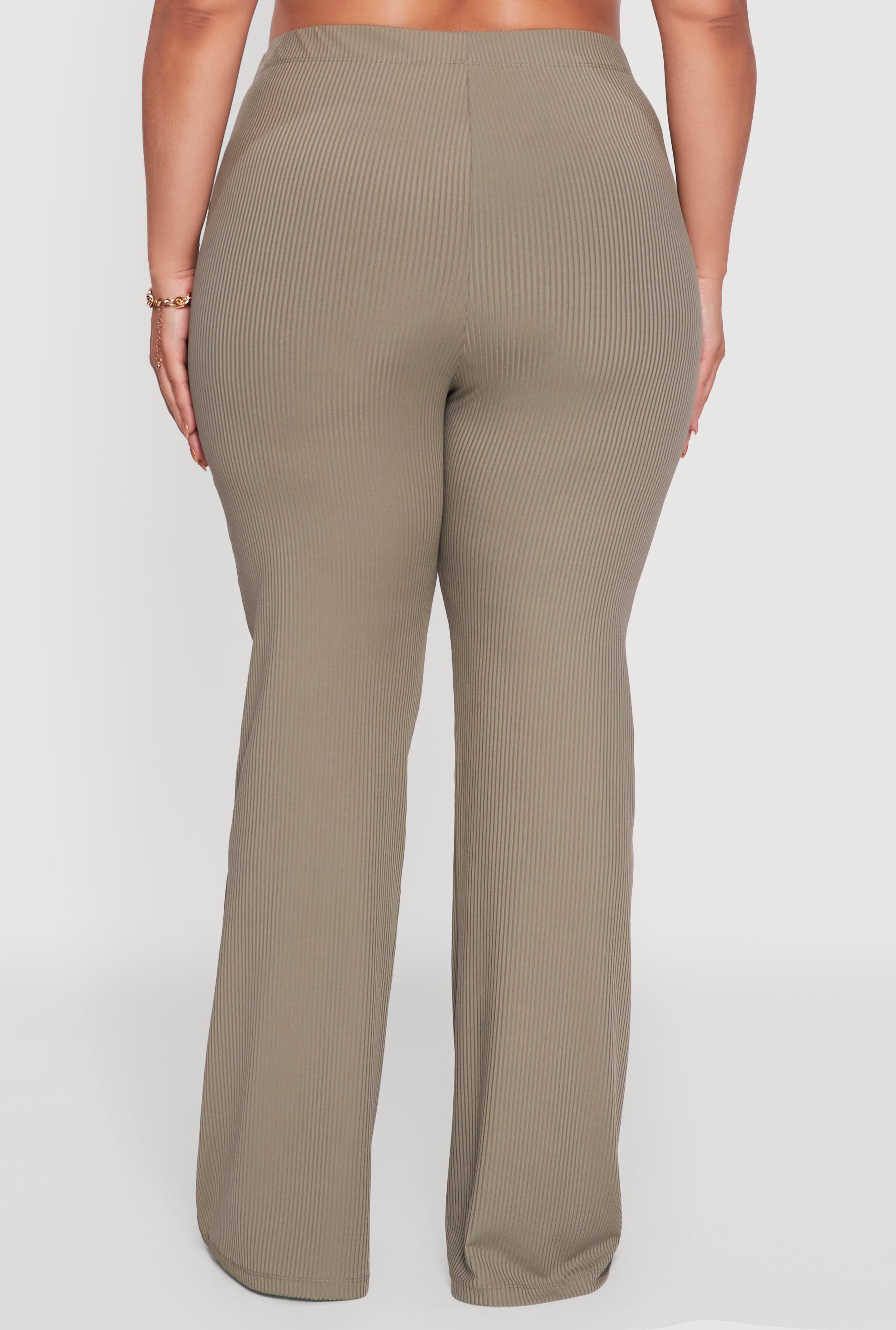Step into effortless style with these Plus Size Rib Knit High Waisted Pull On Flare Pants. Designed to hug your curves in all the right places while keeping things loose and comfy, these pants are your new go-to for casual days that demand both comfort and a touch of flair. The ribbed knit fabric adds subtle texture, and the high waist gives you that flattering silhouette you love. Whether you're running errands or chilling with friends, these flare leg pants pull on easily and move with you, making them a must-have for your everyday wardrobe.