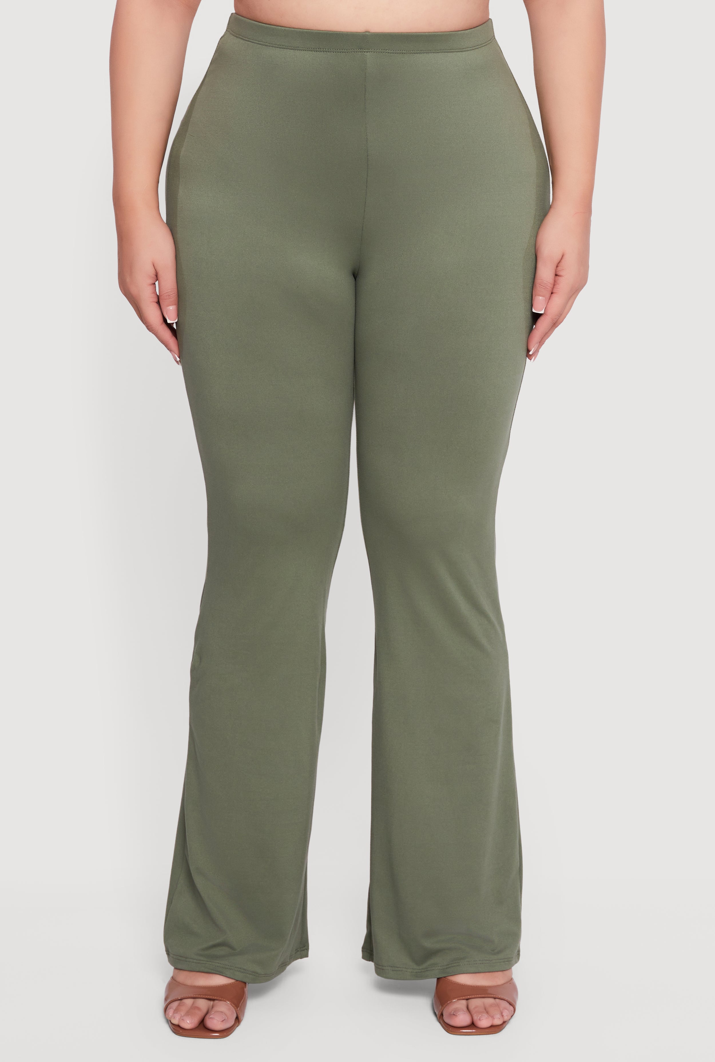 Step out in style and comfort with these Plus Size Soft Knit Pull On Flare Leg Pants. Designed to flatter your curves, these high-waisted pants feature a modern fit and a chic flare leg silhouette that moves with you. The soft knit fabric feels cozy against your skin, making them perfect for a night out or party. Easy to wear with a pull-on design, these pants combine effortless style with all-day comfort.