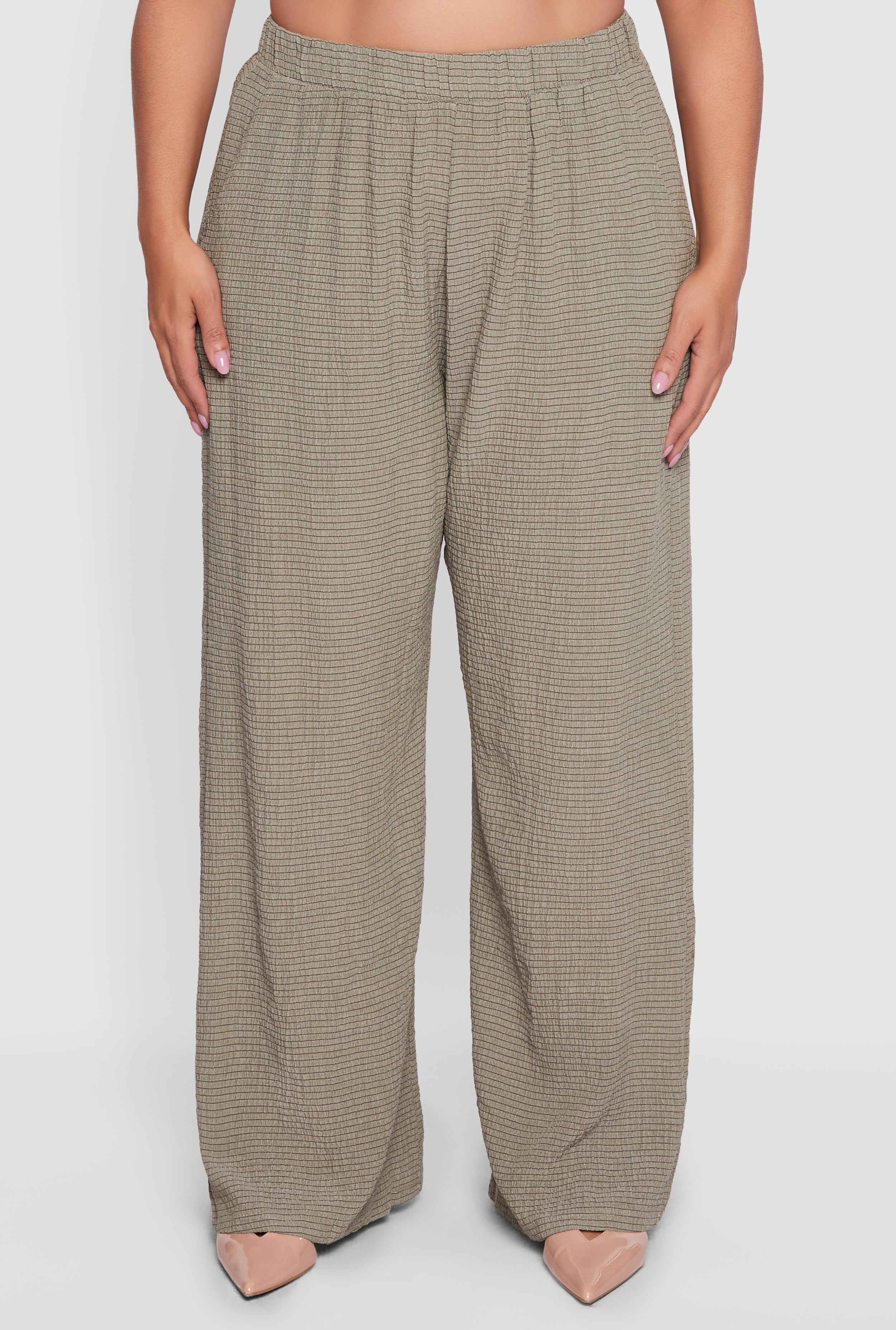 Step into effortless style with these Plus Size Striped Seersucker Wide Leg Pull On Pants. Designed for comfort and a flattering fit, these high-waisted pants feature a breezy seersucker fabric that keeps you cool while adding texture and charm. The wide-leg silhouette offers a relaxed, loose fit perfect for casual days when you want to look put together without trying too hard. Easy to pull on and pair with your favorite tops, these pants are your new go-to for laid-back vibes and all-day comfort.
