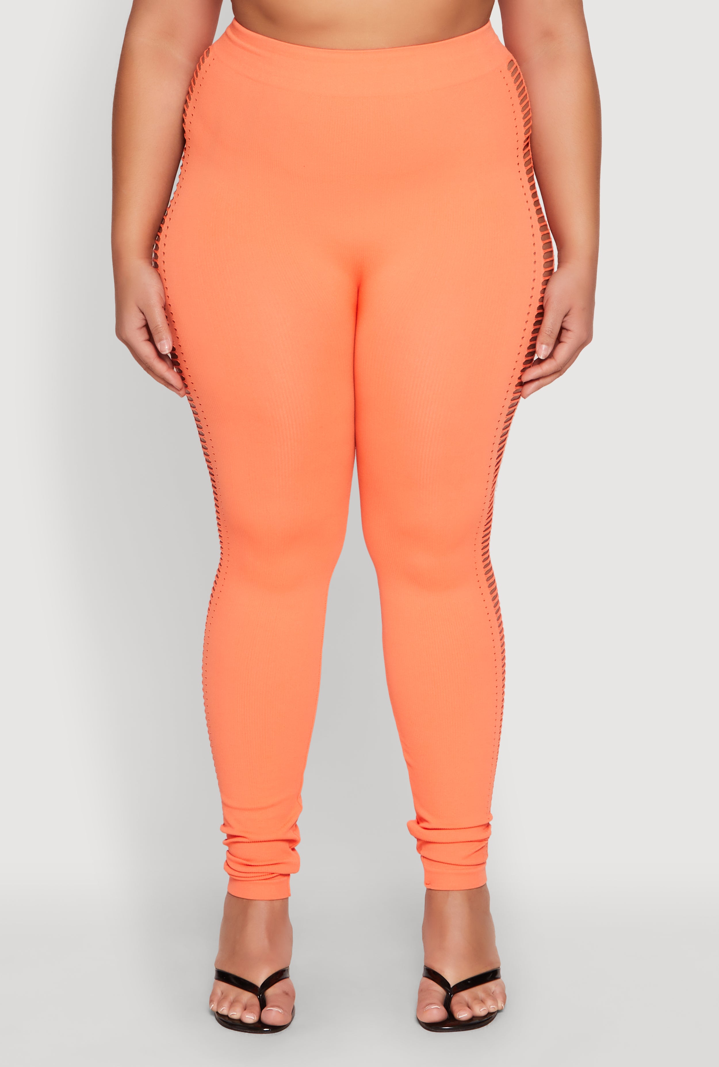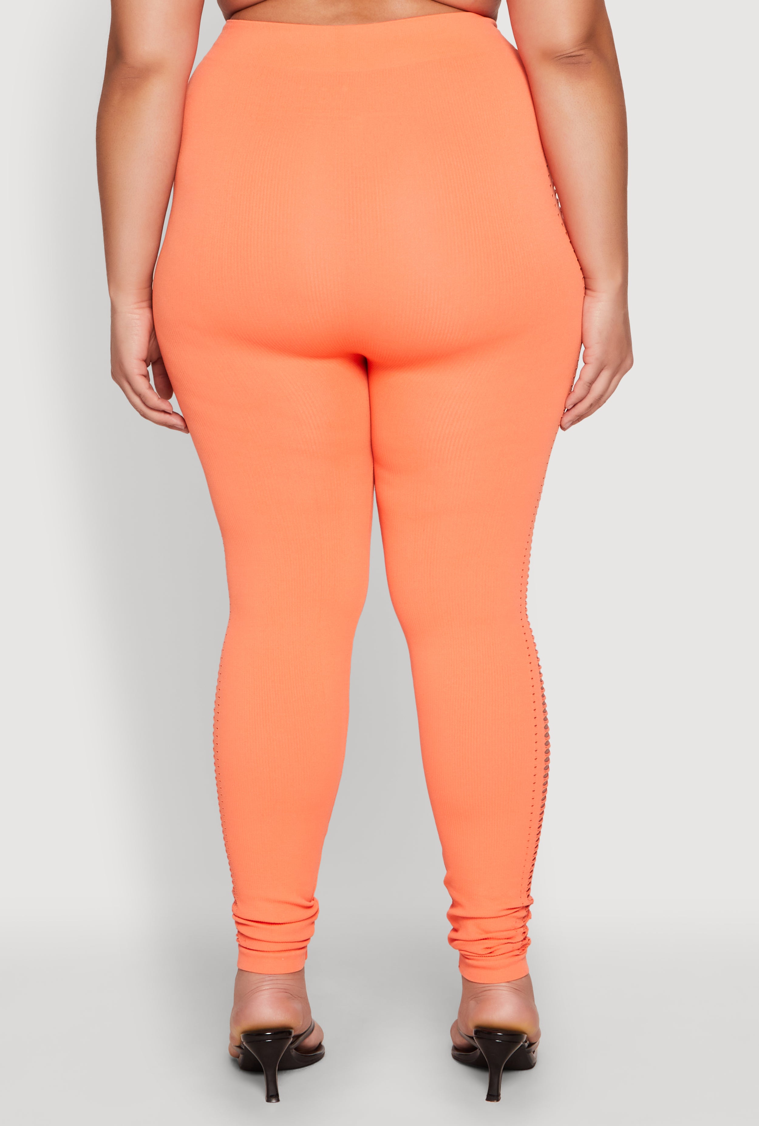 Step up your style game with our Plus Size Laser Cut Side Leggings, the perfect blend of edgy and comfy for your next night out or chill day. Designed with a high waist for a flattering fit and eye-catching laser cut details on the sides, these leggings are a must-have for anyone who wants to stand out. Made from ribbed knit material, they offer a cozy stretch that moves with you. Whether you're hitting the club or just feeling confident, these leggings are your new go-to for effortless style and comfort.