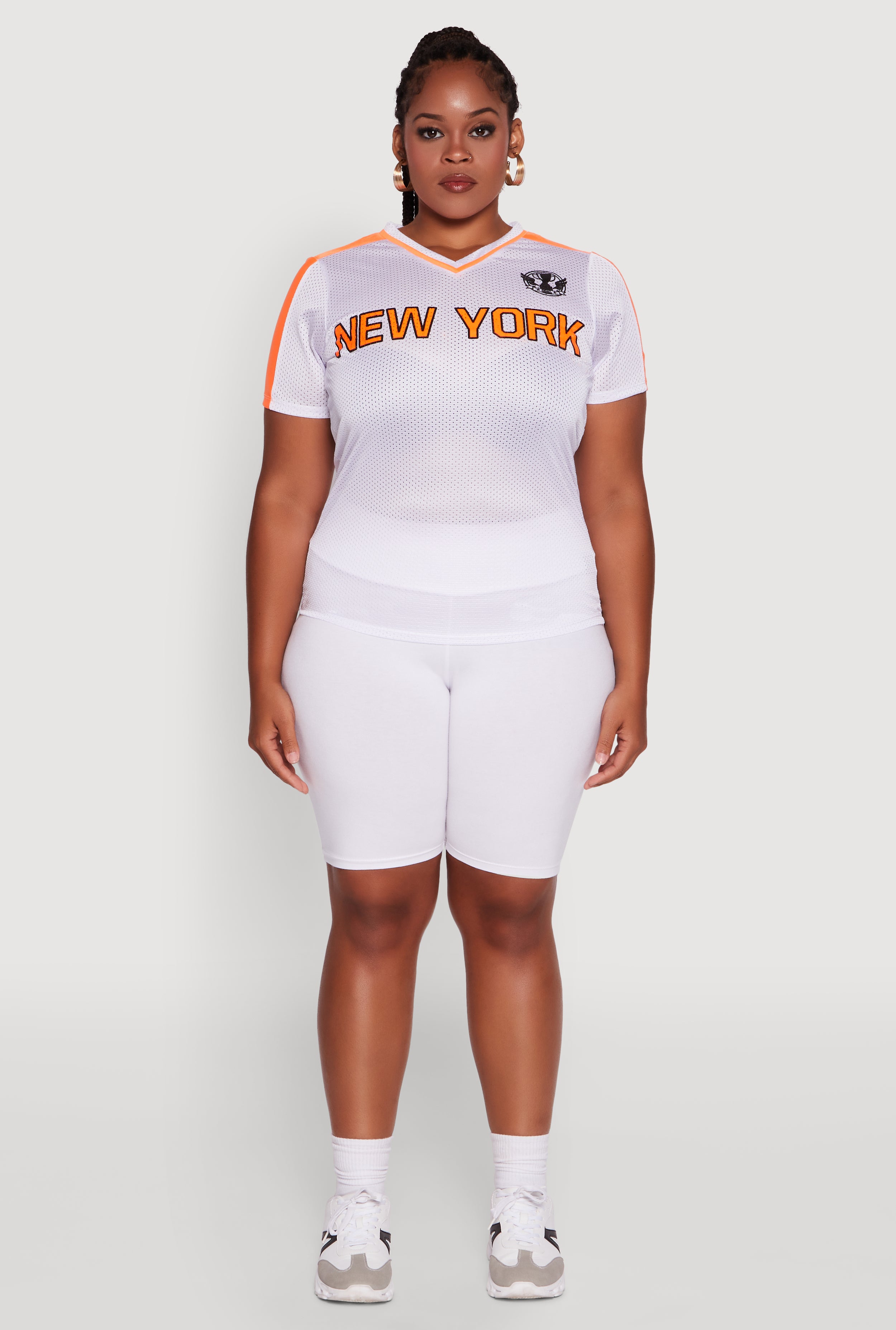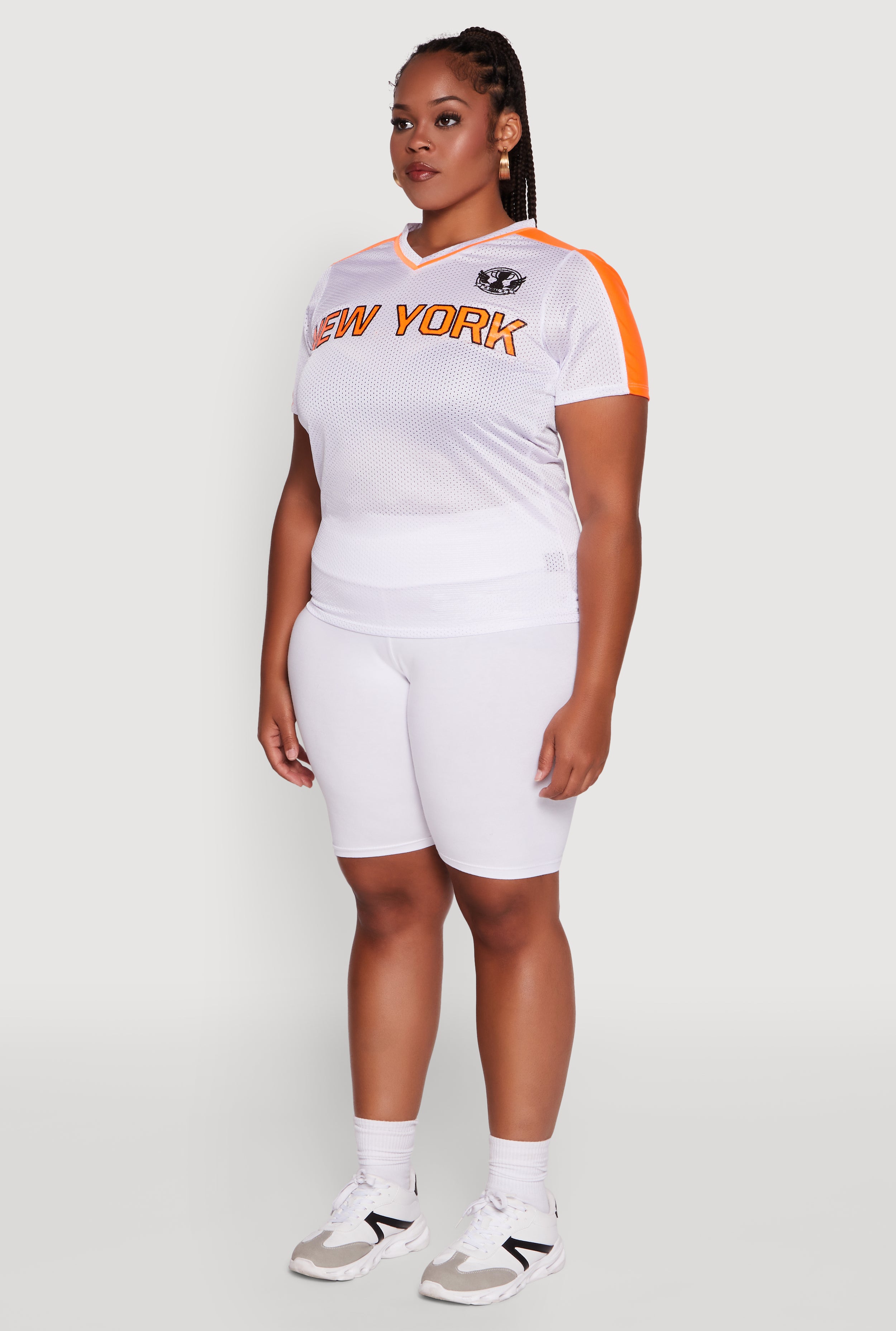 Step out in style with the Plus Size Trendy V-Neck New York Graphic Jersey. This classic fit tee combines a timeless silhouette with a fresh New York graphic that speaks your vibe. Whether you're hitting the streets or lounging in style, its breathable jersey mesh fabric keeps you comfy and cool all day long. The contrast trim adds a subtle pop, making this tee a must-have for your casual and activewear collection. Ready to level up your wardrobe with effortless cool?