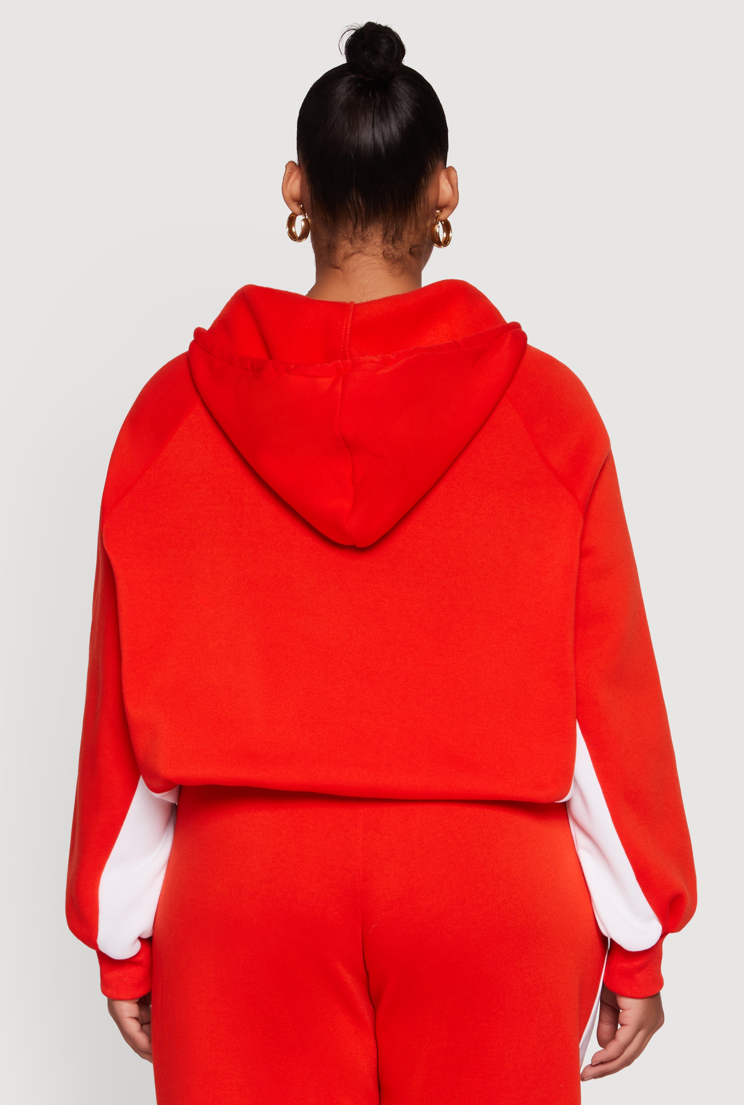 Plus Size Zip Front Contrast Trim Fleece Lined Hooded Sweatshirt