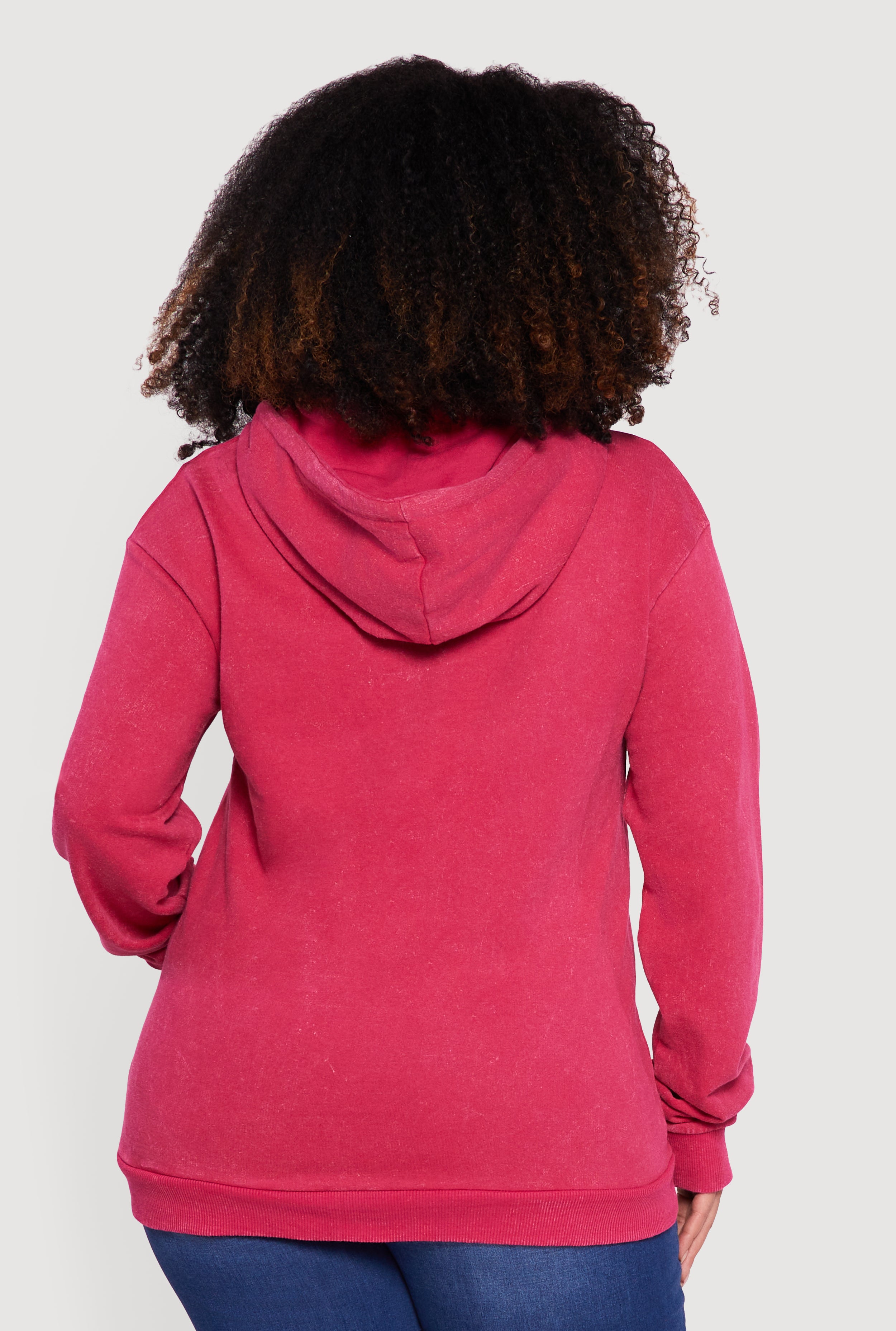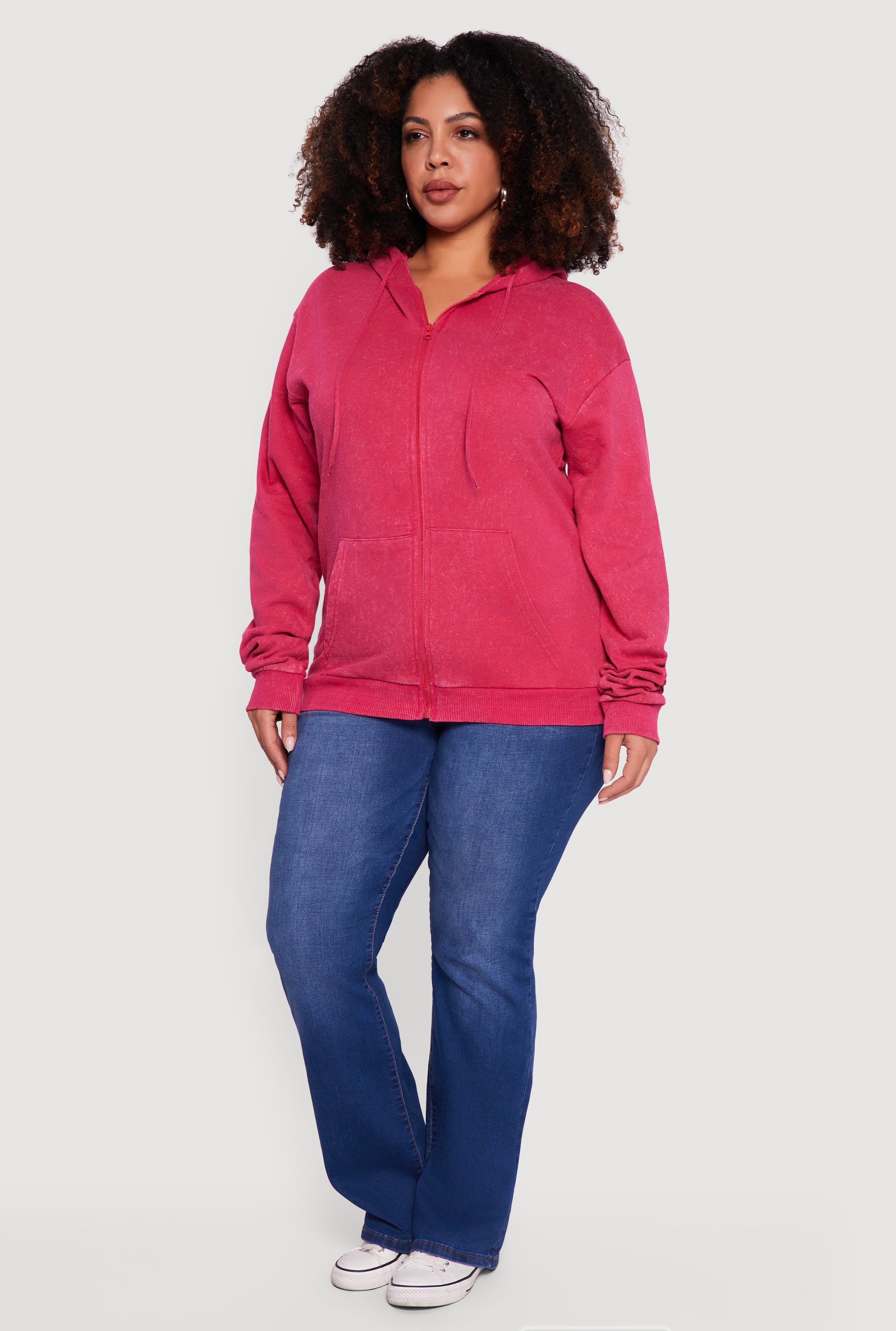 Plus Size Acid Wash Zip Front Fleece Hoodie
