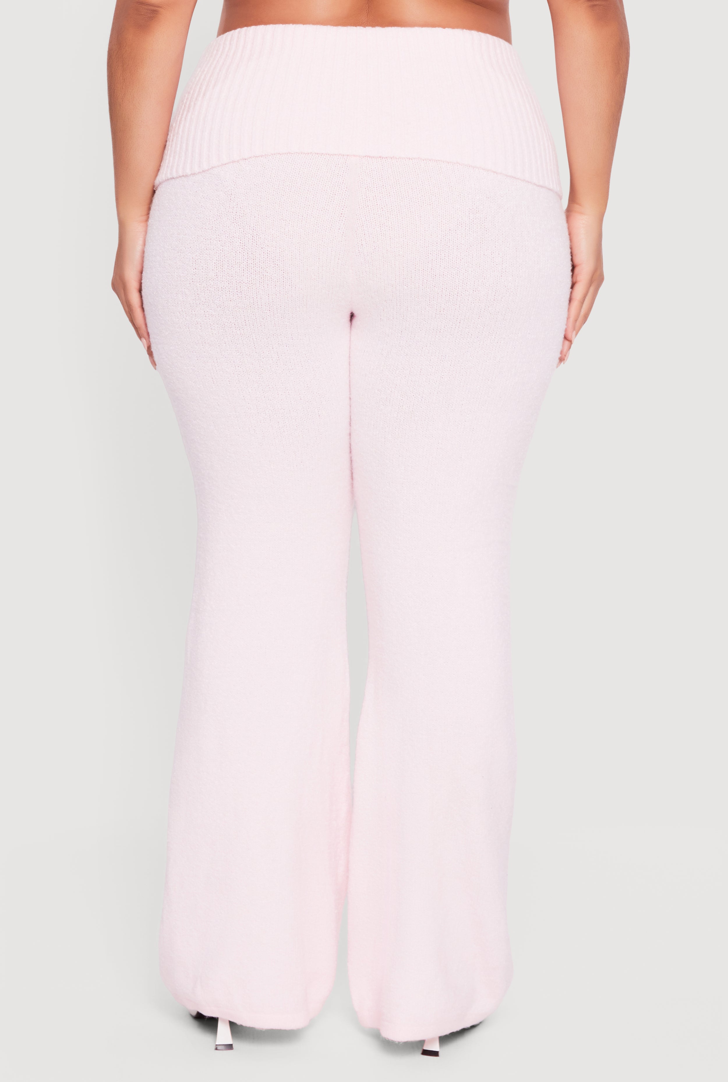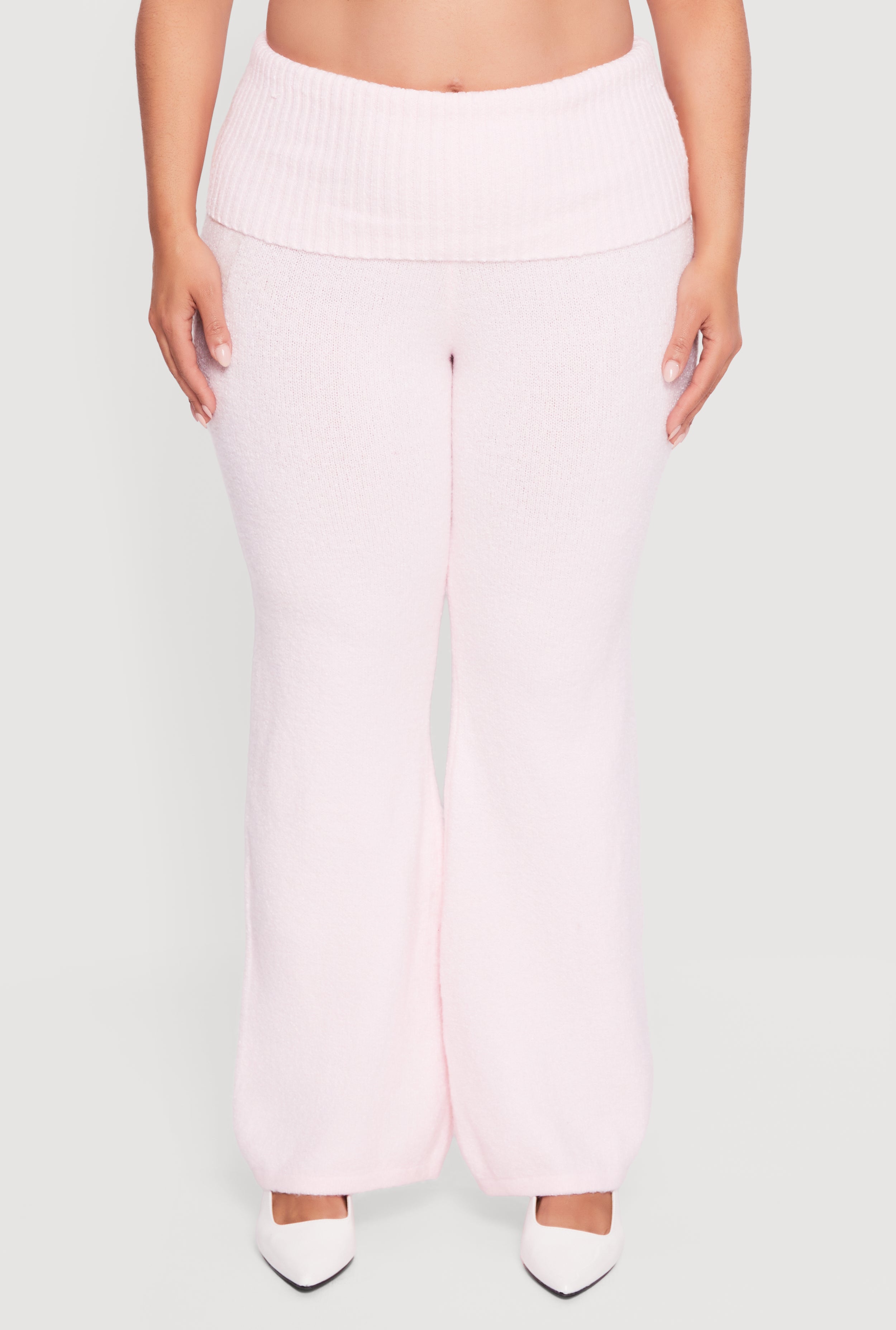 Plus Size Fold Over High Waisted Flare Leg Sweater Pants