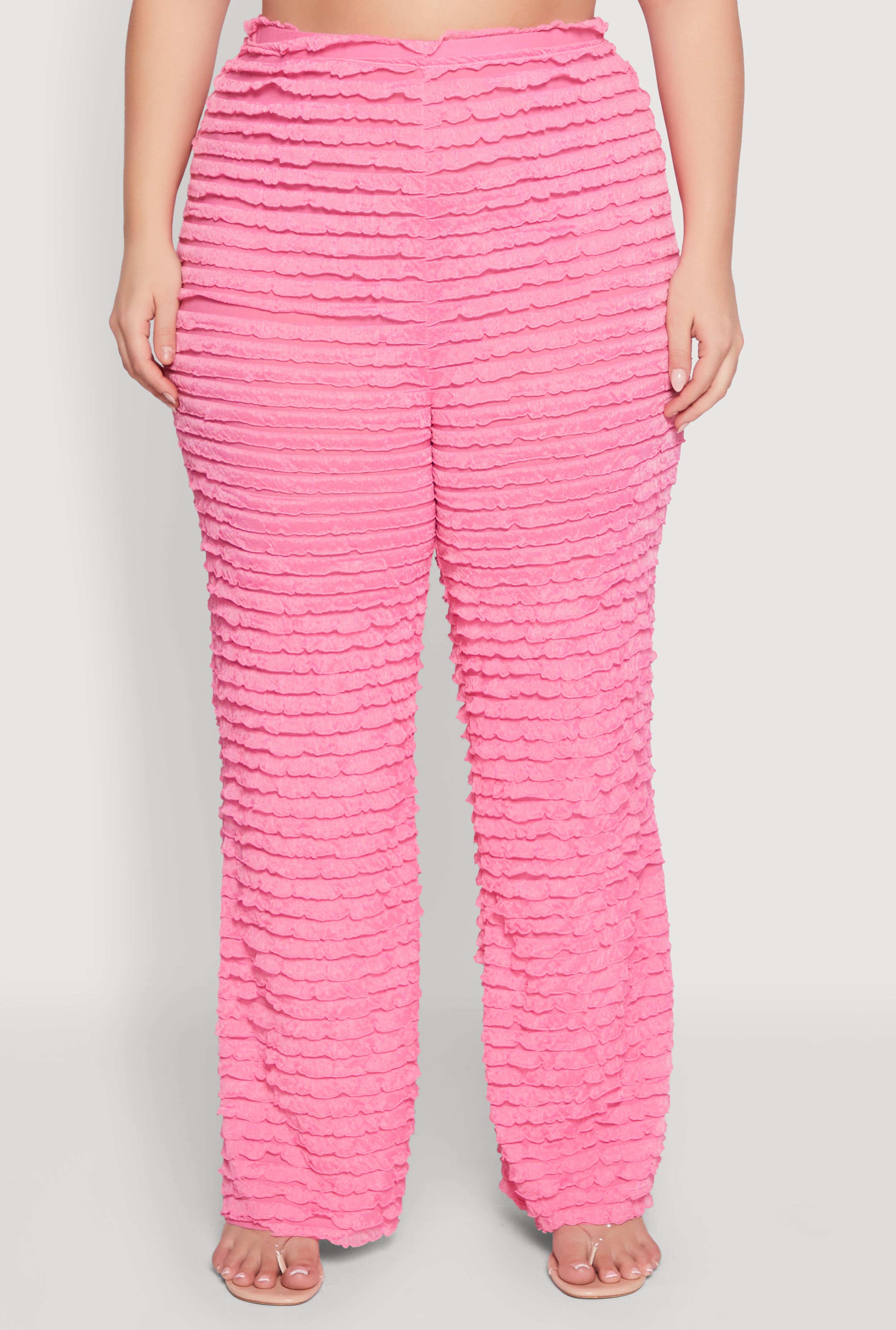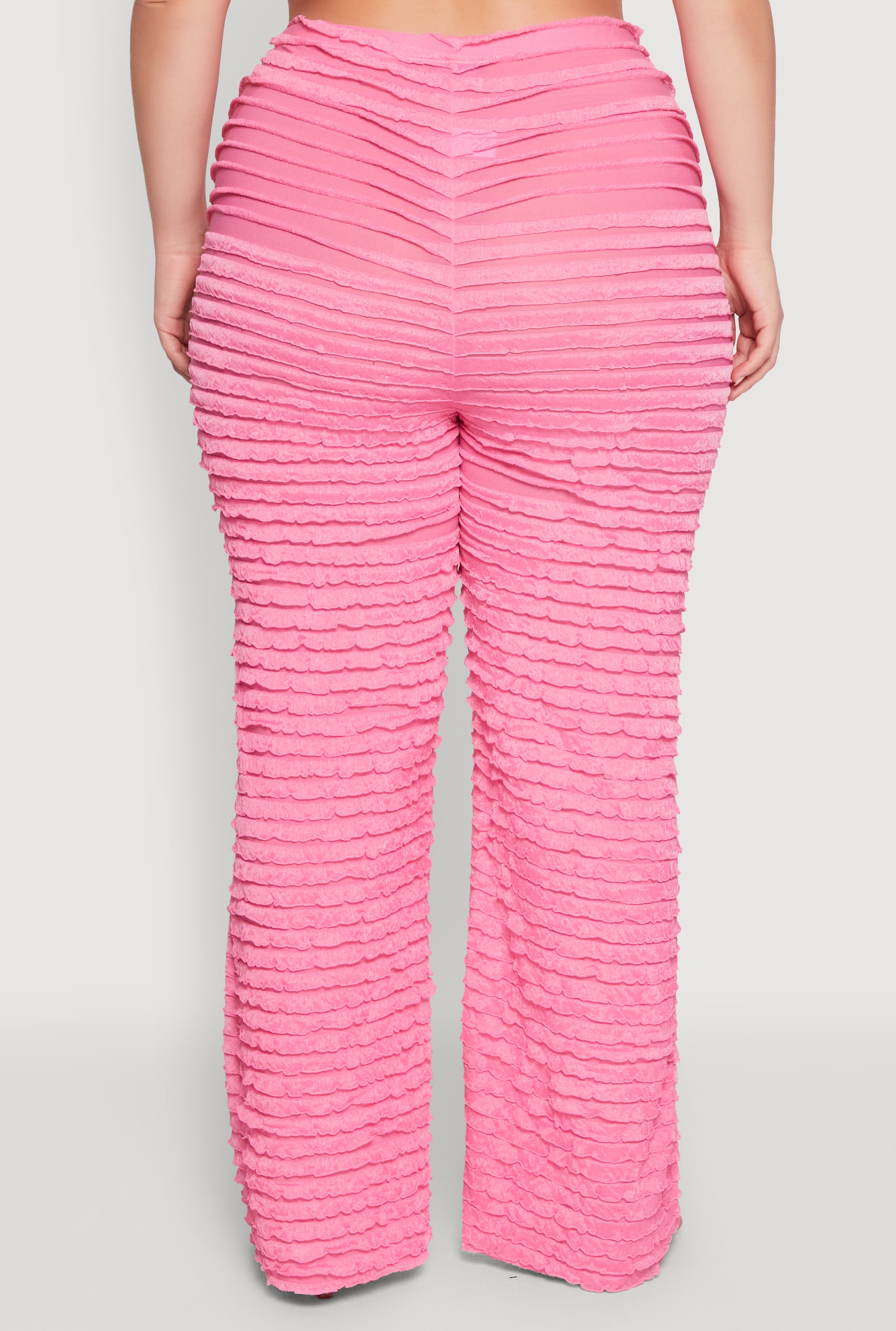 Step up your casual game with our Plus Size Lettuce Edge Mesh Pants. These trendy, high-waisted pants are designed to give you effortless style and comfort all day long. The delicate lettuce edge detail adds a touch of playful flair, making them perfect for dressing up or down. Whether you're heading out with friends or lounging in style, these mesh pants are your new go-to for a chic, laid-back look.