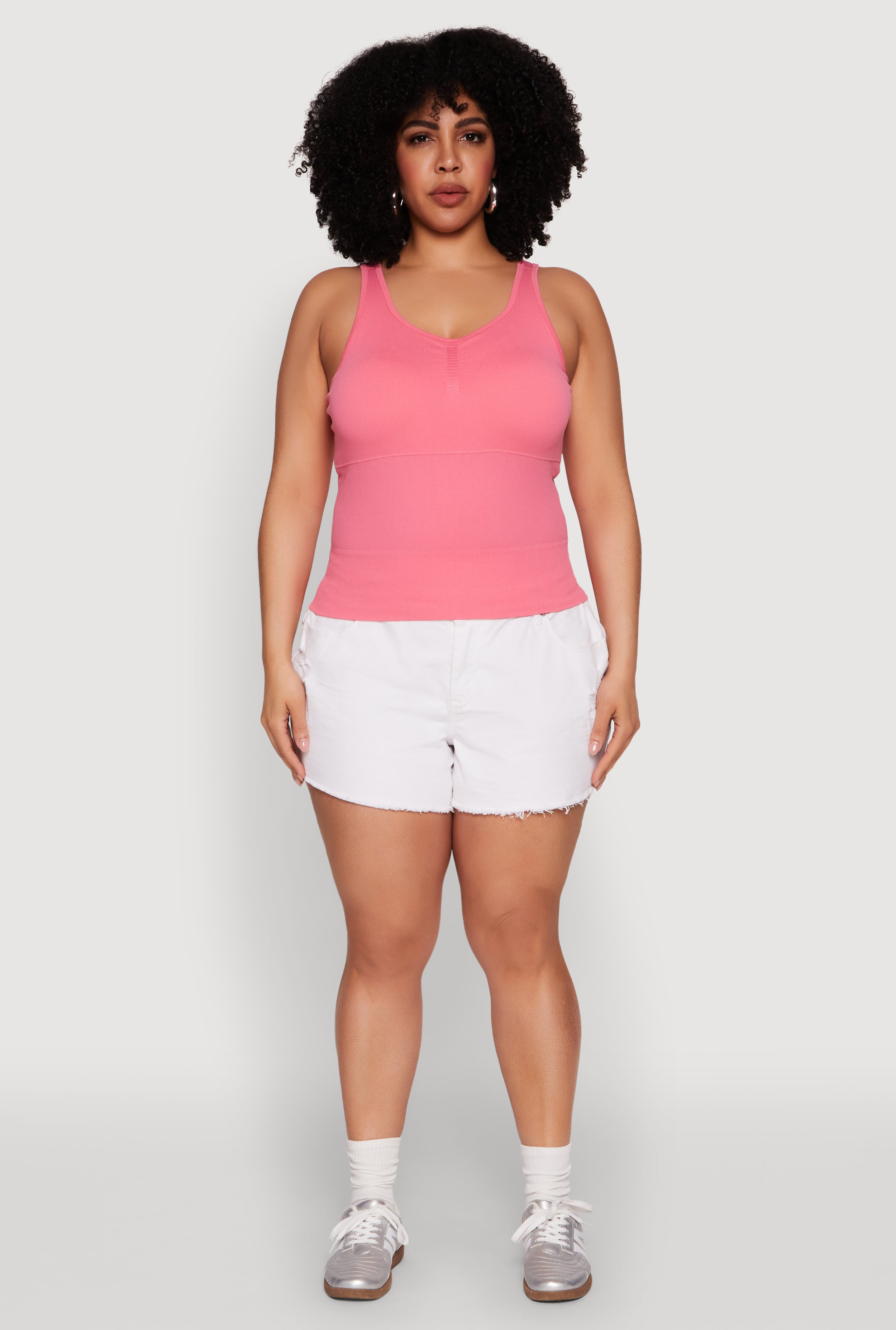 Get ready to elevate your everyday wardrobe with our Plus Size Ribbed Knit Seamless Tank Top. Designed for comfort and style, this sleeveless scoop neck top features a classic fit that flatters every curve. The built-in shelf bra and removable padding make it perfect for staying confident and comfortable all day long. Whether you're dressing up or keeping it casual, this versatile piece is a must-have for your closet. Its seamless, ribbed knit fabric offers a smooth, stretchy feel that moves with you, making it an effortless choice for any occasion.