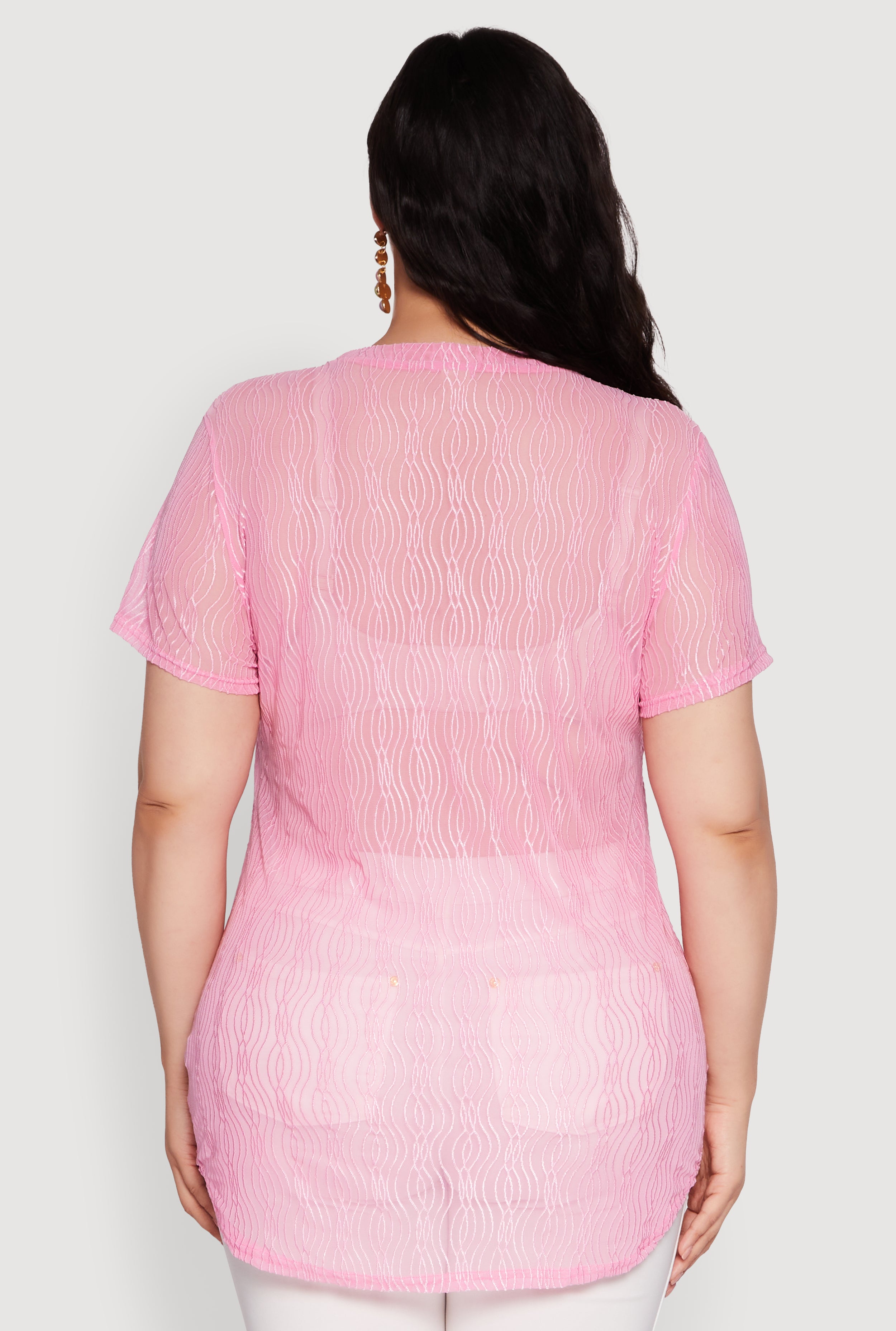 Step up your casual game with this Plus Size Sheer Textured Knit Tunic Top. Designed for effortless style and comfort, this classic fit tunic features a breathable mesh fabric with a unique textured knit that adds a playful twist to your everyday look. The sheer design keeps it flirty and fresh, perfect for layering or wearing solo with your fave bralette. Whether you're heading to a festival or just chilling with friends, this tunic is your go-to for versatile vibes and easy confidence.