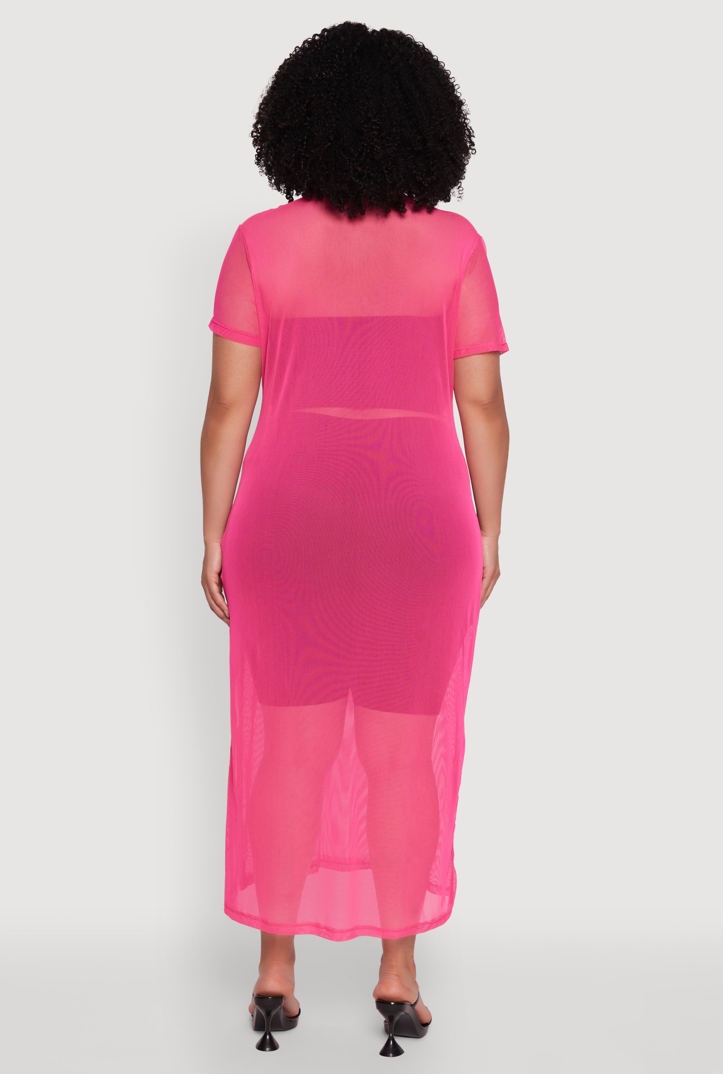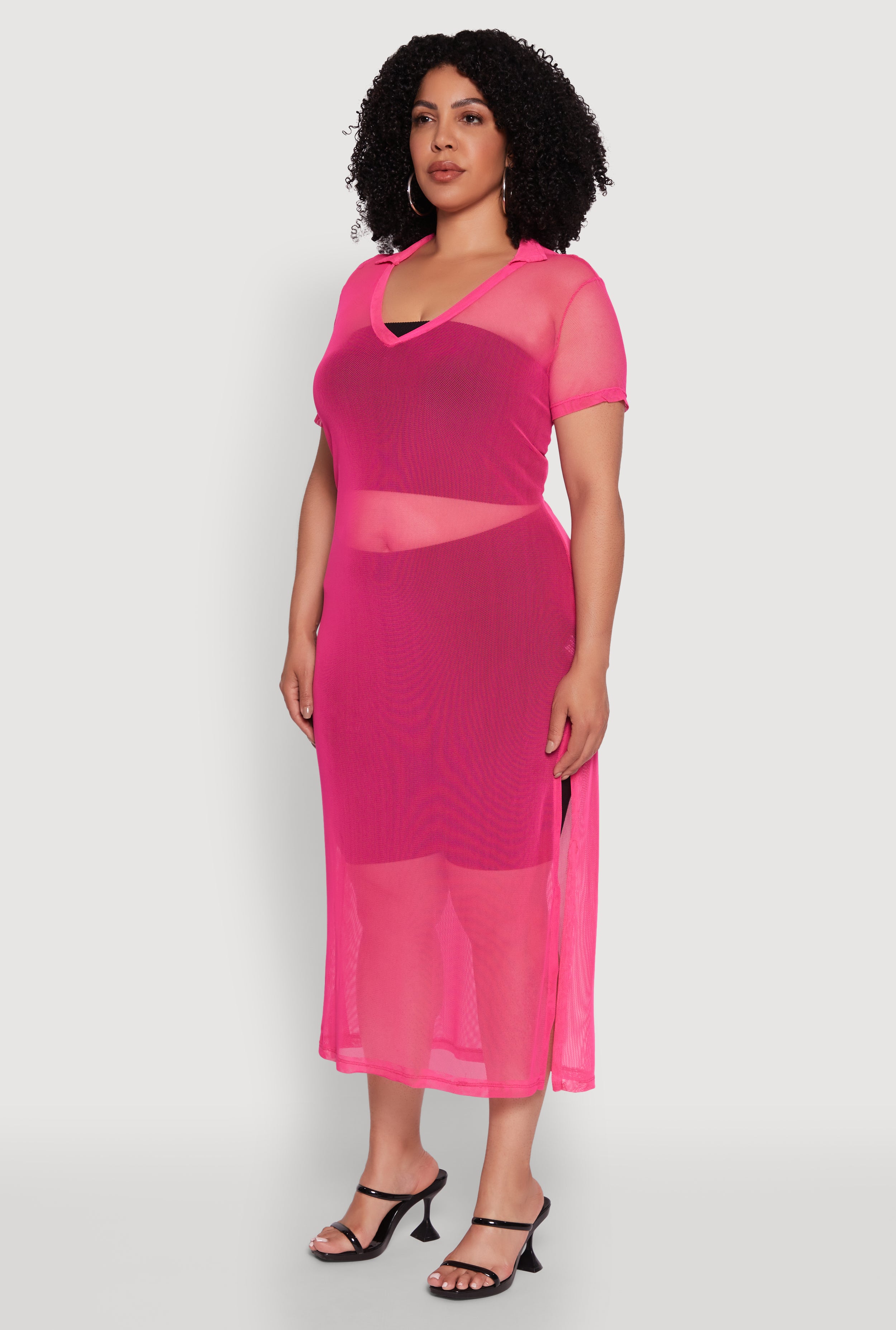 Step up your casual game with this Plus Size Side Slit Collared Mesh Maxi Top. Designed with a classic fit and a breezy mesh fabric, it effortlessly blends comfort and style. The V-neck collar adds a touch of sophistication while the side slit gives you that cool, laid-back vibe perfect for streetwear or active days. Sheer and chic, this maxi top is your new go-to for easy layering and standout looks.