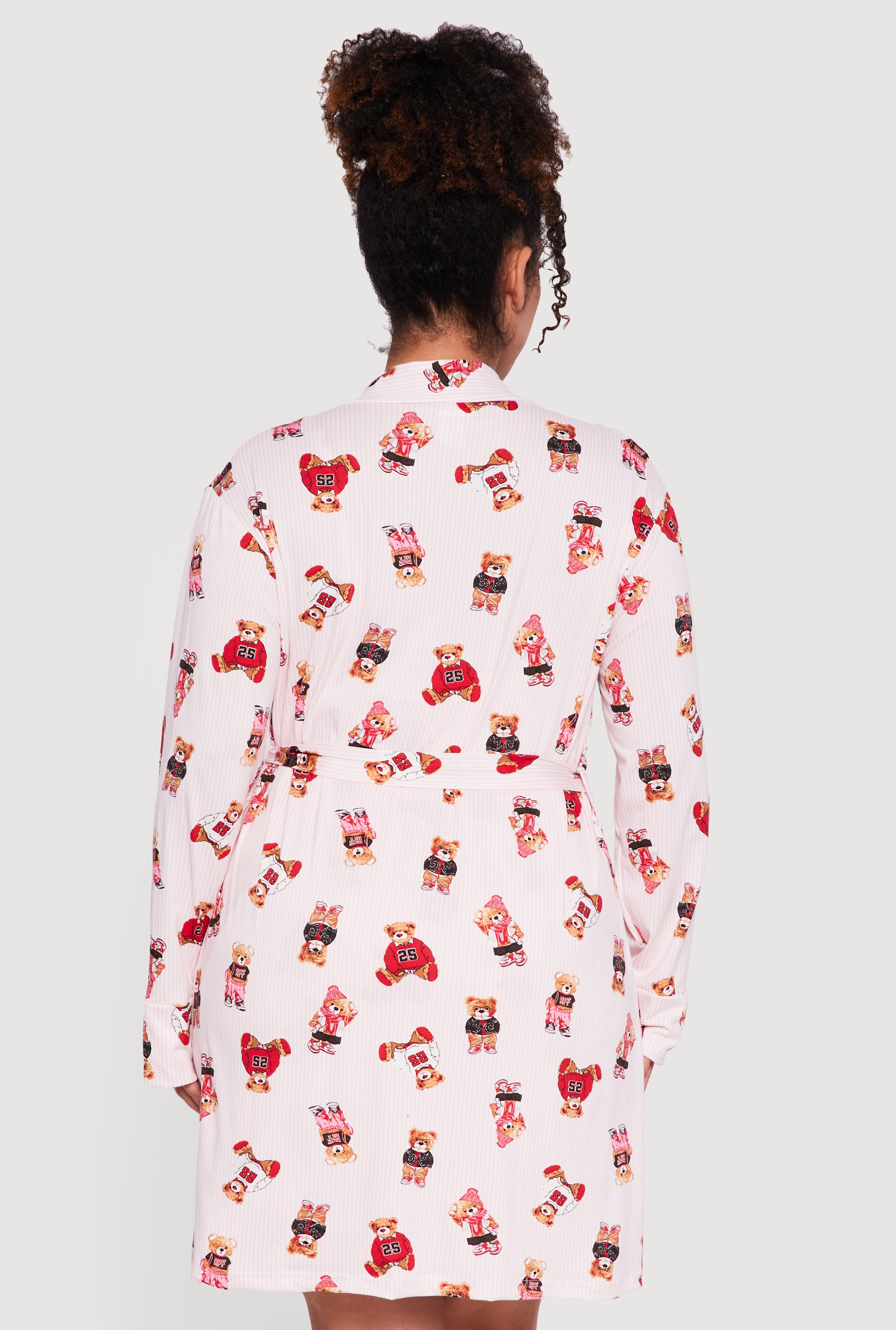 This plus size sleepwear set includes a sleeveless cami nightgown with a V-neckline and a coordinating robe with a tie waist belt. Crafted from soft knit fabric, it offers a relaxed fit ideal for lounging or bedtime. The striped and printed pattern adds a playful touch to your nighttime routine.