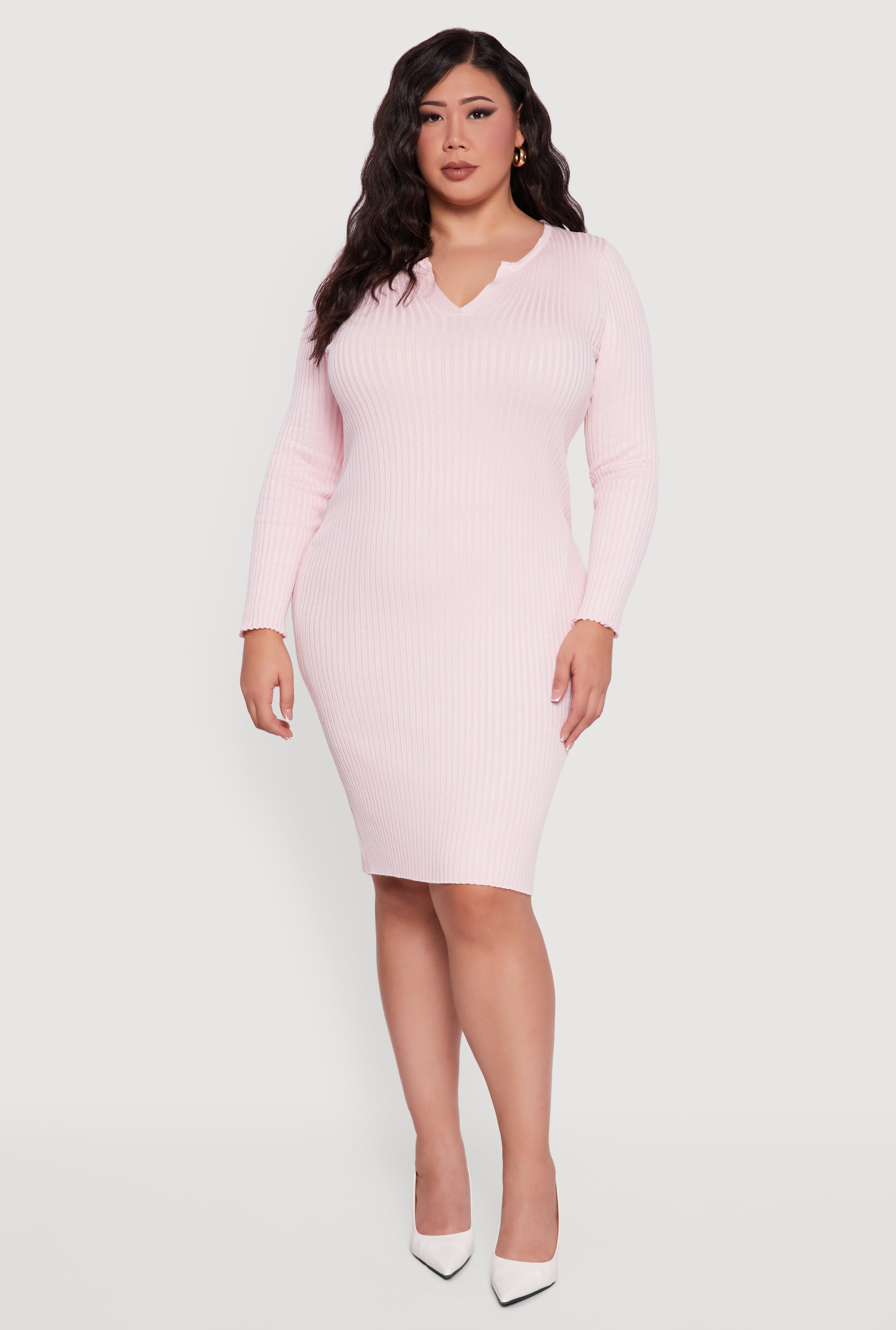 Step out in style and comfort with this Plus Size Sweater Dress with Removable Collar and Cuffs designed to hug your curves and keep you cozy. Featuring a chic notch neck and long sleeves, this mid-length bodycon dress is crafted from soft ribbed knit fabric for a flattering fit that moves with you. The removable faux fur collar and cuffs add a touch of luxe versatility—switch up your look from casual to party-ready in seconds. Perfect for nights out or special occasions, this solid-colored dress brings effortless elegance to your wardrobe without breaking the bank.