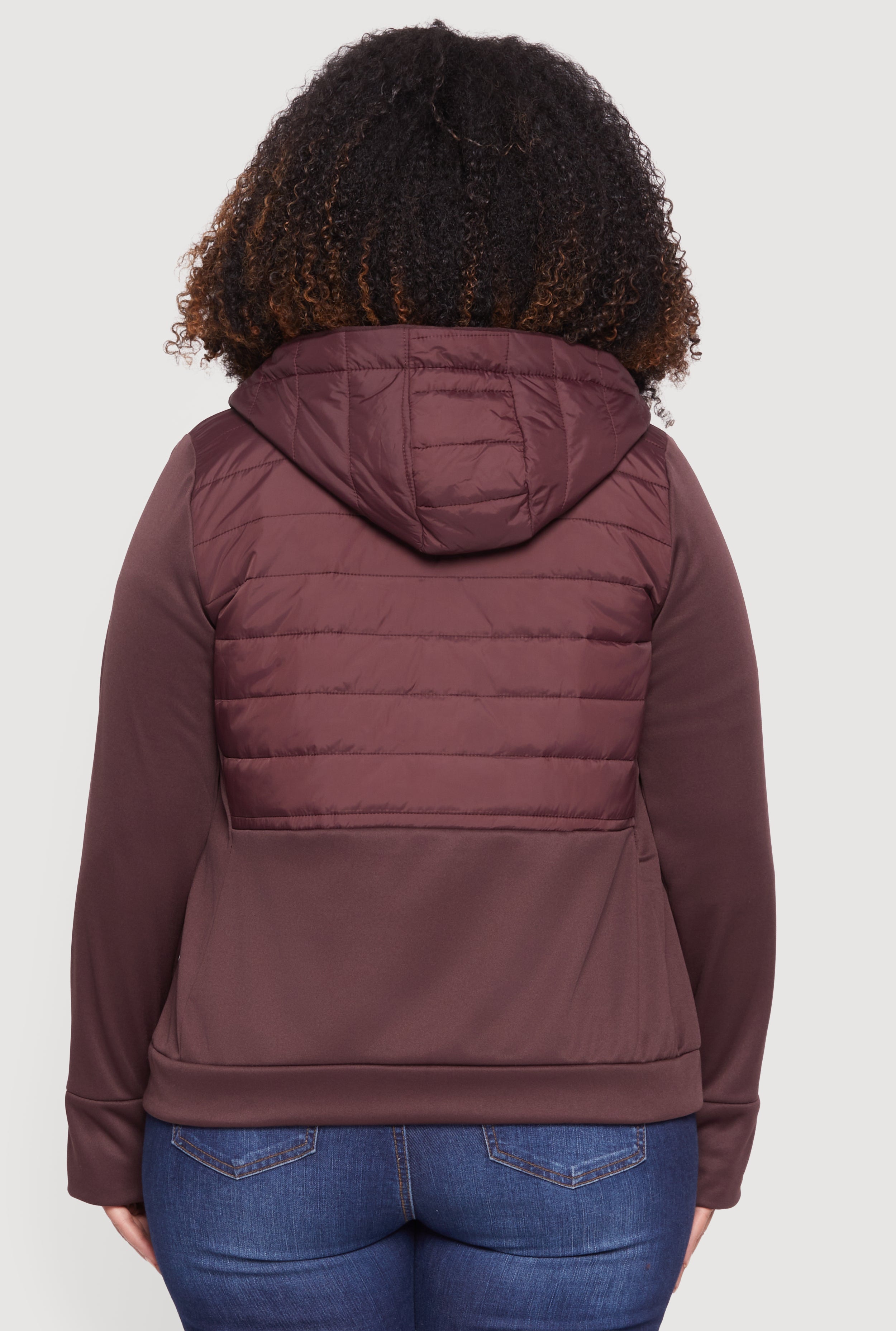 Plus Size Quilted Detail Zip Front Hooded Jacket with Thumb Holes