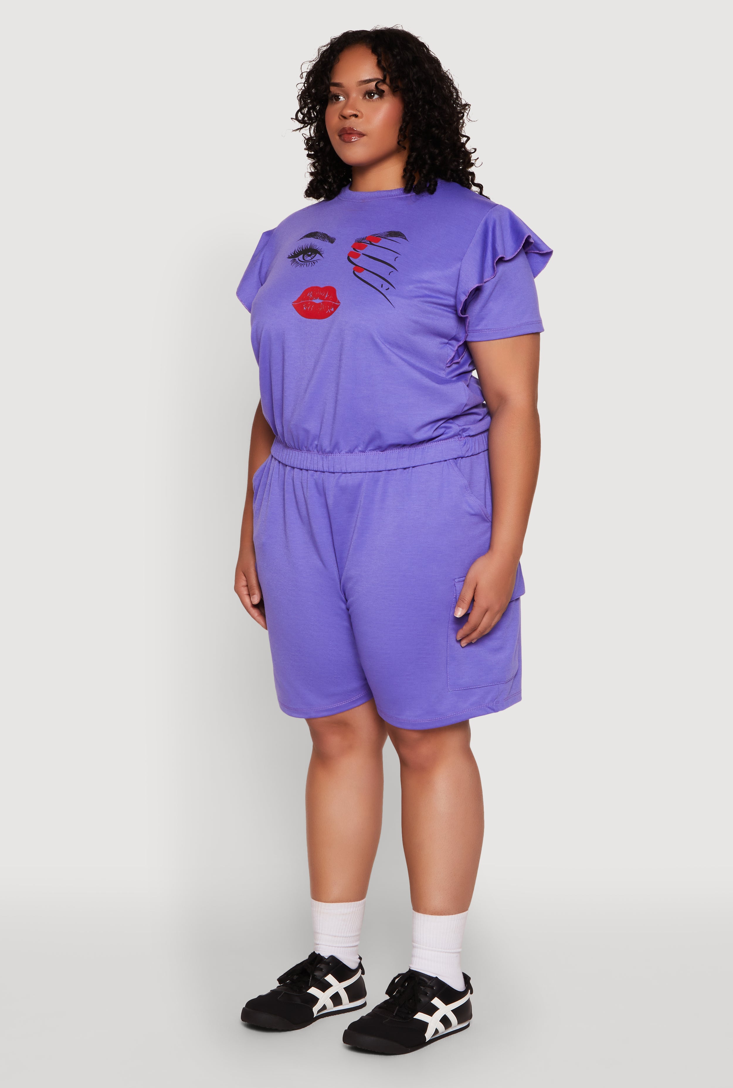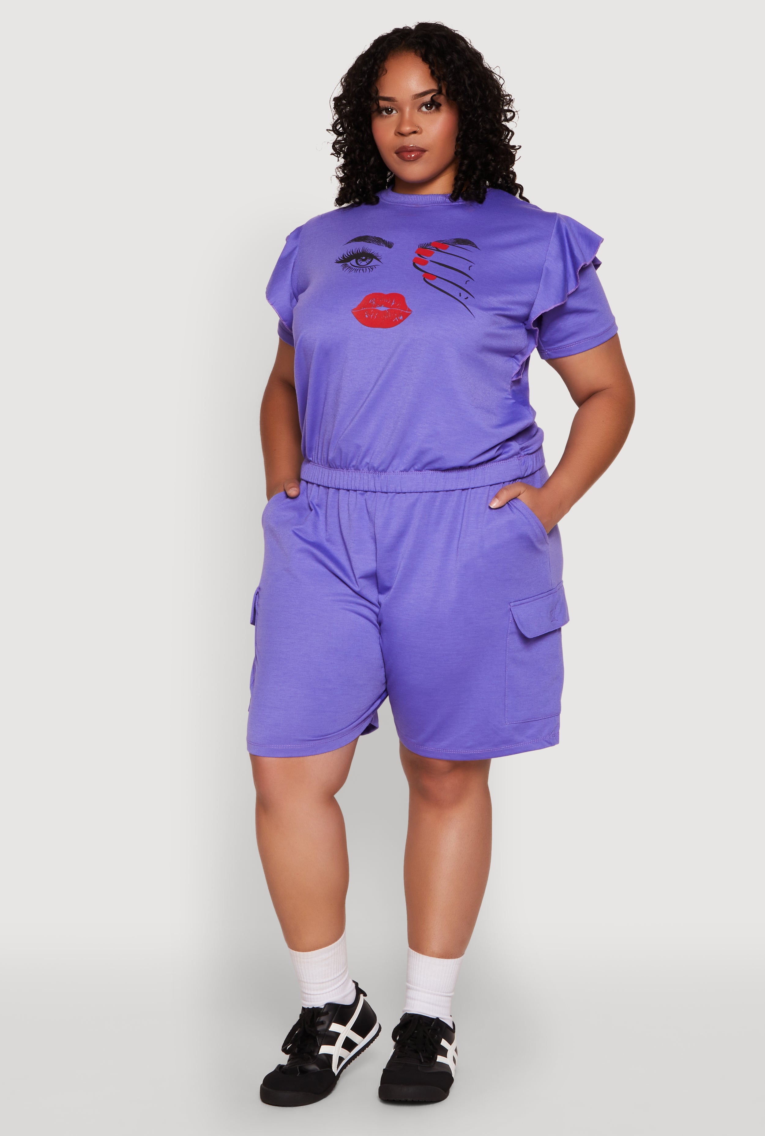 Get ready to turn heads with the Plus Size Tiered Ruffle Sleeve Face Graphic Top. This playful and comfy sweatshirt combines a bold face graphic with flirty tiered short sleeves and a classic crew neck. Made from soft French Terry fabric, it offers a timeless silhouette that’s perfect for casual days or fun sets. Plus, the elastic waist ensures a comfy fit that moves with you. Elevate your everyday wardrobe with this must-have piece that’s as stylish as it is effortless.