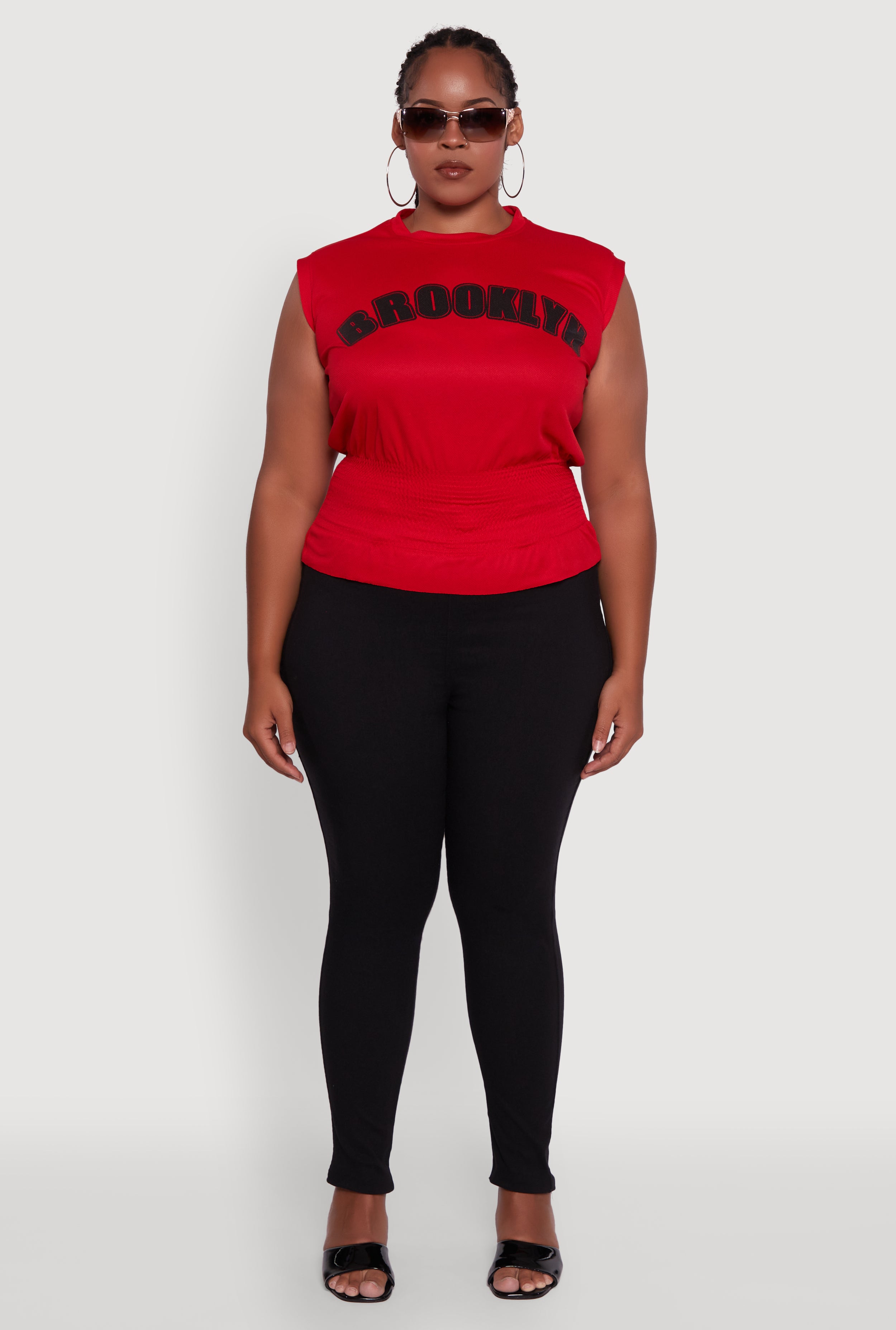 Step into effortless style with the Plus Size Brooklyn Queen Smocked Waist Sleeveless Top. This classic fit top features a flattering smocked waist that hugs your curves in all the right places while keeping things comfy with breathable jersey mesh fabric. The crew neck and sleeveless design make it perfect for casual days when you want to look cool without trying too hard. Whether you're out with friends or just chilling, this top brings the perfect blend of laid-back vibes and queen-level confidence.