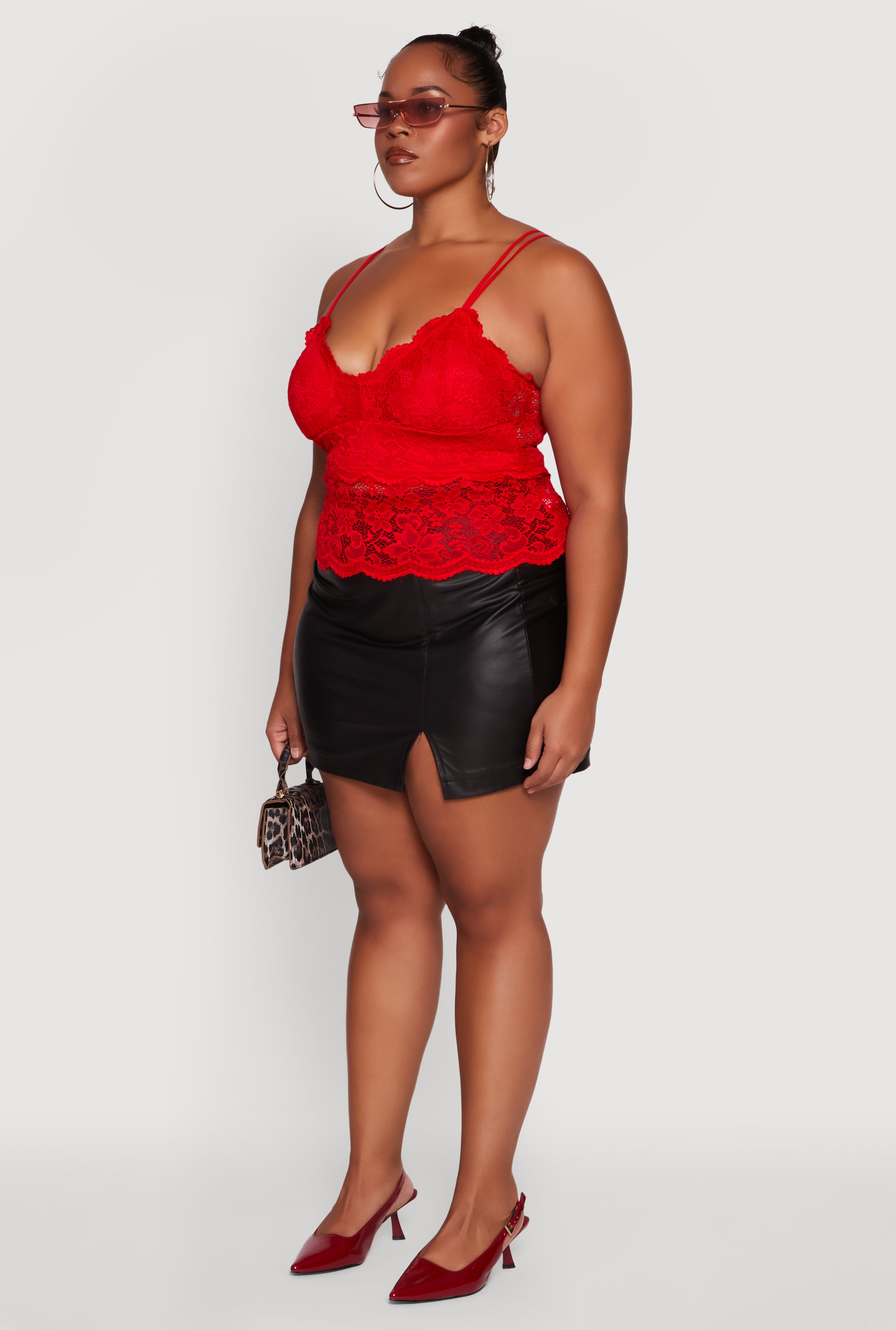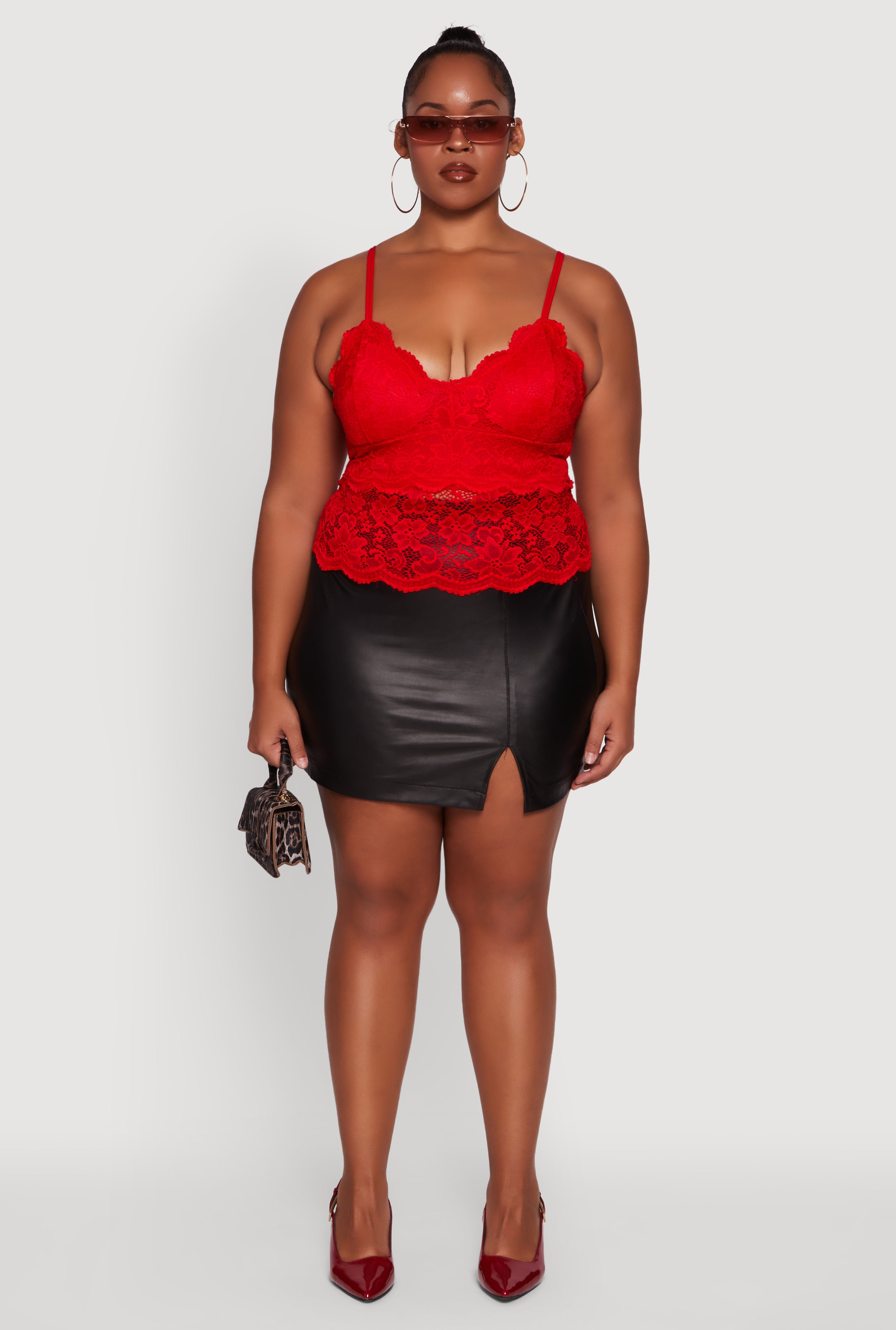 Step into the spotlight with this Plus Size Floral Lace Scalloped Hem Cami designed to make every night out feel effortlessly chic. Featuring delicate floral lace and a flattering V-neck, this classic fit cami hugs your curves in all the right places while the scalloped hem adds a playful touch. The open back and spaghetti straps keep it flirty and fresh, perfect for dancing the night away or turning heads at your next party. With removable padding for customizable comfort, this sheer lace cami blends style and ease for your go-to glam look.
