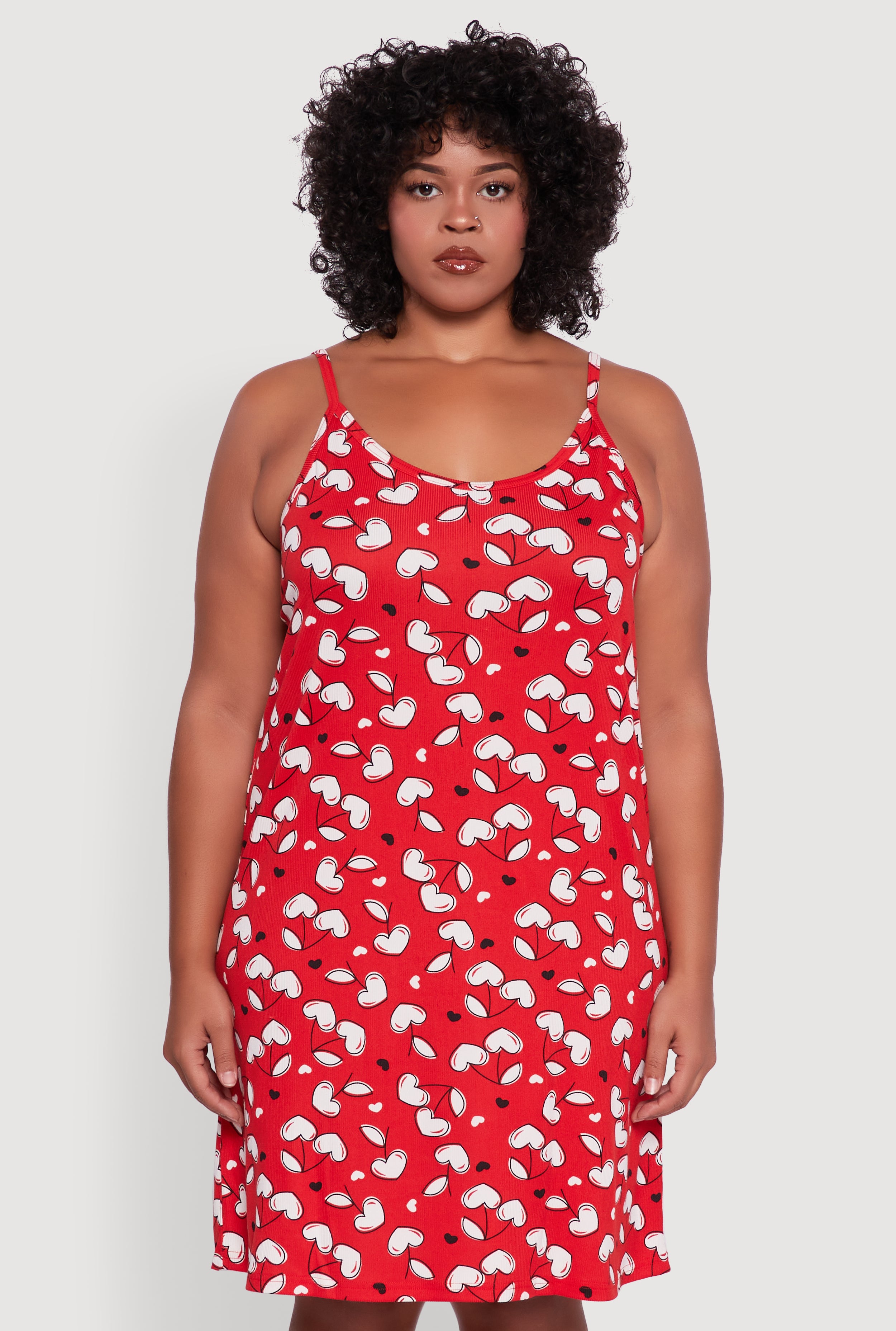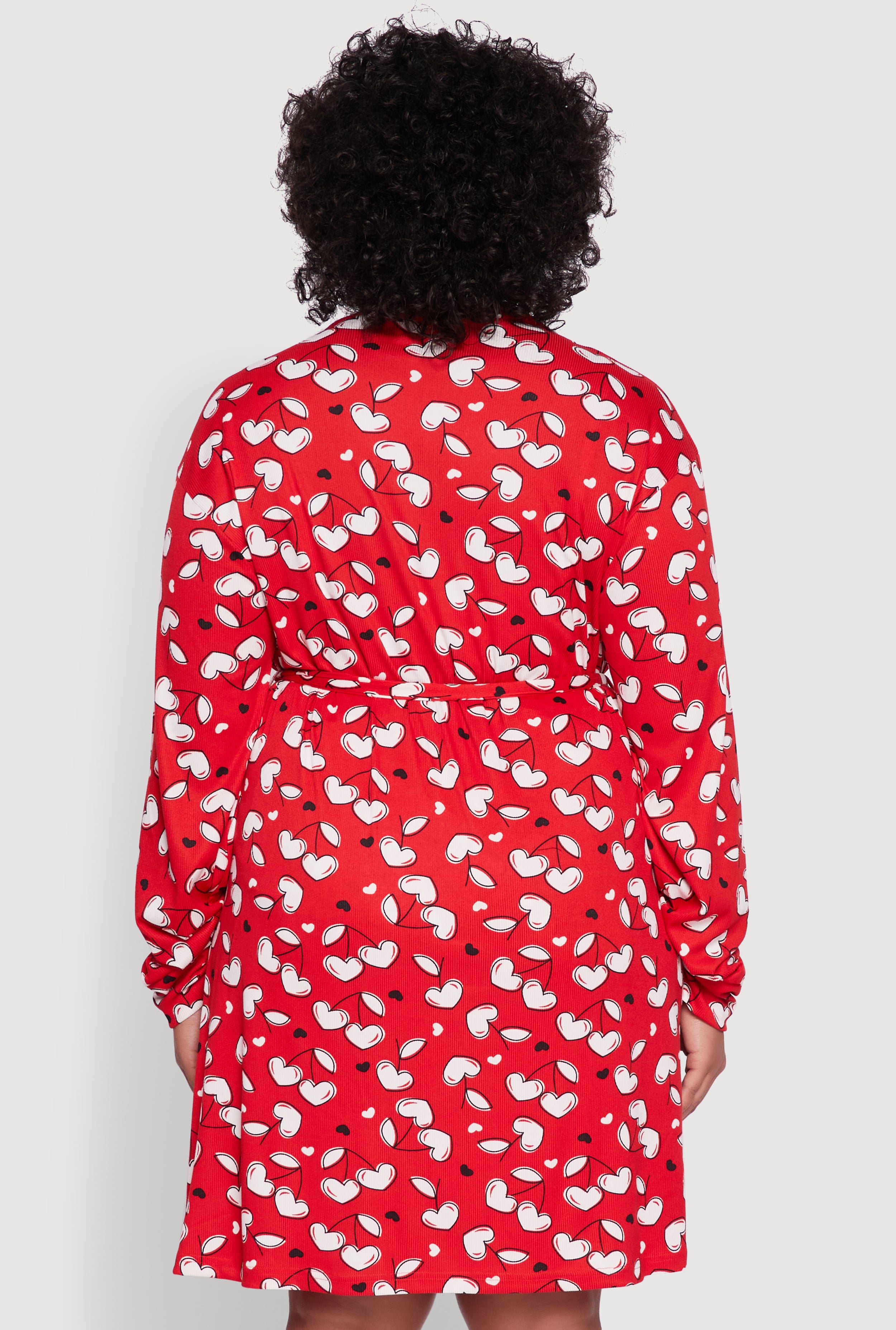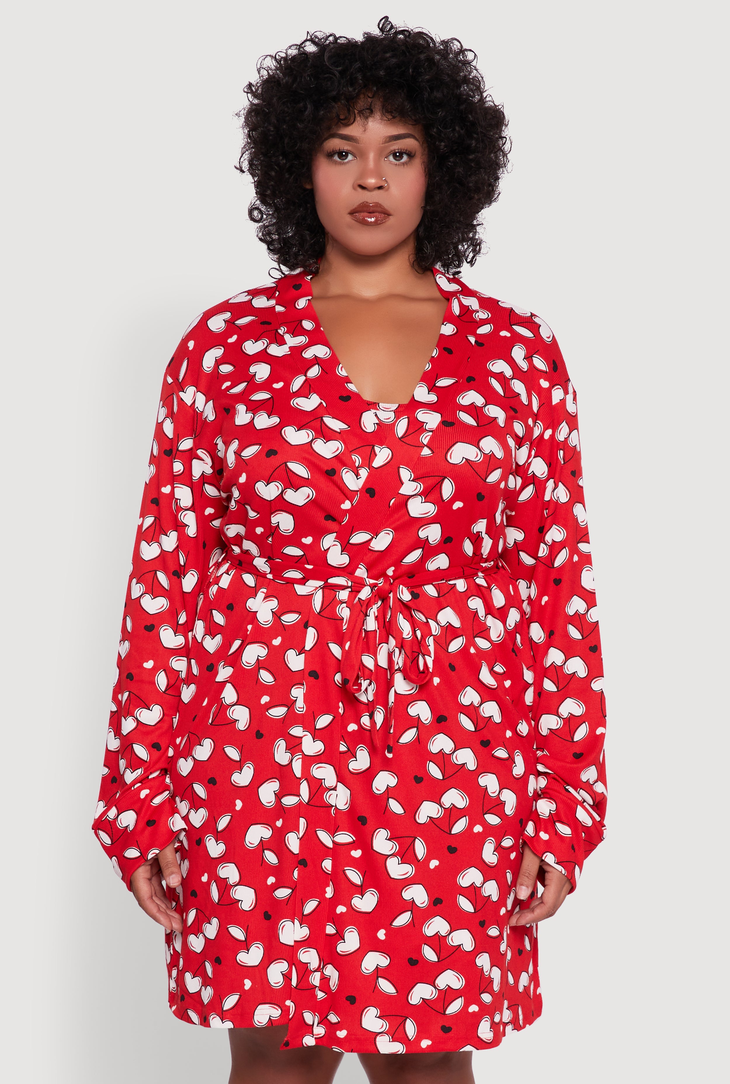 Slip into cozy charm with this Plus Size Heart Cherry Print Robe and Cami Nightgown set. Perfect for those chill nights or lazy mornings, this duo blends playful heart and cherry prints with a classic fit that flatters your curves. The sleeveless cami features adjustable spaghetti straps and a scoop neck for a flirty yet comfortable vibe. The matching robe, with its tie waist belt, adds a touch of effortless elegance while keeping you wrapped in soft ribbed knit fabric. Feel fabulous lounging or catching some zzzs in this adorable sleepwear set that’s as fun as it is flattering.