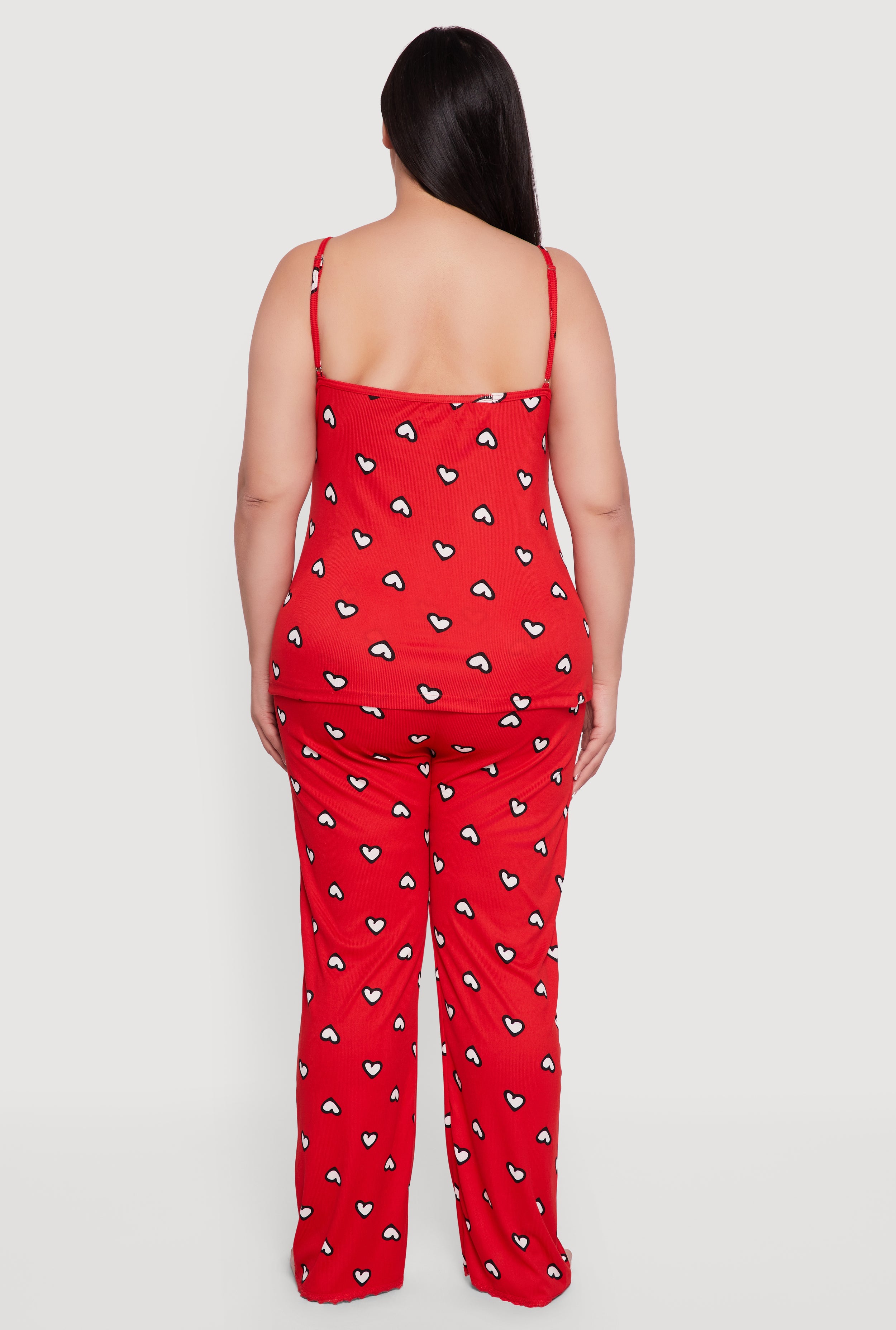 Plus Size Heart Print Pajama Cami and Lounge Pants