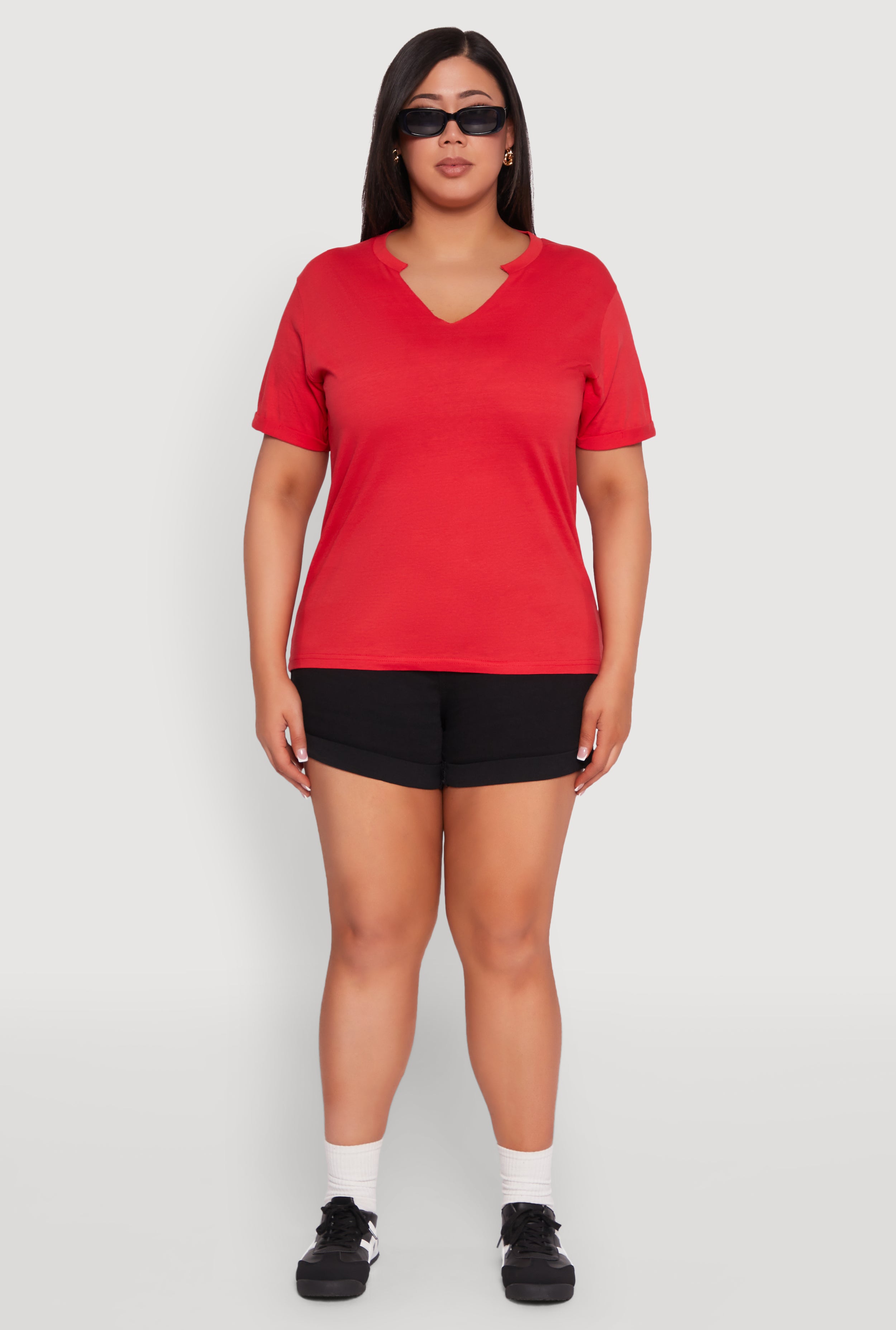 Upgrade your wardrobe with our Plus Size Notch Neck T Shirt, the perfect blend of comfort and style. Designed for everyday wear, this classic fit top features a chic notch neckline and short sleeves that keep you looking effortlessly put-together. Whether you're running errands or relaxing at home, this versatile piece is your new go-to for a laid-back yet fashionable look. Affordable and on-trend, it's a must-have for every deal hunter's closet.