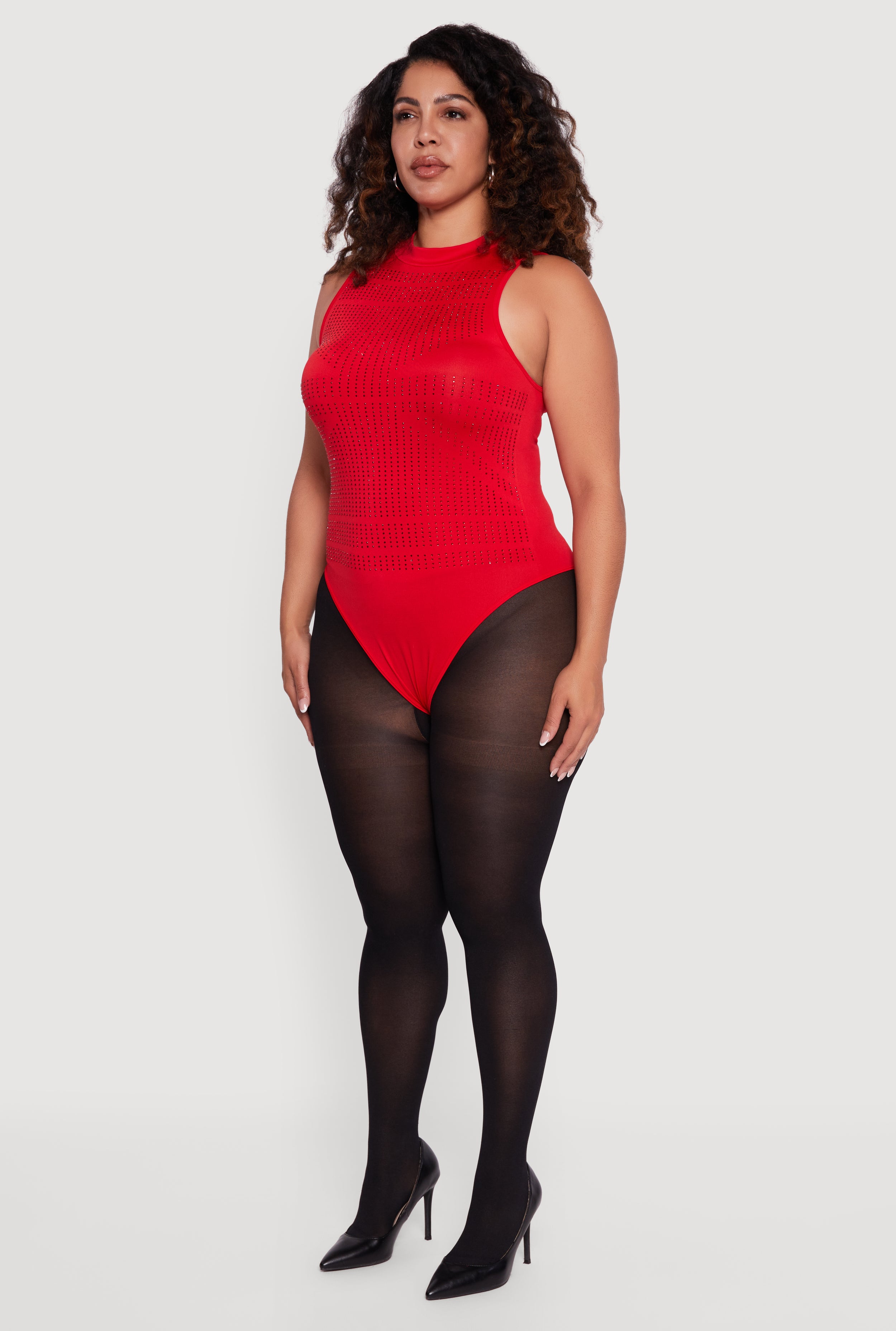 Turn heads effortlessly in this Plus Size Rhinestone Detail Sleeveless Mock Neck Bodysuit. Designed to hug your curves in all the right places, this sleek bodysuit combines a chic mock neck with sparkling rhinestone accents for a touch of glam. Perfect for casual days or a night out, it’s a versatile piece that elevates your style without sacrificing comfort. Snap closure makes it easy to wear, so you can focus on shining bright wherever you go.