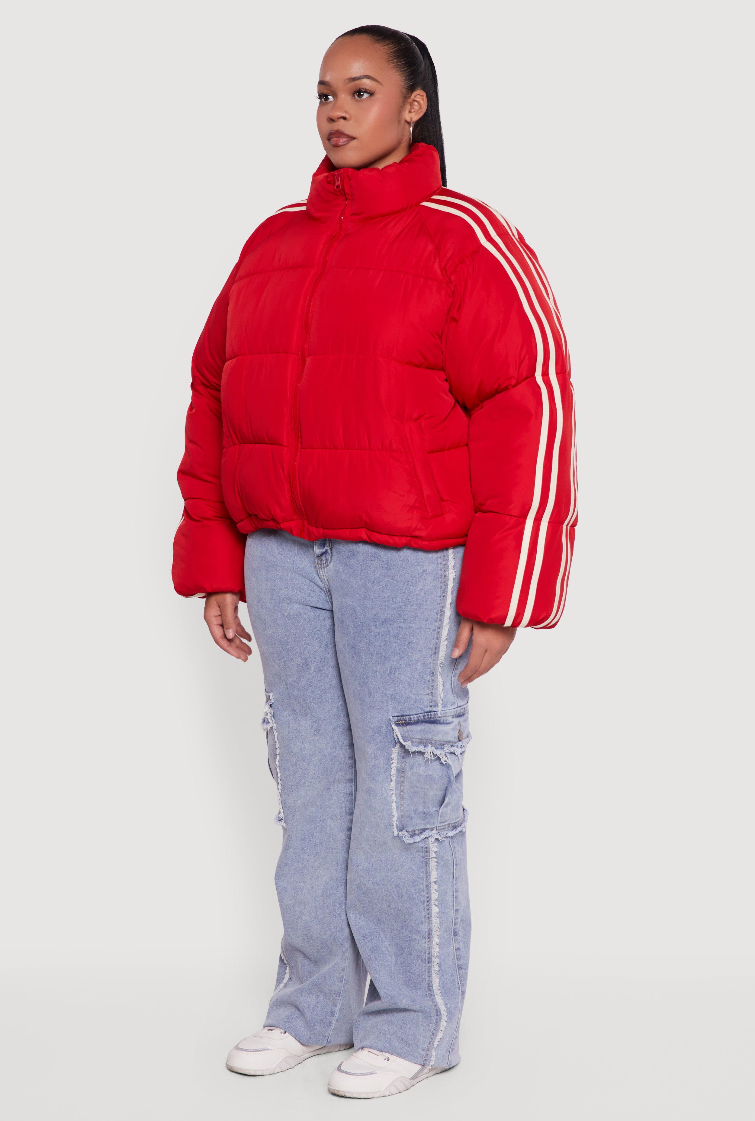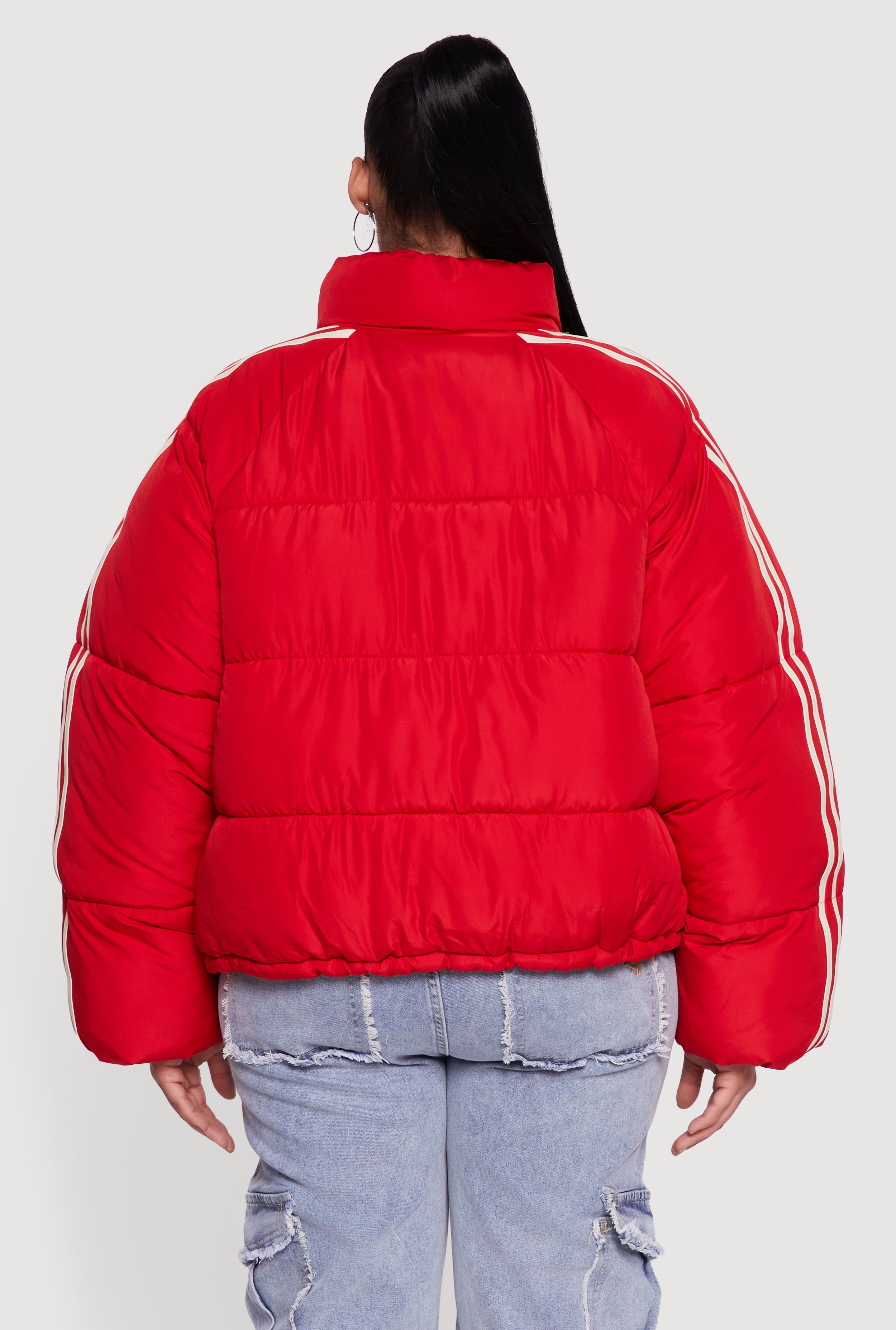 Plus Size Stripe Detail Zip Front Puffer Jacket