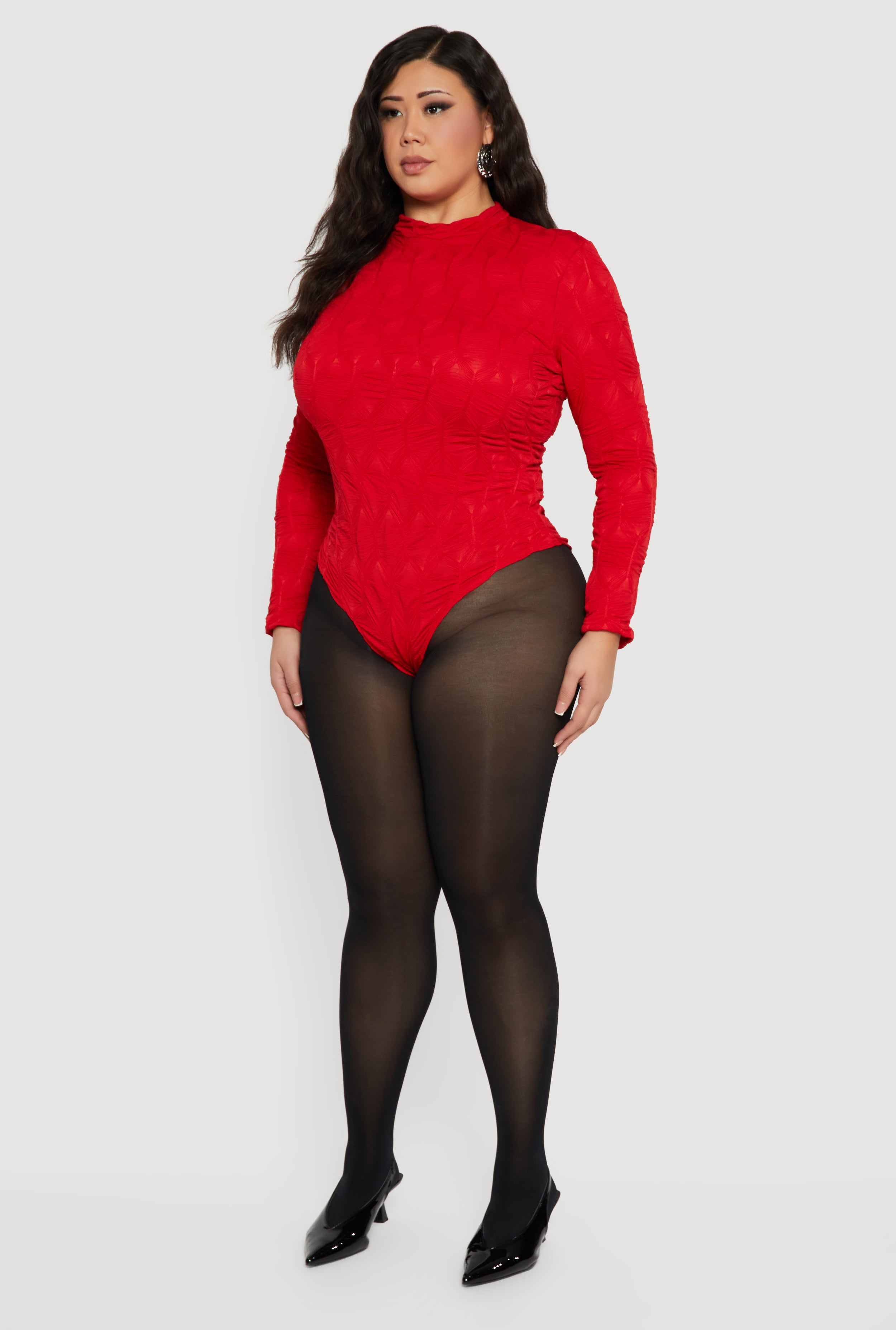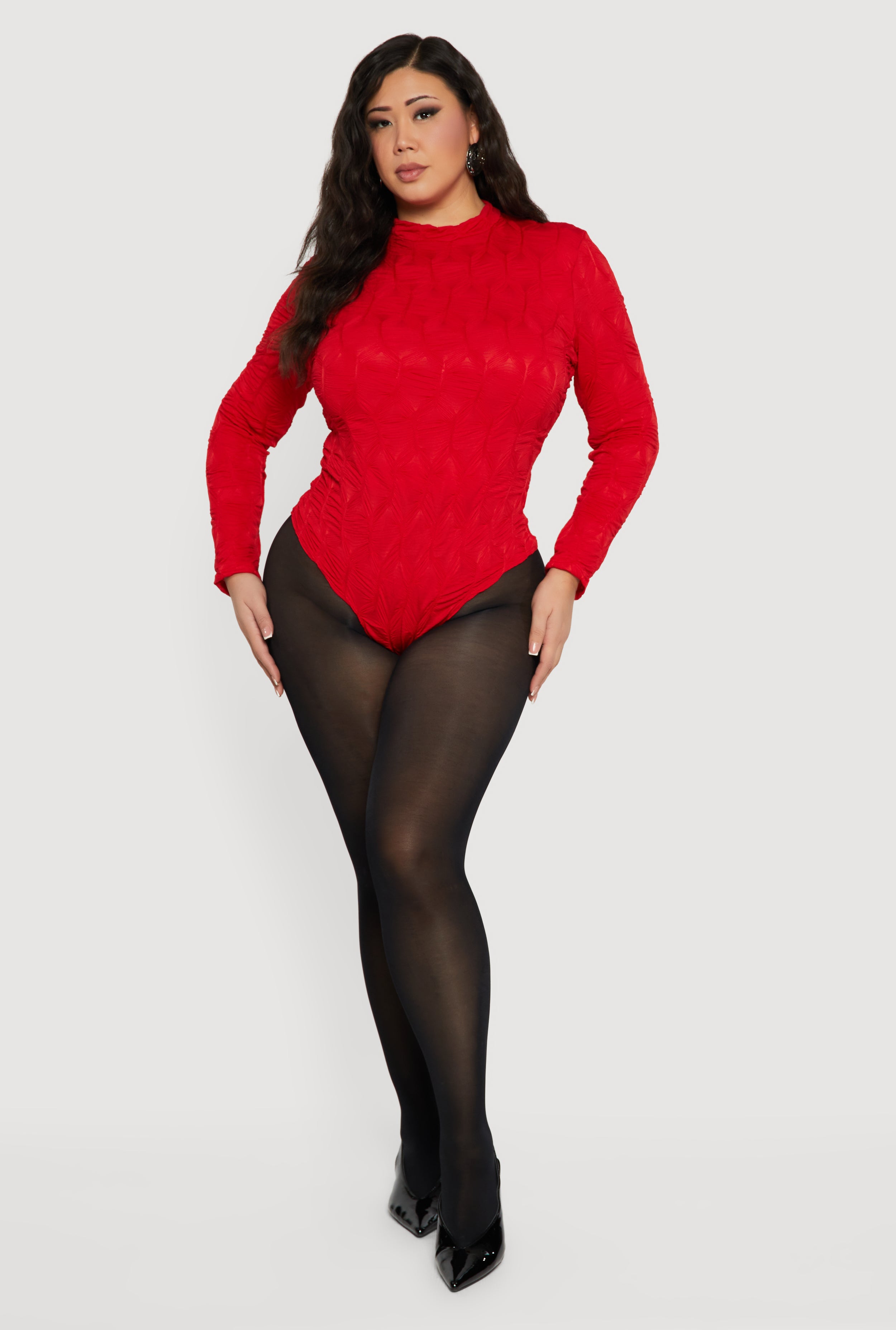 Step into the spotlight with this Plus Size Textured Knit Long Sleeve Mock Neck Bodysuit designed to hug your curves and elevate your night out or party look. Featuring a chic mock neck and long sleeves, it blends cozy comfort with sleek style. The solid textured knit adds a subtle touch of sophistication while the snap closure ensures easy wear. Perfect for those who want to feel confident and stylish without breaking the bank.