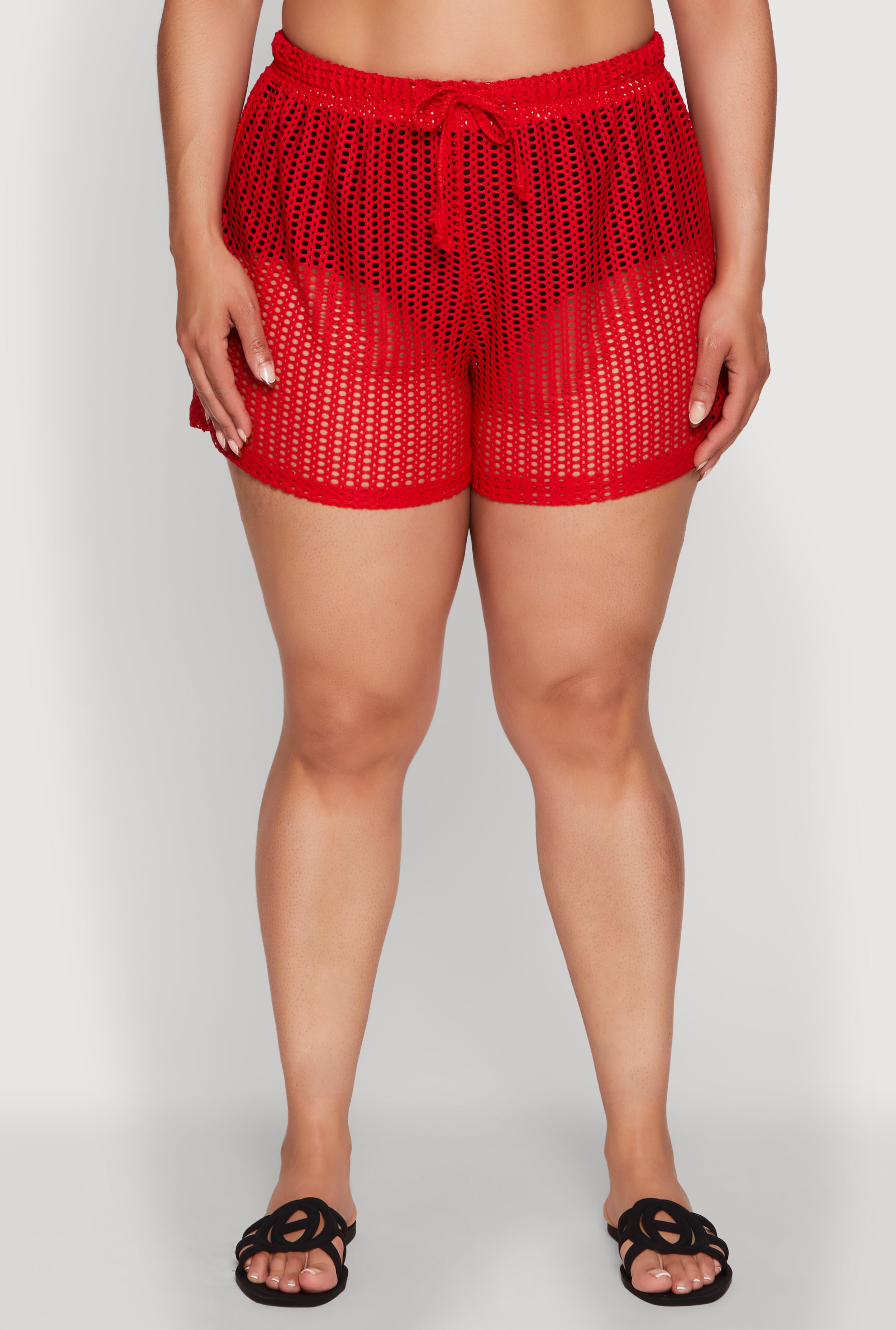 Plus Size Trendy High Waisted Laser Cut Sheer Shorts