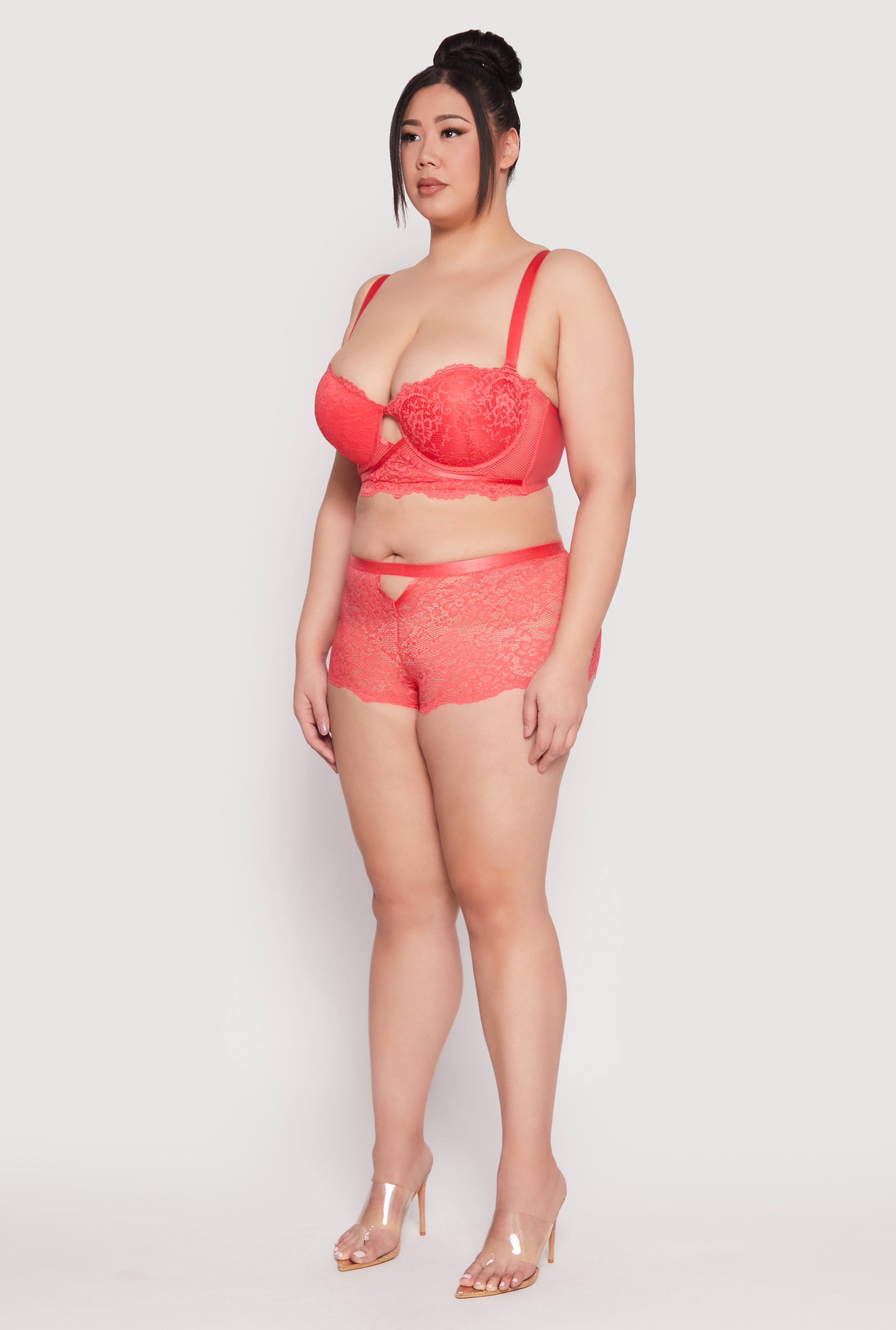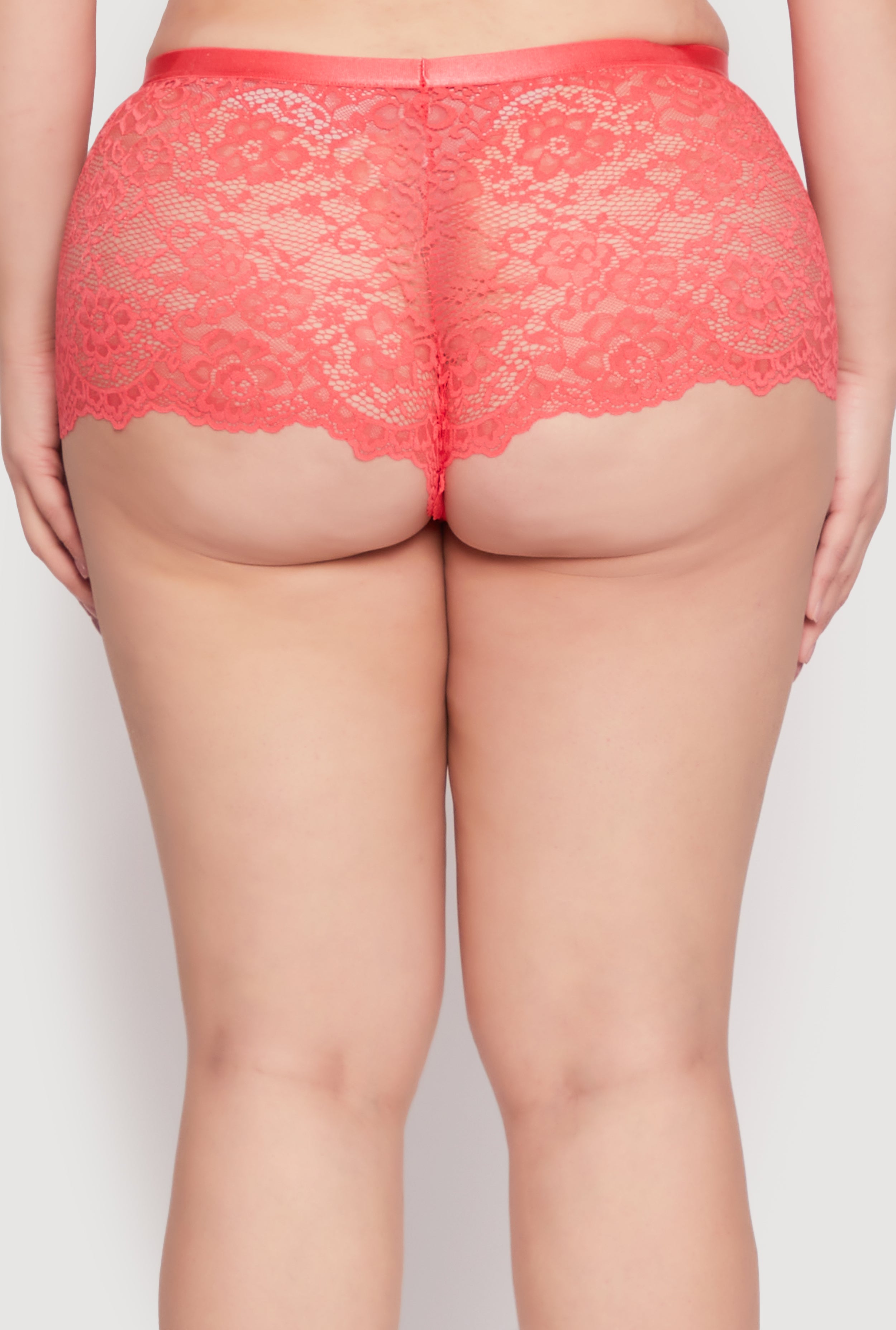 Plus Size Scallop Trim Caged V Lace Boyshort Panty