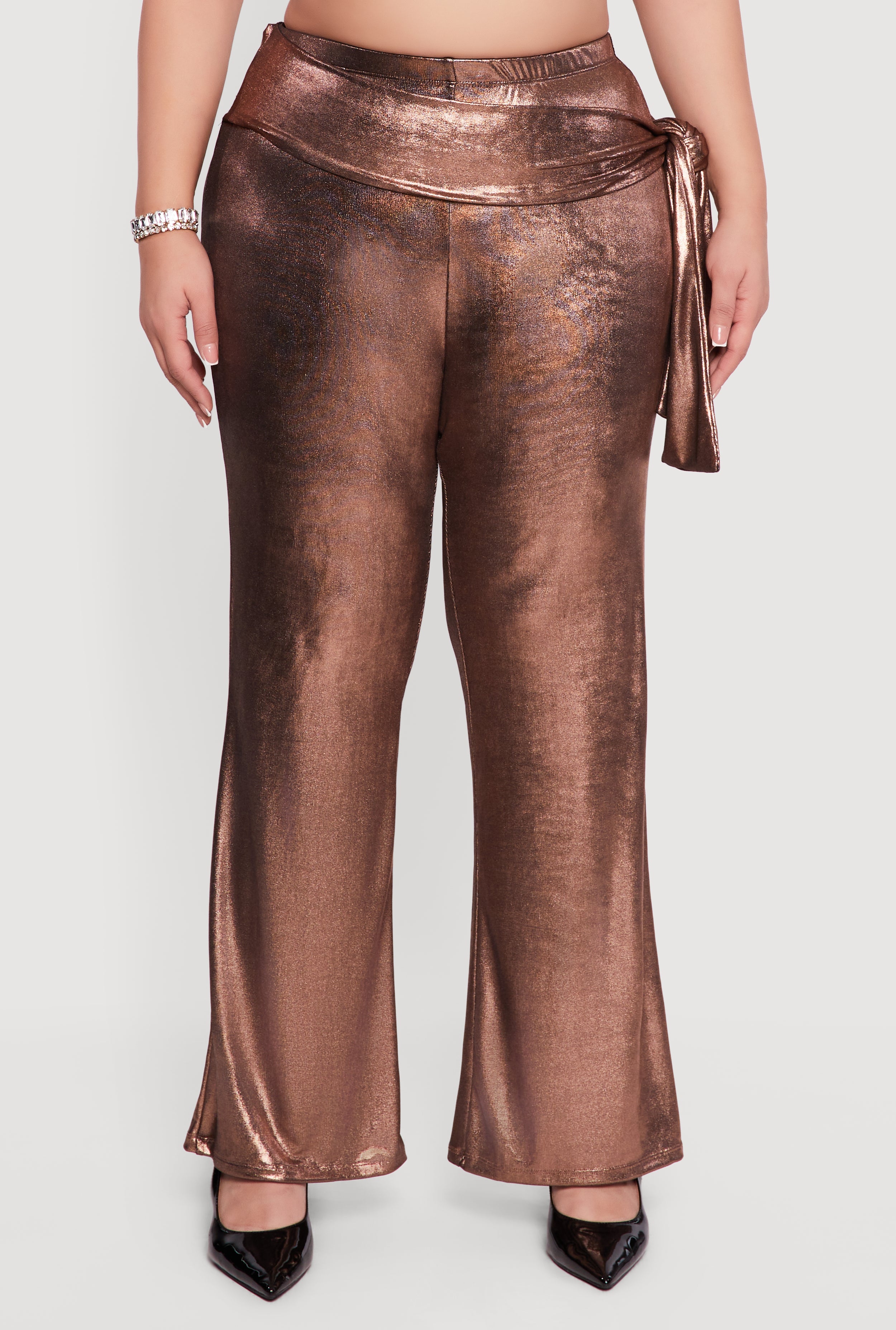 Step out in style and comfort with these Plus Size Side Tie High Waisted Pull On Pants. Designed to flatter your curves with a modern fit and a high waist that accentuates your silhouette, these pants combine casual ease with chic details. The pull-on design makes getting dressed a breeze, while the playful side tie adds a trendy touch perfect for your night out or party looks. Finished with a straight leg cut and full length hem, these pants are versatile enough to dress up or down and comfortable enough to wear all day or night.